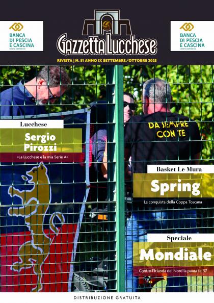 E' in distribuzione il cinquantunesimo numero del periodico di Gazzetta Lucchese. Nella rivista appena stampata, spazio a una lunga intervista esclusiva con il tecnico rossonero Sergio Pirozzi che parla di sé. Spazio anche a un lungo servizio su Le Mura Spring, la squadra di basket femminile che si sta facendo onore e a un servizio su tutti i rischi che la Nazionale italiana corre negli spareggi per il Mondiale