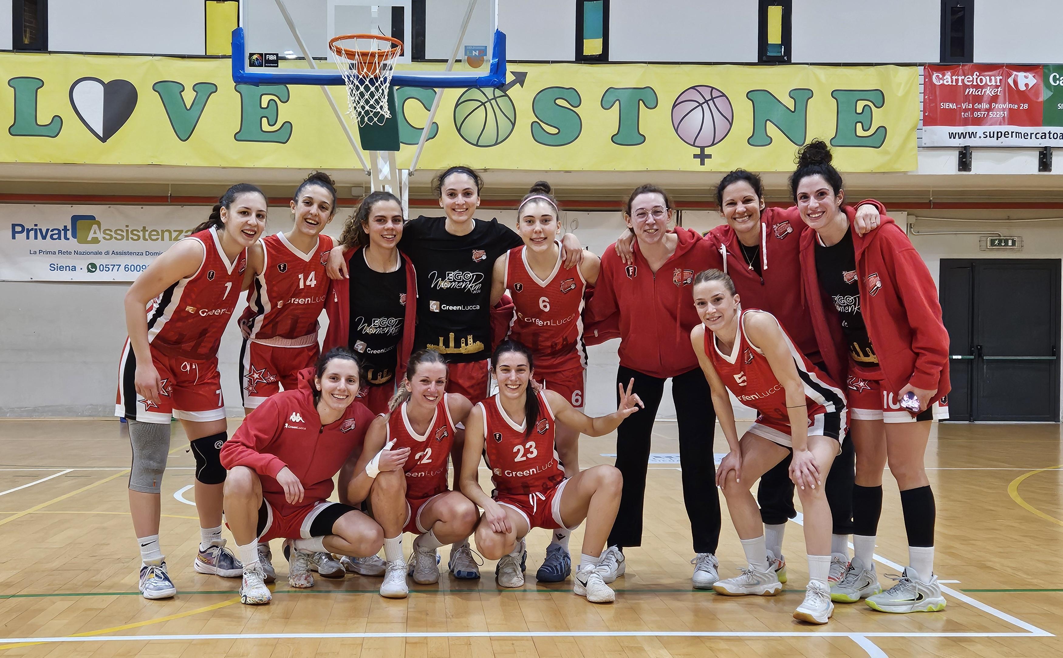 Vittoria sul difficile campo del Costone Siena per le ragazze del Greenlucca che certifica matematicamente il secondo posto ed il fattore campo a favore in tutti i turni di playoff. Successo per niente scontato, strappato con un sontuoso terzo quarto da 8-25 che ha ribaltato le sorti della gara.