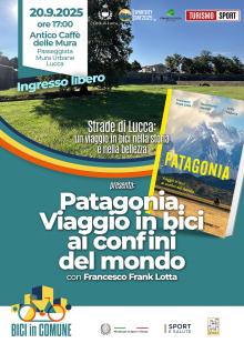 Inoltre alle 17 al Caffé delle Mura si terrà l'incontro dal titolo "Patagonia. Viaggio in bici ai confini del mondo", presentazione del libro a cura di Francesco Frank Lotta, conduttore radiofonico e deejay di Radio Deejay, che ripercorrerà il suo viaggio in bici di quasi mille chilometri: un'esperienza di incontri e di scoperte con la bicicletta come compagna di strada dimostrando che un altro modo di esplorare il territorio e il mondo è possibile. L'evento rientra nel progetto "Bici in Comune" di Sport e Salute spa di cui il Comune di Lucca è beneficiario.