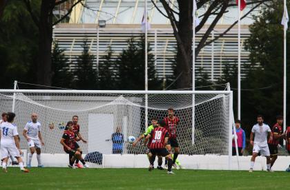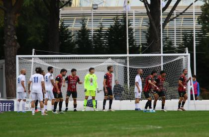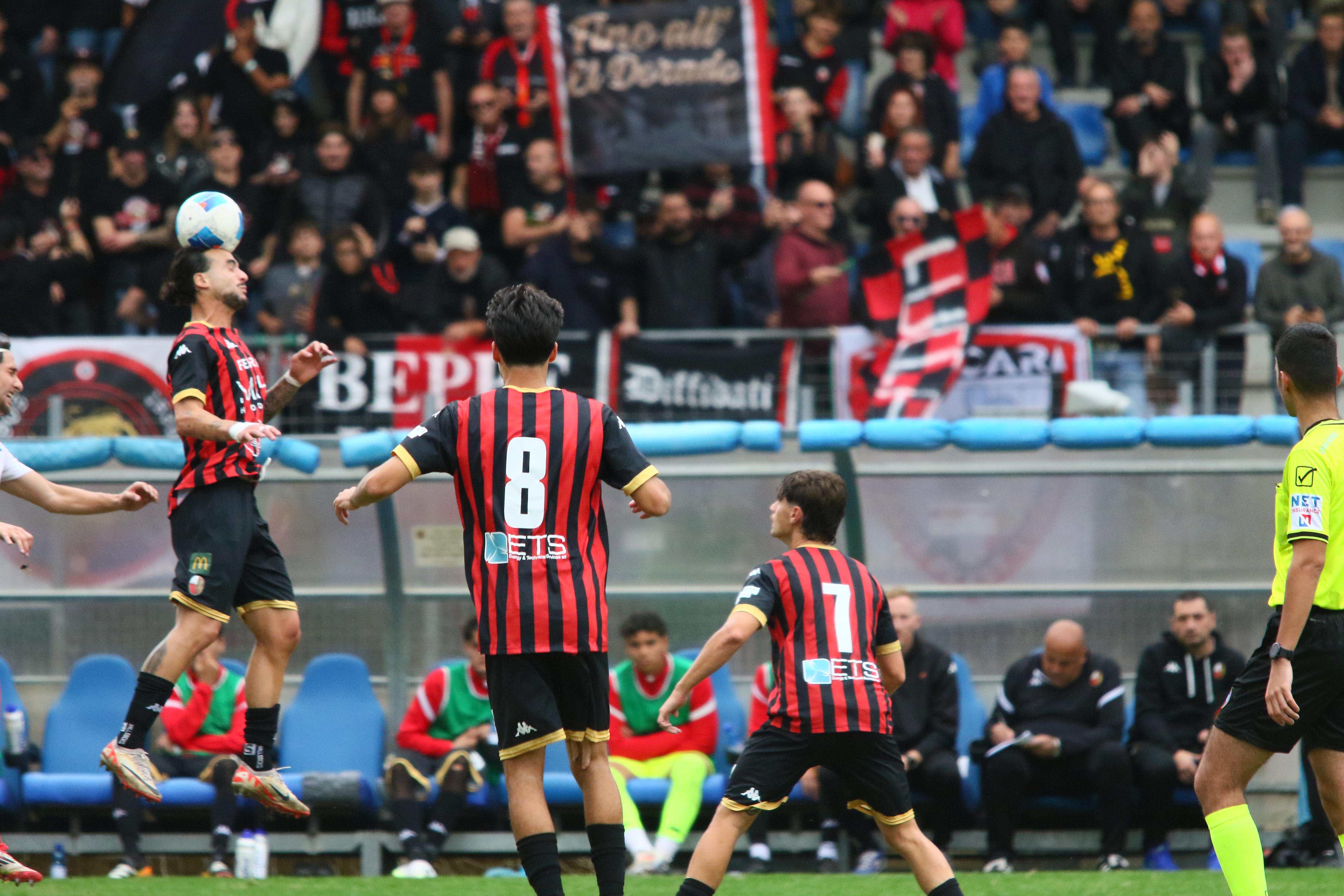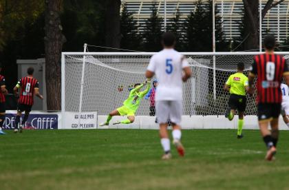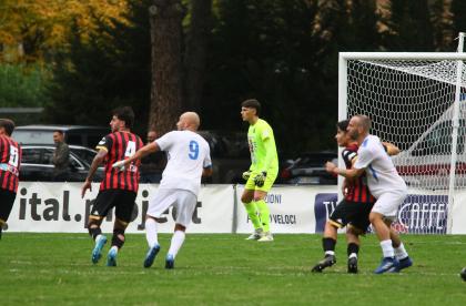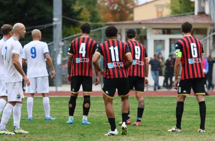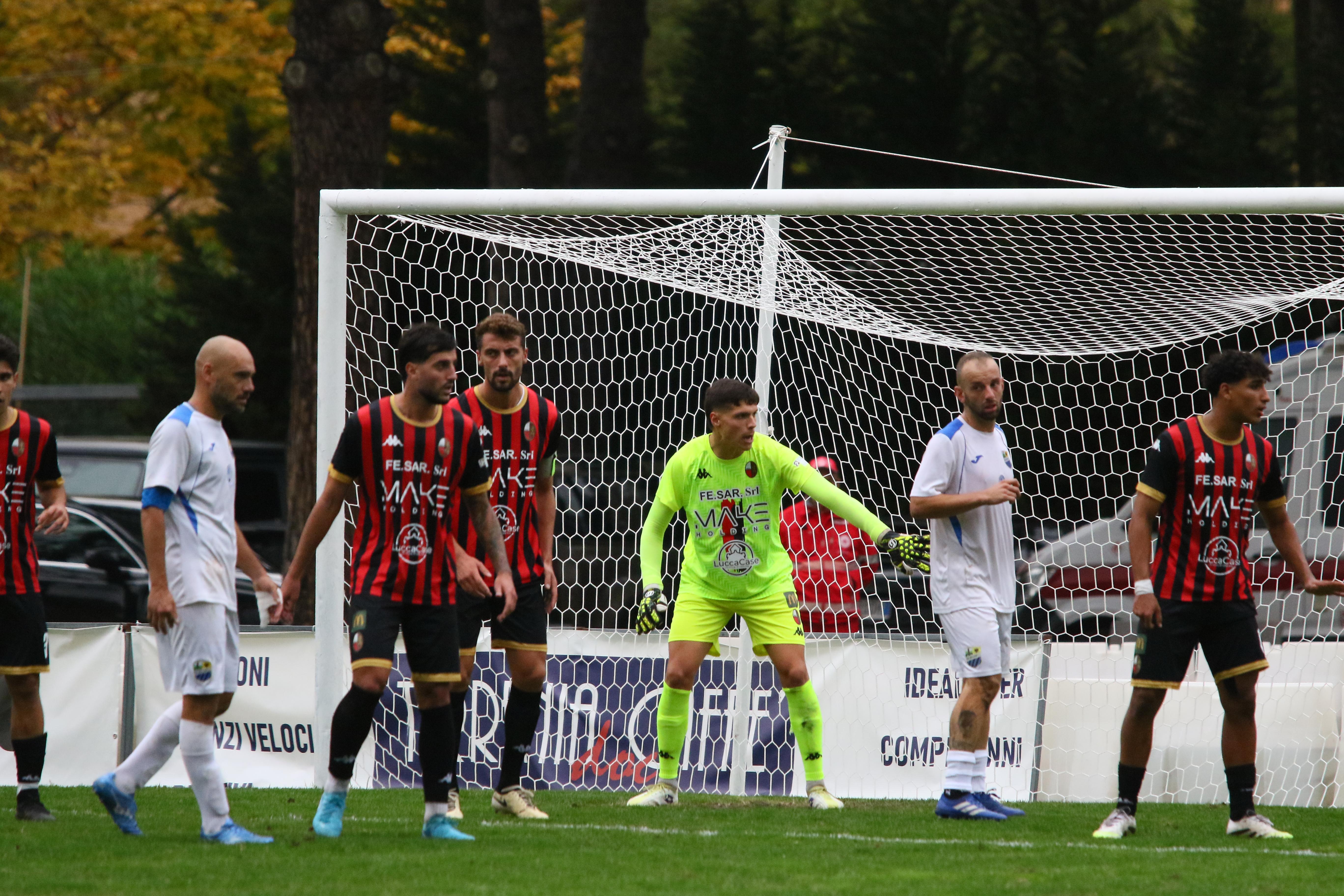Mister Pirozzi rilancia dal primo Venanzi in difesa, mentre in attacco spazio a Piazze, Riad e Caggianese. L'avvio è senza grandi sussulti, la sensazione è che mister Cordoni abbia imbrigliato bene i rossoneri con i padroni di casa ben raccolti, molto fisici e pronti a scattare di rimessa.