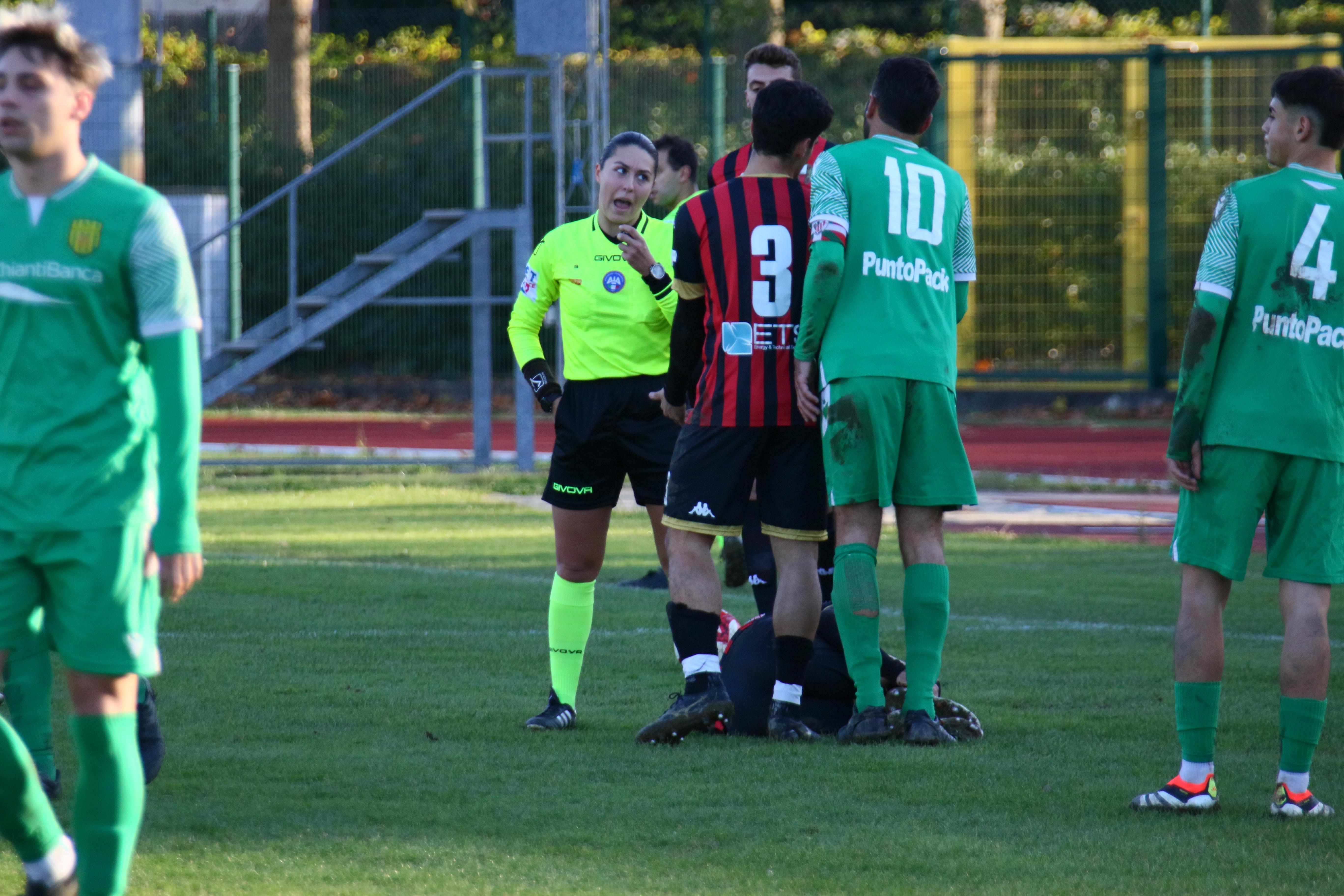 L'avvio è di marca rossonera che provano a spingere senza comunque produrre effetti concreti, i padroni di casa però sono pronti a ripartire in contropiede, mostrando buona reattività. Con il passare dei minuti è semmai la Lucchese a spegnersi, e l'assenza di Picchi si nota, ma al 17' Caggianese si inserisce molto bene e viene steso da Romano, per l'arbitro incredibilmente non c'è nulla. Un minuto dopo altro evidente fallo, stavolta ai danni di un giocatore di casa a poco dall'area di rigore: la signora Foresi persiste nell'errore e lascia continuare. E' in giornata, ci auguriamo solo in questa giornata, no. La partita, arbitro a parte, non decolla e sono semmai i padroni di casa in un paio di circostanze a creare problemi: al 33' Zefi costringe Milan alla risposta in tuffo. E' come se non venisse trovato il bandolo della matassa, con molti errori di misura che si sommano a tanta volontà ma anche a poche idee chiare anche perché i padroni chiudono ogni spazio. E i primi 45' sono tutti qui. Serve di più, serve qualche guizzo.