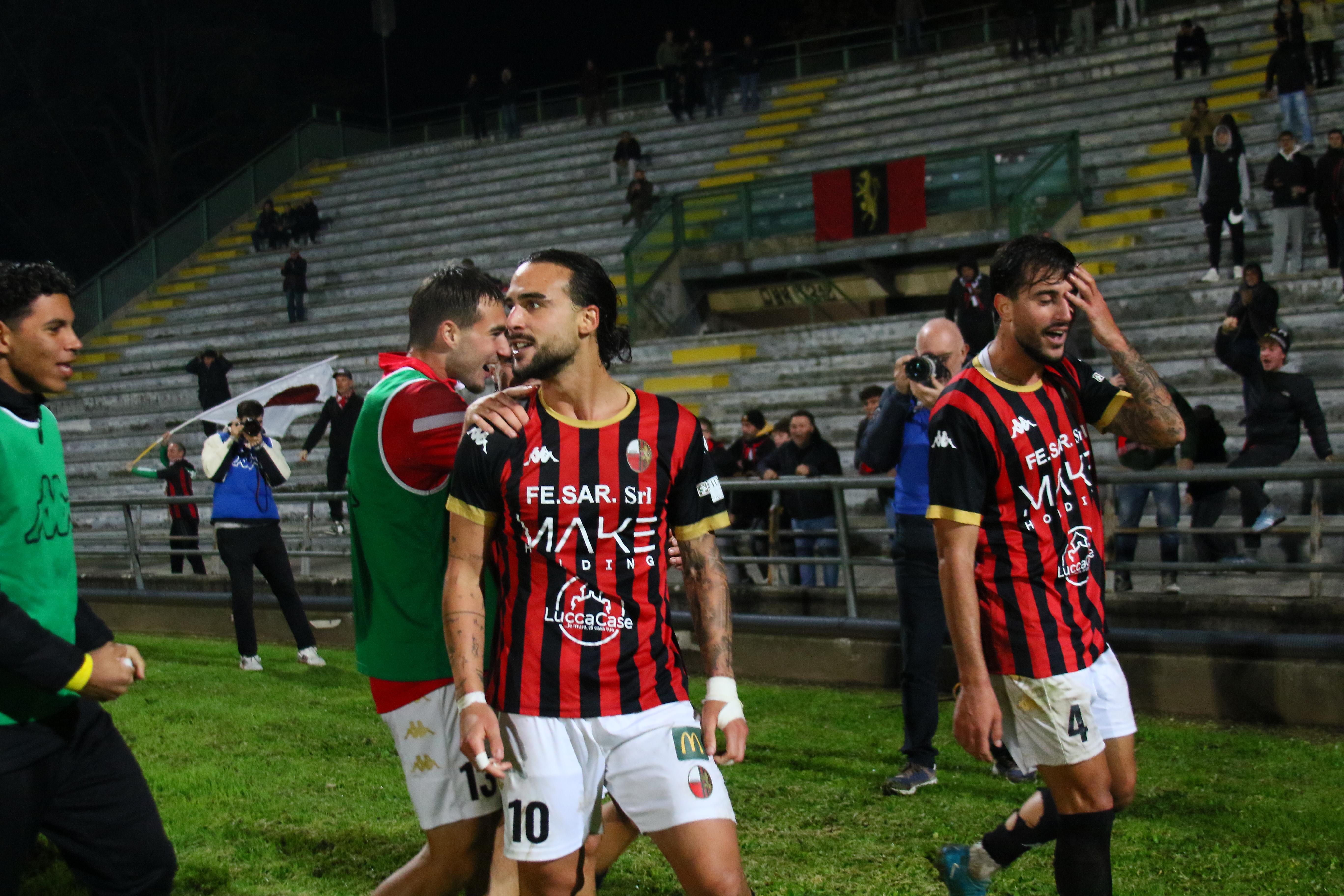 La Lucchese vince largo a Massa: finisce 3-0 e il punteggio è persino stretto. Apre le marcature nel primo tempo Santeramo, poi nella ripresa un autogol e il solito Riad chiudono la gara: commento, tabellino e foto