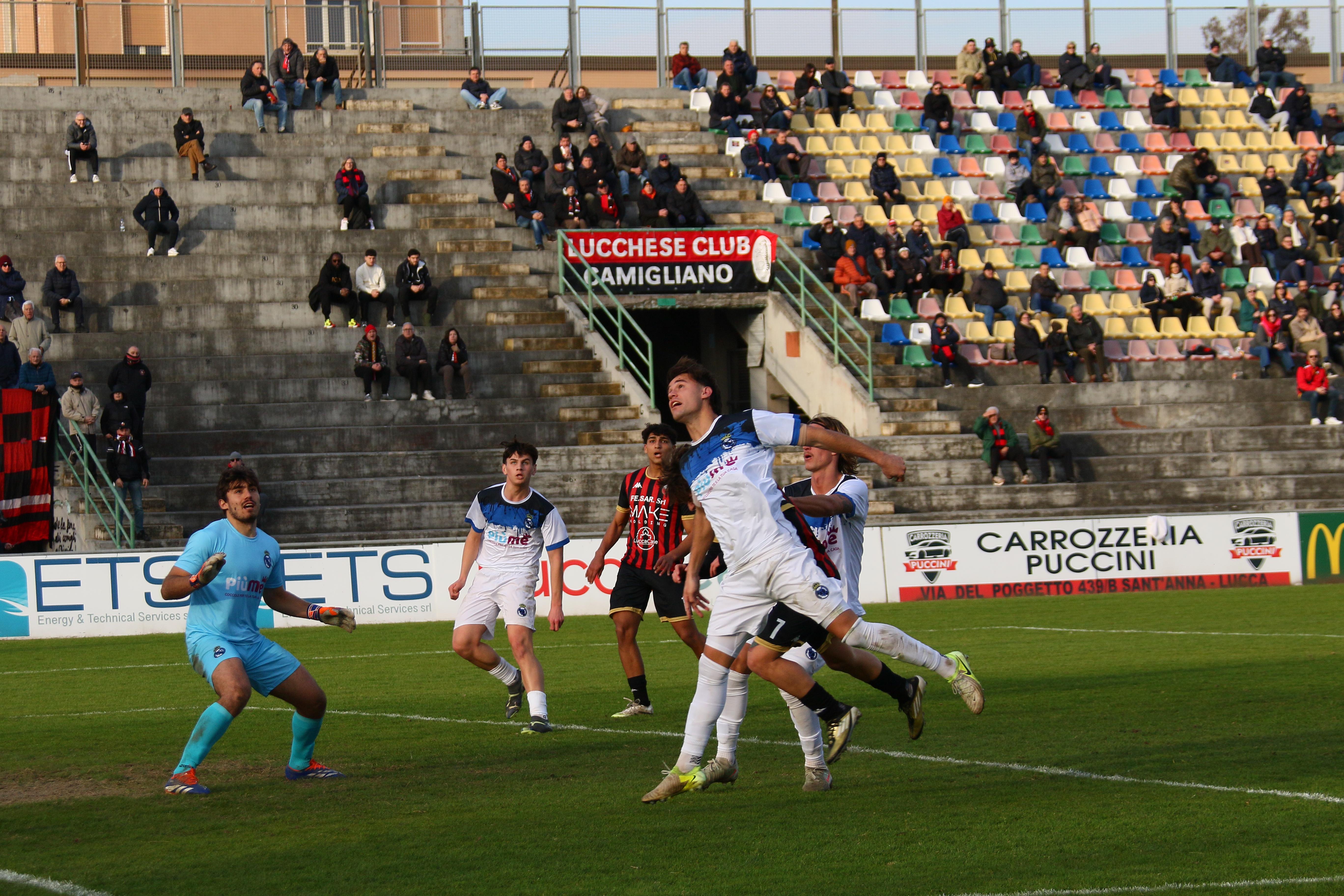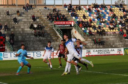 E a un minuto dalla fine Piazze centra una traversa con un gran tiro: Pastine è battuto ma la palla rimbalza fuori dalla porta. E c'è ancora da patire per qualche mezzo svarione. Ma nei tre minuti di recupero il risultato non cambia: la Lucchese vince e rimane prima, con Zenith e Viareggio che continuano la loro corsa.