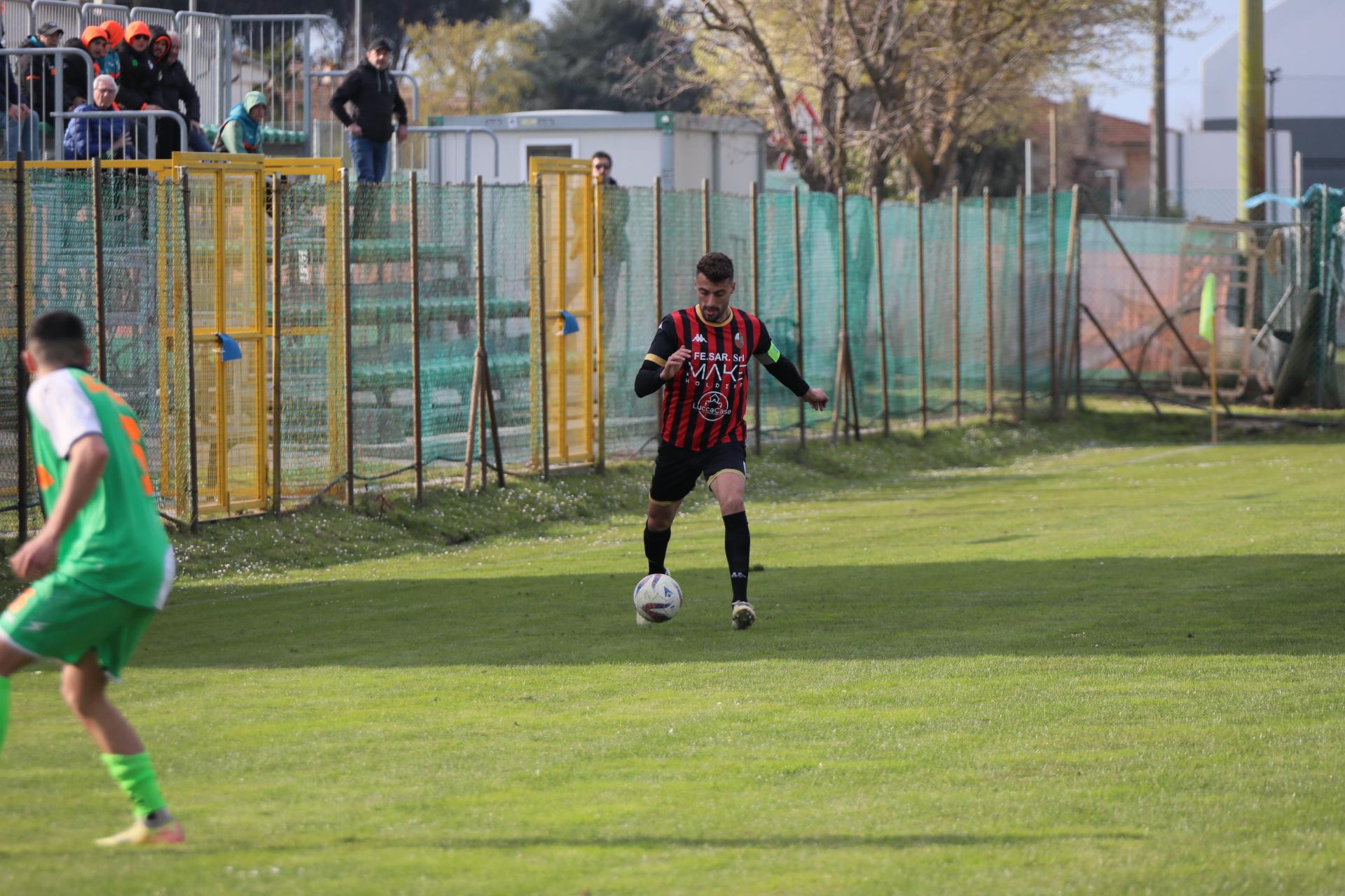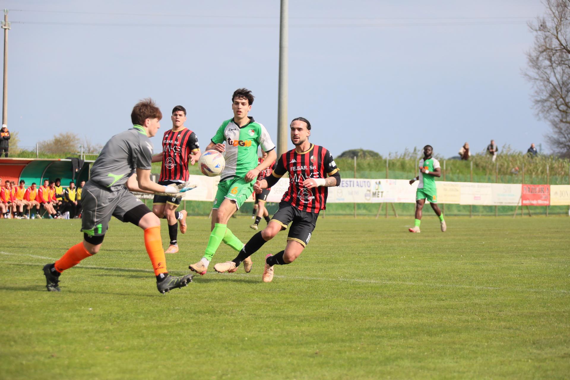 Di fronte a oltre 2000 spettatori, la Lucchese batte nei secondi finali di gara la Massese e porta a otto punti il vantaggio sulle seconde a sei giornate dalla fine. Decide Sansaro, entrato da poco, con un colpo di testa che può valere tantissimo. Commento, tabellino e foto