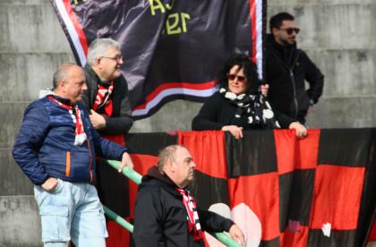 L'avvio è alla camomilla, per il primo sussulto si deve attendere il 12' quando Bartolotta conclude alto una bella azione in velocità dei rossoneri, anche oggi in maglia bianca. E' al 19' che si genera la prima vera occasione: Russo, appostato sul secondo palo, colpisce a botta sicura e Lotti salva quasi sulla linea. Ma è una fiammata, per rivedere un vera e propria occasione si deve attendere il recupero quando Salvadori, a centroarea, tira in bocca Milan. Un primo tempo con prevalenza dei padroni di casa, in grado di sviluppare anche qualche buona trama, ma davvero avaro di emozioni.
