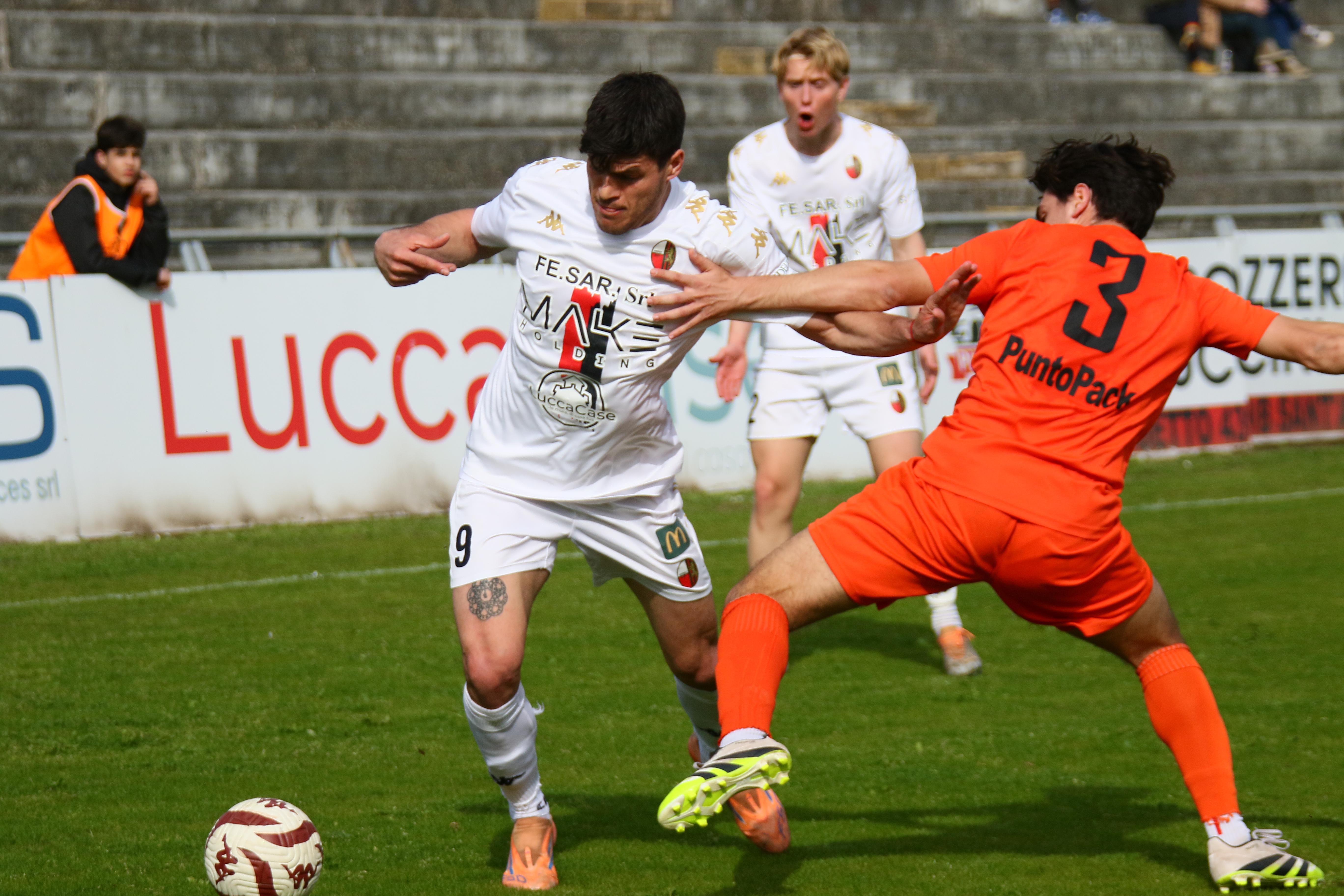 Ancora una vittoria, come altre volte sofferta quanto meritata: la Lucchese supera per 2-1 al Porta Elisa il Montespertoli e ora è davvero a un passo dalla promozione. Sulla seconda in classifica, la Zenith Prato, restano otto punti di vantaggio a quattro domeniche dal termine del campionato e ogni gara trascorsa la matematica certezza si avvicina. Contro la formazione fiorentina, una delle più in forma del campionato e che anche all'andata si dimostrò un osso duro, la Lucchese vince grazie a un secondo tempo tutto cuore, tecnica e carattere dopo una prima frazione di gara invece abbastanza blanda.