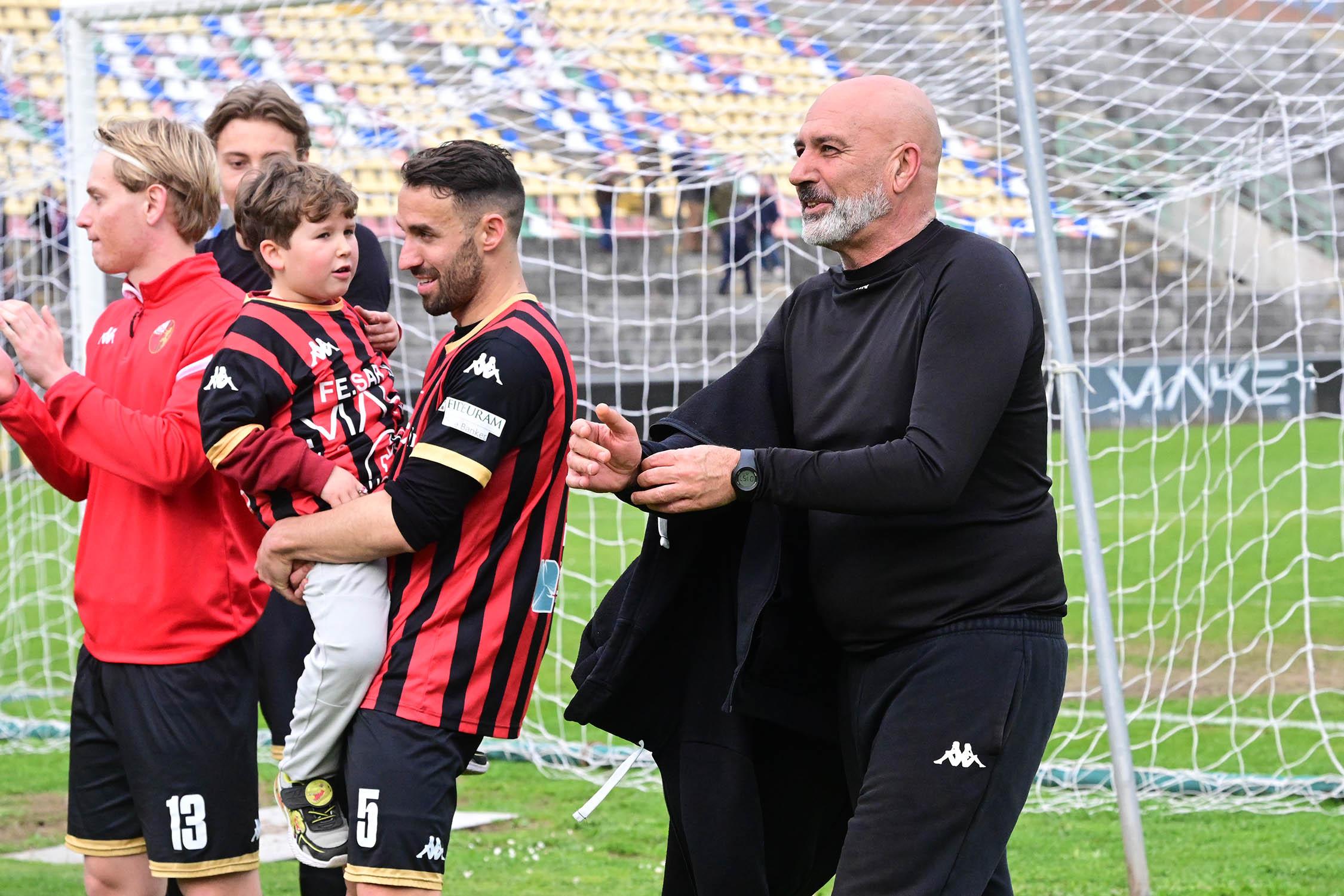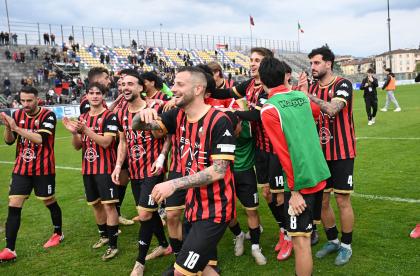 Stadio Porta Elisa più pieno del solito con buona presenza di tifosi ospiti, accolti da quelli di casa con una coreografia rossonera e bianconera in omaggio allo storico gemellaggio, Mister Pirozzi ritrova Riad sul fronte offensivo, un'assenza che si è avvertita eccome, mentre in difesa scommette su Lorenzini, preferito a Tosi.