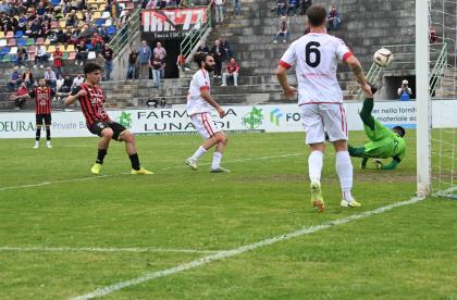 Di fronte a oltre 2000 spettatori, la Lucchese batte nei secondi finali di gara la Massese e porta a otto punti il vantaggio sulle seconde a sei giornate dalla fine. Decide Sansaro, entrato da poco, con un colpo di testa che può valere tantissimo. Commento, tabellino e foto