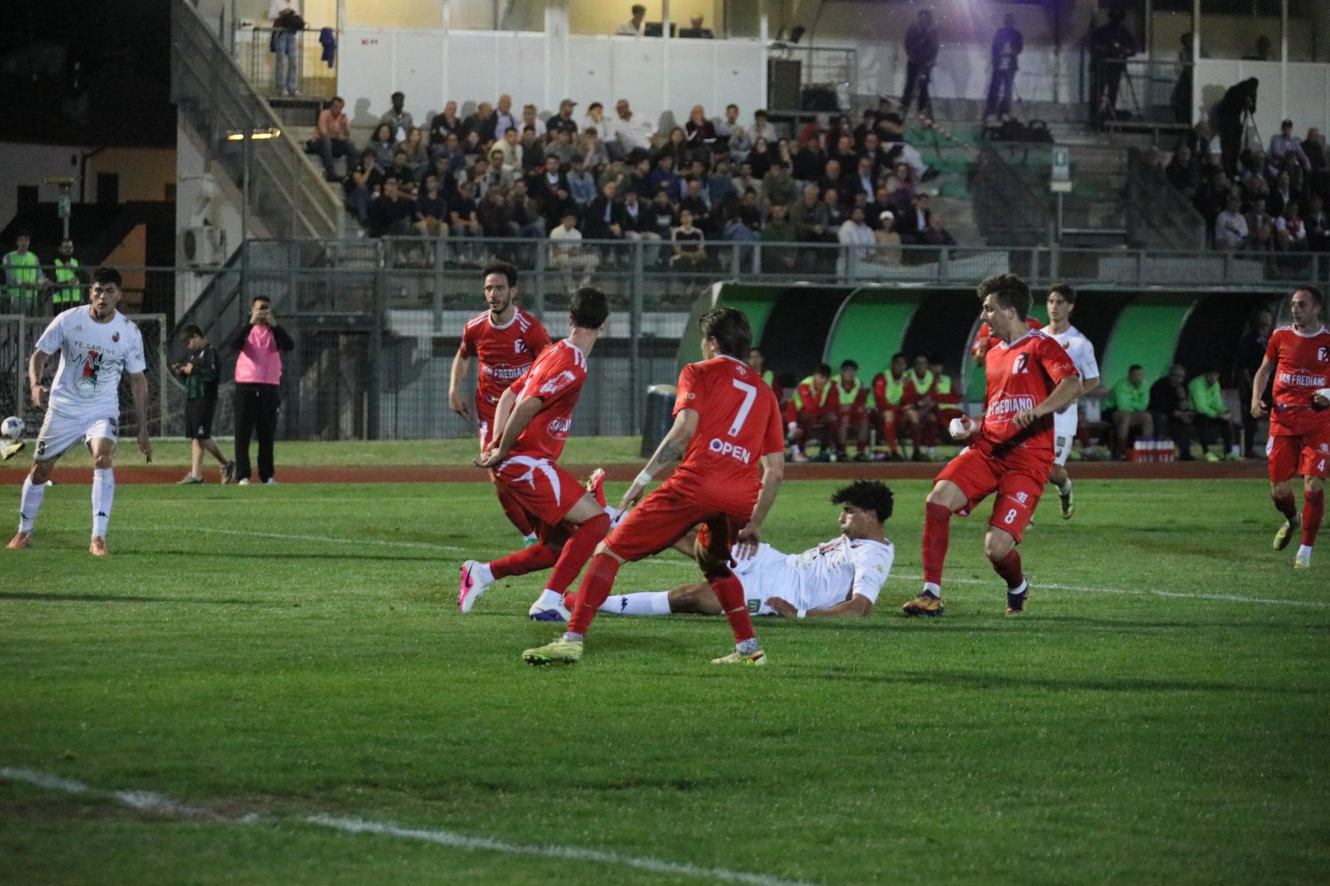 La botta, in casa Rondinella, si fa sentire: al 32' Riad prova il tris dal limite ma il tiro è ribattuto. La prima occasione per le rondinelle arriva al 35' con Polo che a centroarea non riesce a coordinarsi. Il gol che riapre la partita arriva al 41' con Saccardi bravo a incrociare in area con la difesa rossonera scoperta sul settore sinistro. E i giochi si riaprono improvvisamente. L'intervallo è l'occasione per riordinare le idee.