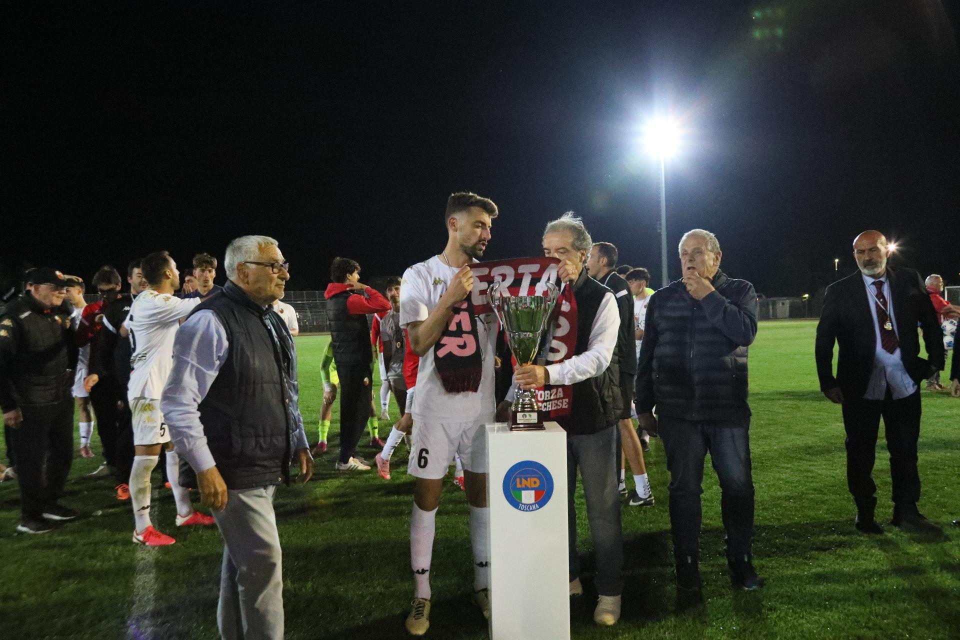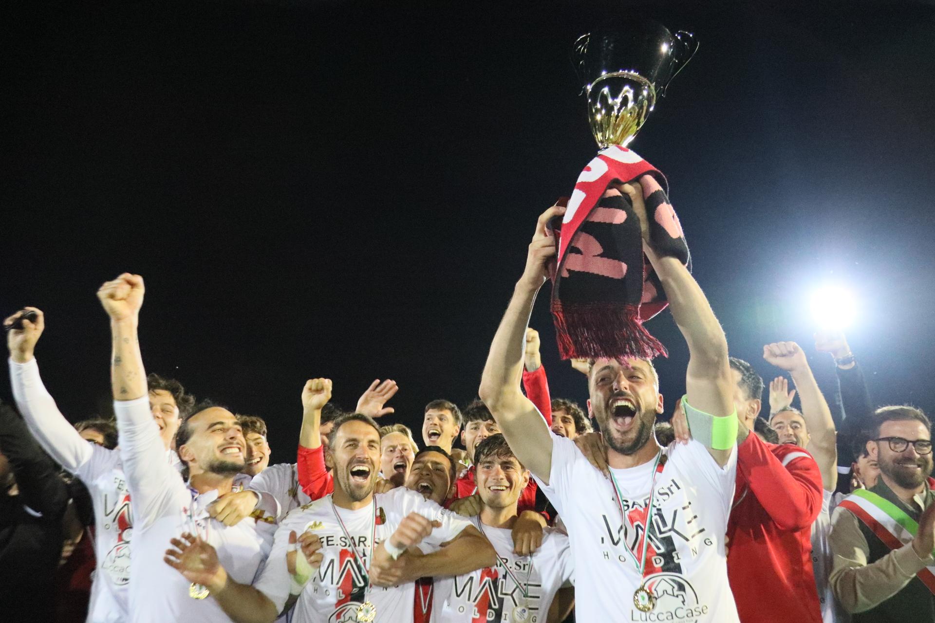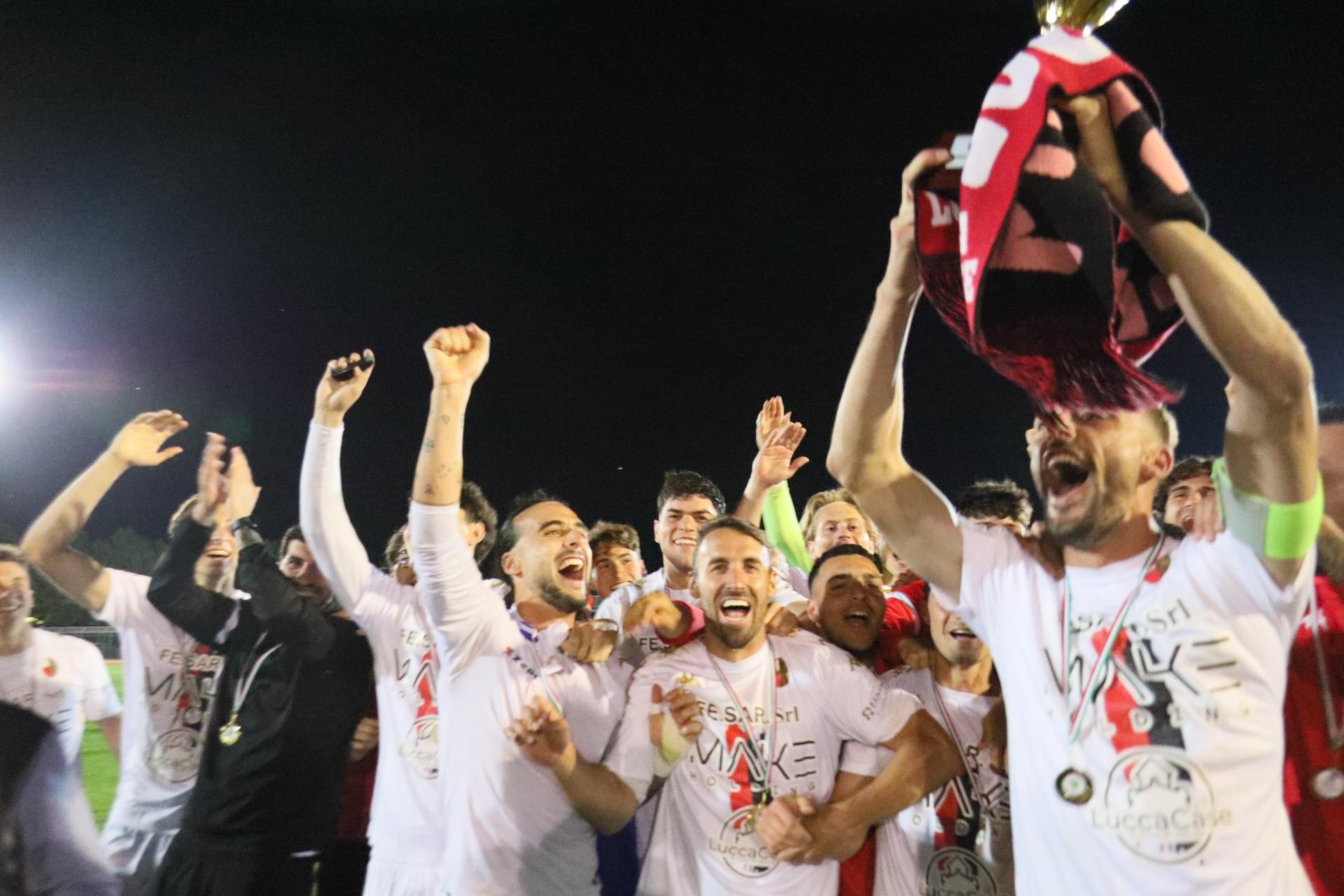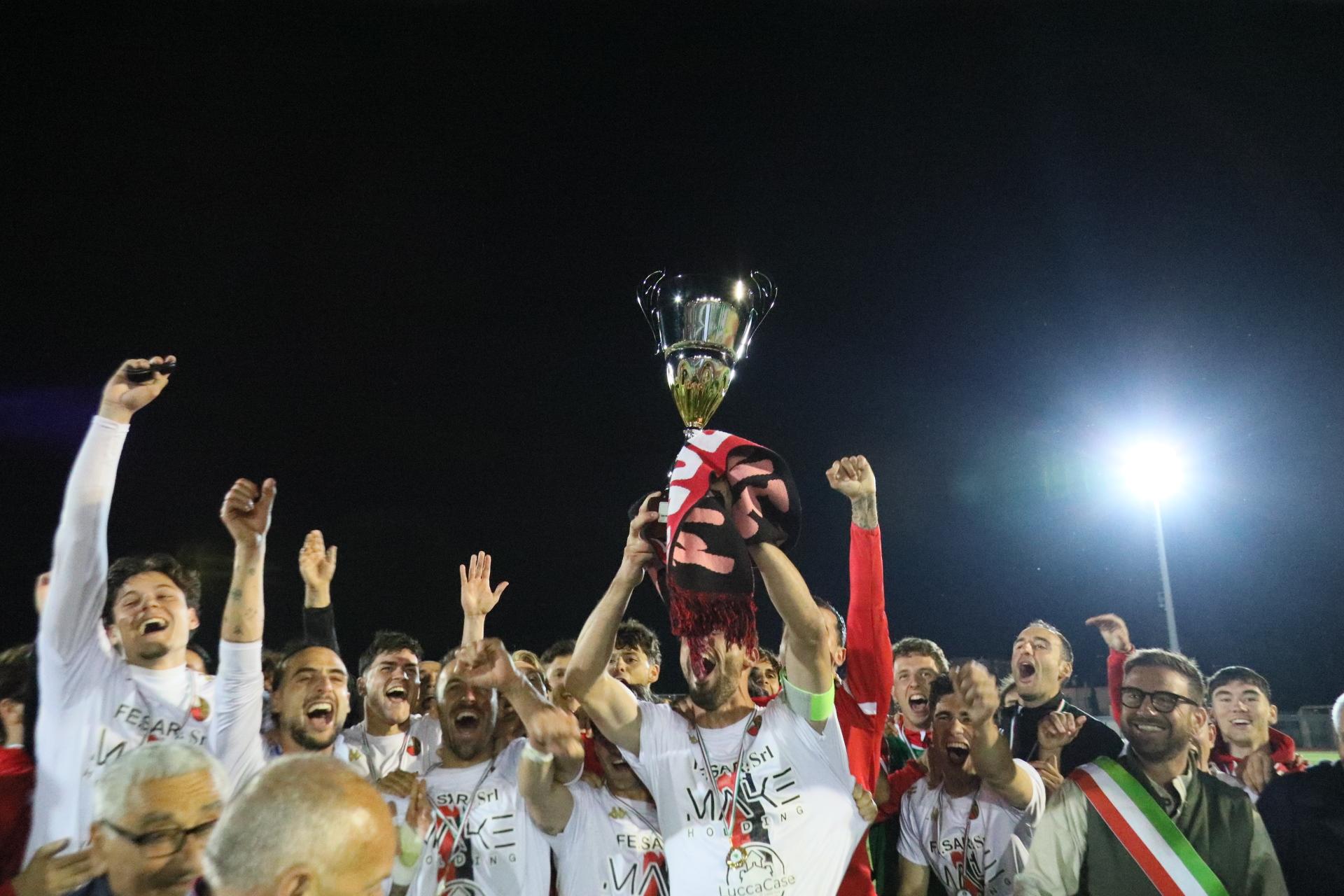 La Lucchese vince 2-0 contro il Perignano e centra la promozione in Serie D con due giornate di anticipo. Sblocca nel primo tempo Fedato su rigore, nella ripresa, Lorenzini mette il risultato al sicuro. Porta Elisa con 3500 spettatori: commento, tabellino e foto