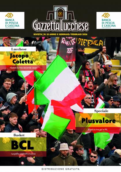 E' in distribuzione il cinquantatresimo numero del periodico di Gazzetta Lucchese. Nella rivista appena stampata, una lunga intervista esclusiva con l'ex rossonero Jacopo Coletta che ripercorre le sue stagioni nella Lucchese. Spazio anche a un lungo servizio sul Bcl, la squadra di basket della città che sta dando vita a una stagione esaltante. E, ancora, un dettagliato servizio sul Plusvalore nel calcio moderno