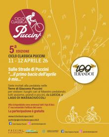 Domenica 12 aprile si svolgerà la quinta edizione della Ciclo Classica Puccini, l'evento non agonistico che unisce nella mobilità dolce, in bicicletta, i territori dove Giacomo Puccini visse e compose le sue opere immortali, attraverso la natura ed i paesaggi uniti dalla ciclopedonale Giacomo Puccini, fra Lucca e Massaciuccoli, lungo le sponde del Serchio e del lago caro al Maestro. L'evento sarà come sempre un appuntamento non solo per gli appassionati di ciclismo, ma per tutti coloro che amano la natura e vogliono scoprire il territorio lucchese e versiliese attraverso i luoghi amati dal Maestro, trascorrendo un fine settimana all'aria aperta in sella alla propria bici insieme a professionisti e sportivi del territorio. La Ciclo Classica Puccini si svolgerà con partenza libera (alla francese) dalle 9 alle 10 da piazza del Giglio a Lucca, per poi raggiungere la sponda sinistra del Serchio lungo il parco fluviale fino al ponte di Ripafratta: da qui, sulla sponda destra del Serchio, il percorso prosegue fino a Filettole e poi nelle campagne della pianura sui confini delle province di Pisa e Lucca fino al lago di Massaciuccoli, percorrendo l'ultimo tratto intorno alle sue rive fino all'area attrezzata Coccobrillo di Massaciuccoli. Sarà previsto anche un percorso intermedio di 14 km (andata e ritorno) che arriverà fino alla Fattoria Urbana Drappo verde, nel parco fluviale. Lungo il percorso ci saranno flash mob di musiche pucciniane e due punti ristoro attrezzati da Unicoop Firenze (Fattoria Drappo Verde sul lungofiume a Lucca ed all'area attrezzata Coccobrillo di Massaciuccoli). La partecipazione alla Ciclo Classica Puccini è gratuita ed aperta a qualsiasi tipo di bicicletta. Per iscriversi sarà necessario compilare il modulo sul sito www.cicloclassicapuccini.it alla sezione "Iscriviti" o consegnando, alla partenza, il modulo cartaceo scaricabile dalla stessa pagina: ciò permetterà di usufruire gratuitamente dei ristori e di assistere ai flash mob. La data di apertura delle iscrizioni sarà annunciata a breve sulle pagine social "Ciclo Classica Puccini". Tutte le informazioni sui percorsi, sulle modalità di partecipazione sono disponibili sul sito cicloclassicapuccini.it. Si raccomanda l'uso del casco. L'evento è stato organizzato da Puccini Experience aps, con il supporto di Regione Toscana, Provincia di Lucca, Camera di Commercio della Toscana Nord-Ovest, Comune di Lucca, Comune di Massarosa, Comune di Pescaglia, Comune di Viareggio, Comune di Forte dei Marmi, Comune di Vecchiano, Comune di San Giuliano Terme, Fondazione Cassa di Risparmio di Lucca e Fondazione Banca del Monte di Lucca. L'organizzazione tecnica della ciclopedalata è a cura di ASD Team Chronò di Lucca. I ristori sono stati organizzati grazie alle sezioni soci di Lucca e Val di Serchio - Versilia di Unicoop Firenze presso la Fattoria Drappo Verde e l'area attrezzata di Massaciuccoli Coccobrillo. Si ringrazia Sui passi di Puccini aps, Associazione Musicale Lucchese, Anbima aps sezione Lucca gli Atleti del Team Special Olympics Toscana "Allegra Brigata", ed i partner privati dell'evento: Gruppo Sgrò e Caffè Bonito.