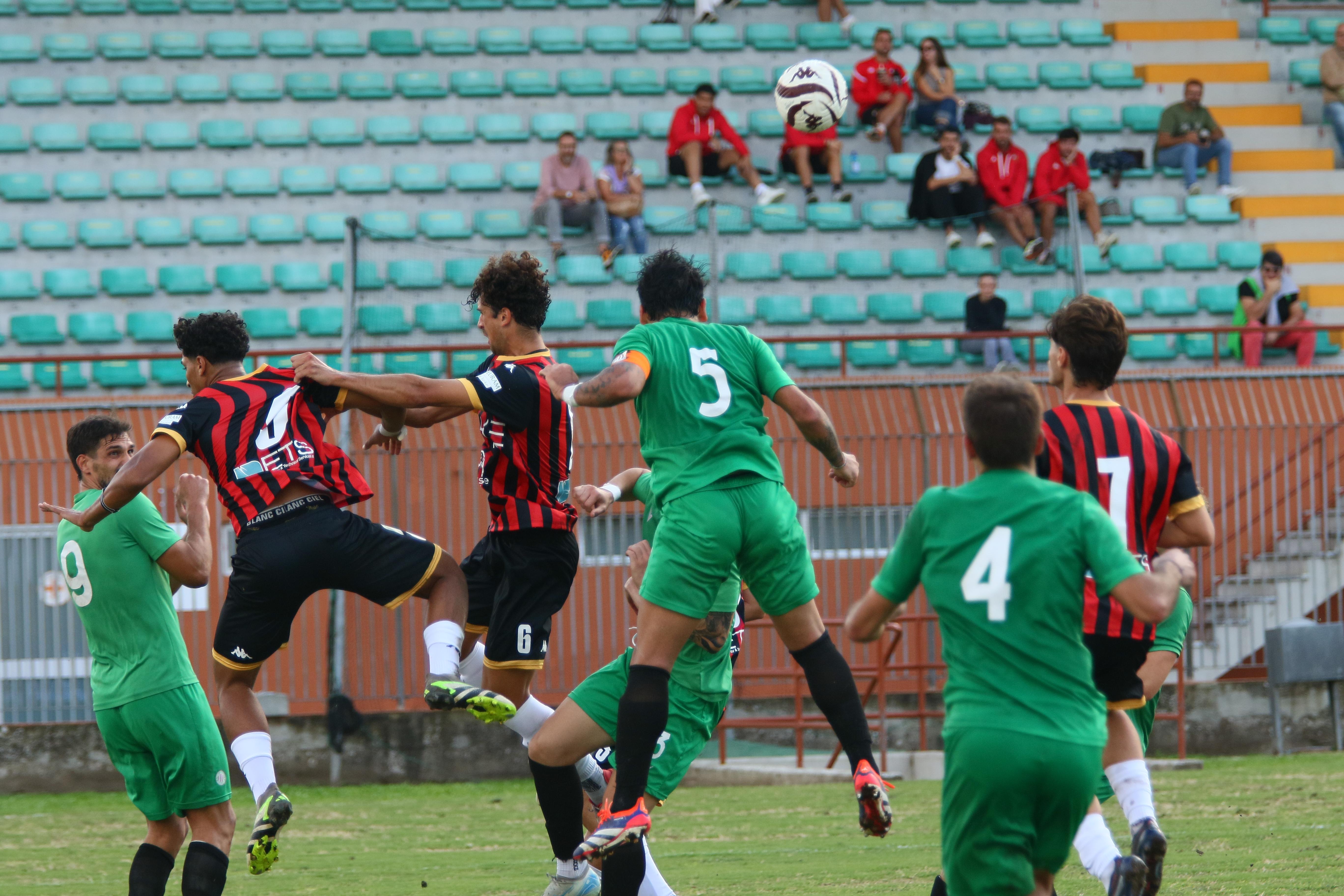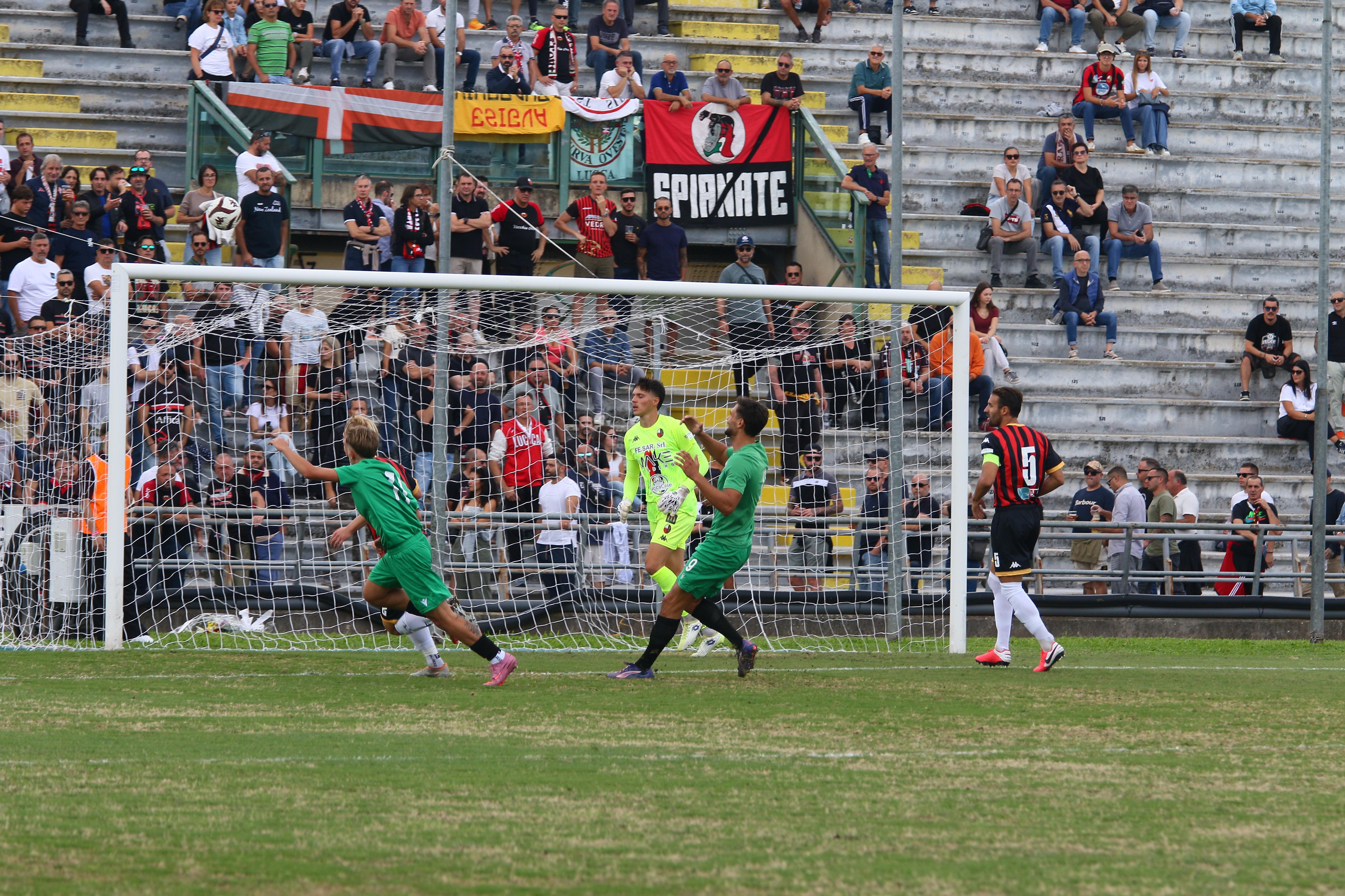 Nella ripresa gli ospiti, che nel prima frazione non si erano mai affacciati in area rossonera, provano a cercare il pari alzando il baricentro. E al 20', con la difesa rossonera pasticciona, Cotroneo coglie in pieno il palo. Pirozzi butta nella mischia Galotti al posto di Bartolotti, tra i più positivi, e Riad si sposta sulla fascia. Le azioni latitano, l'agonismo invece c'è tutto. Nei sei minuti di recupero gli ospiti provano a stringere l'assedio, ma i rossoneri reggono che si aggiudicano il match.