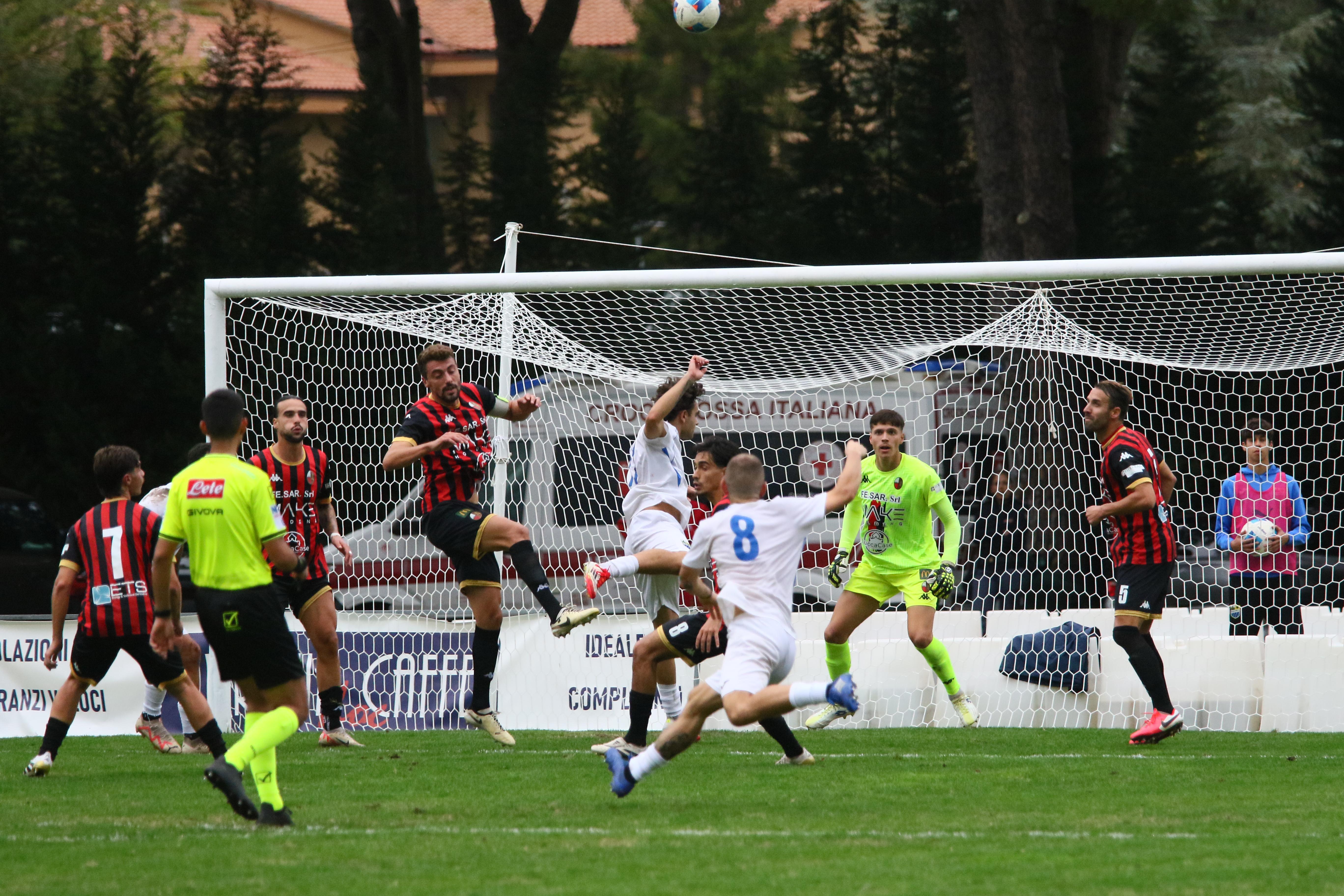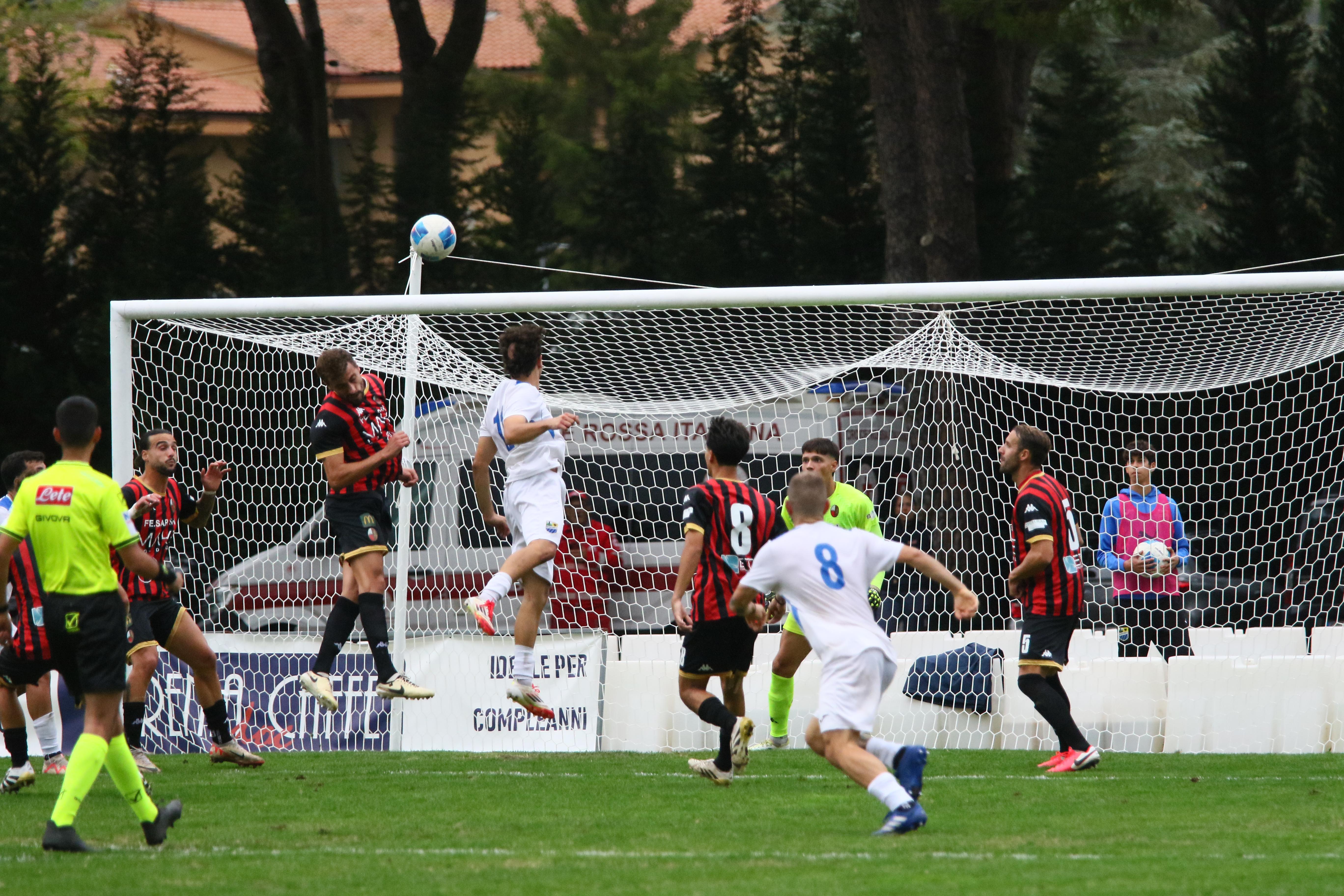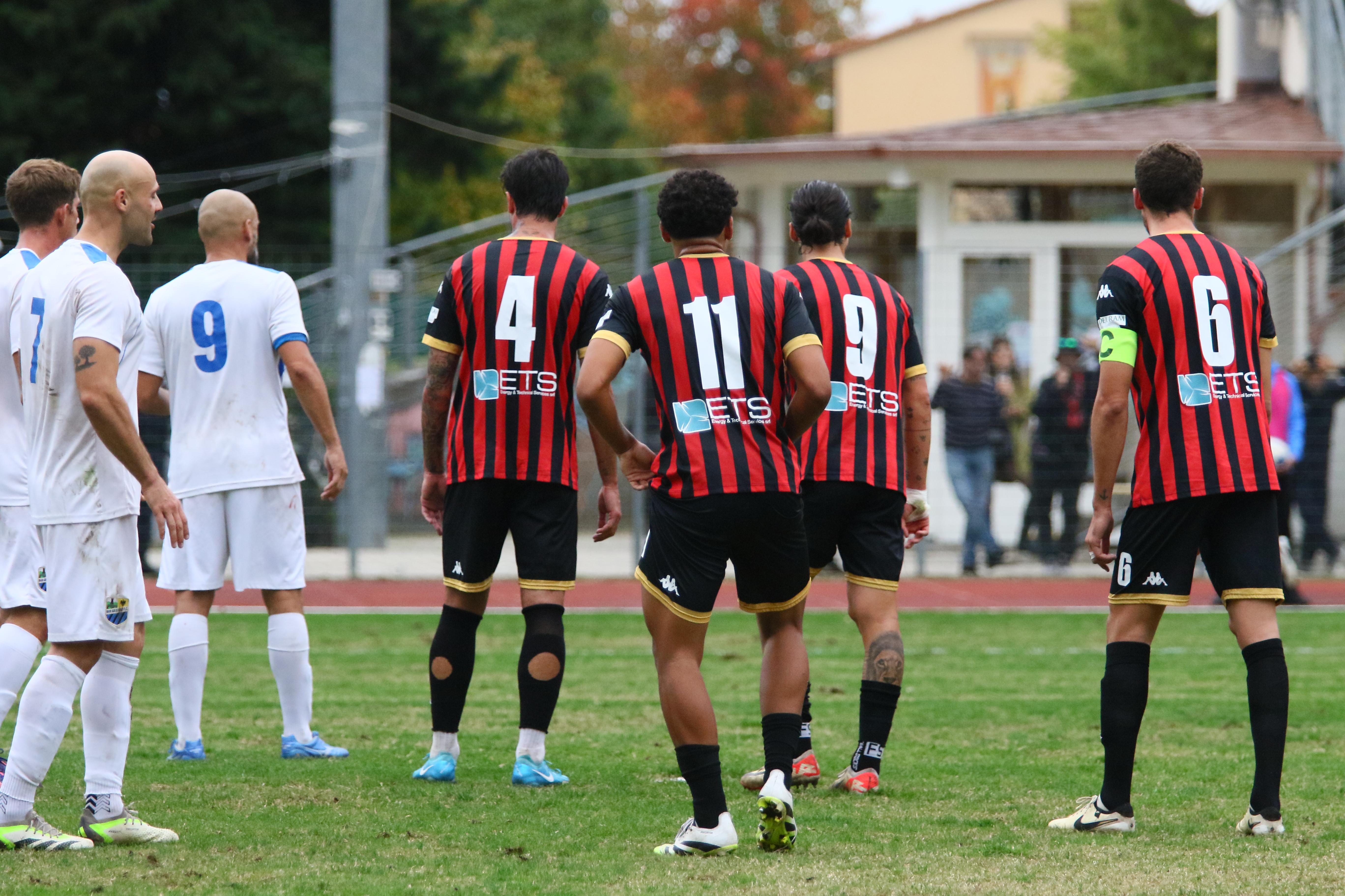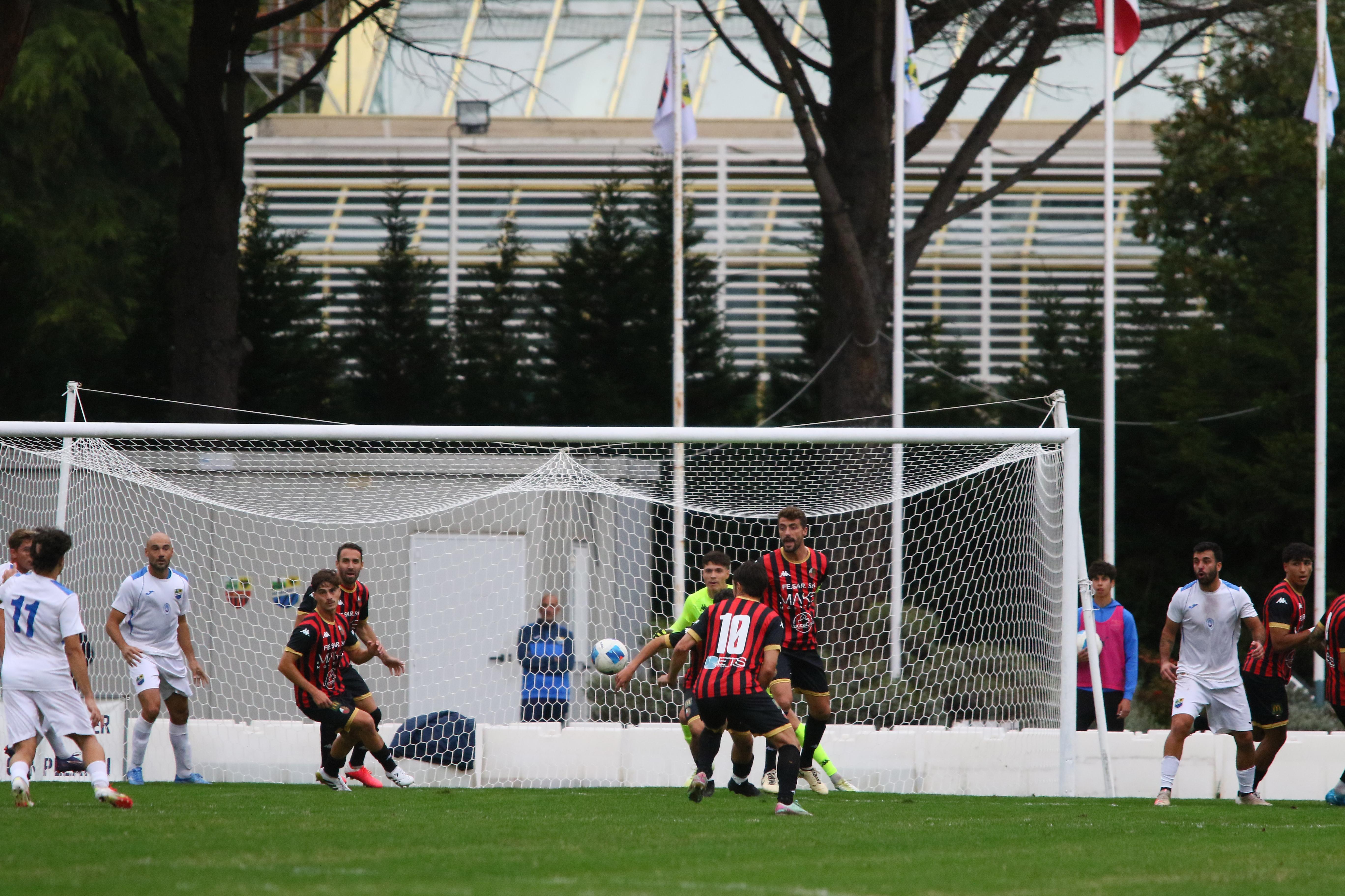 Mister Pirozzi rilancia dal primo Venanzi in difesa, mentre in attacco spazio a Piazze, Riad e Caggianese. L'avvio è senza grandi sussulti, la sensazione è che mister Cordoni abbia imbrigliato bene i rossoneri con i padroni di casa ben raccolti, molto fisici e pronti a scattare di rimessa.