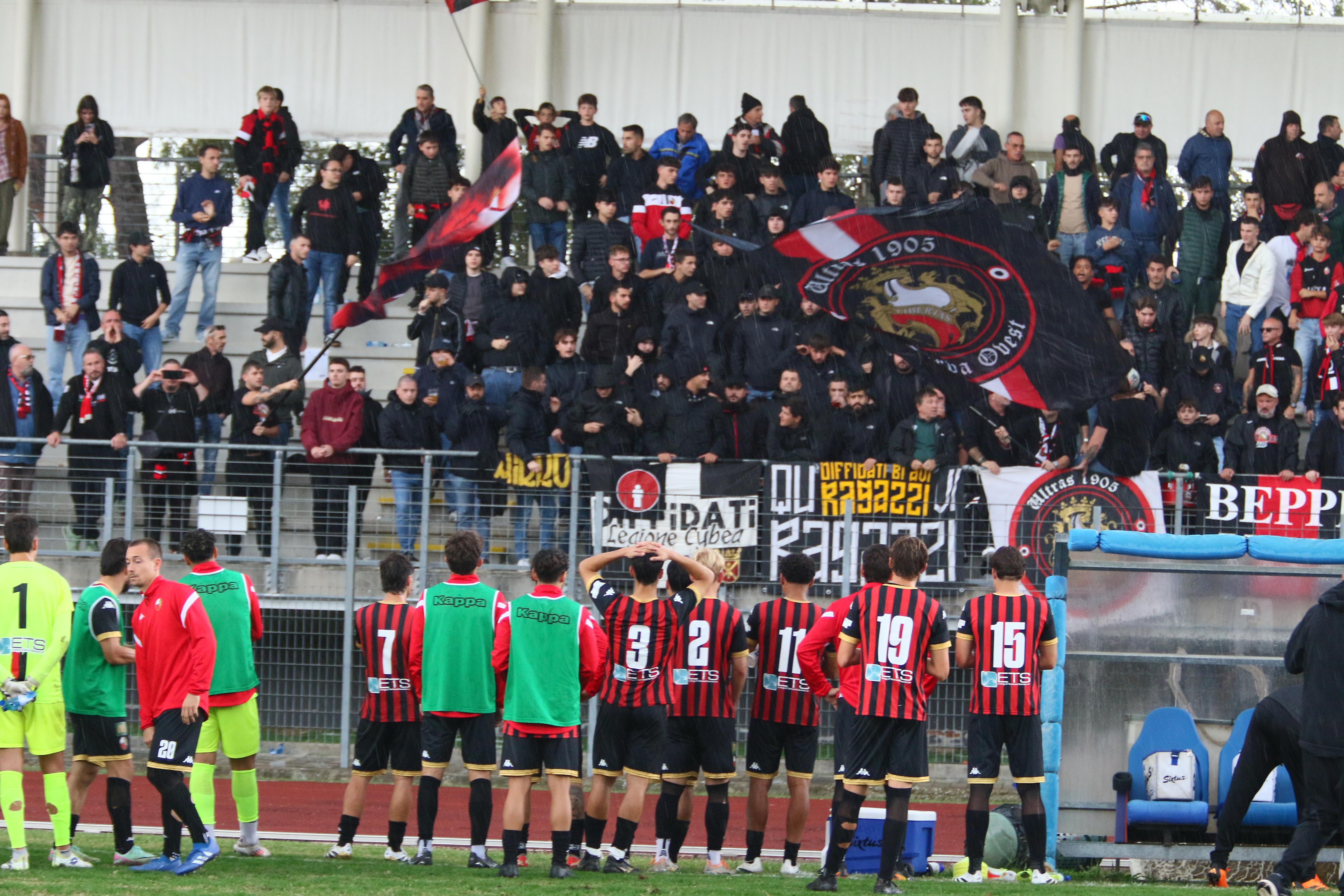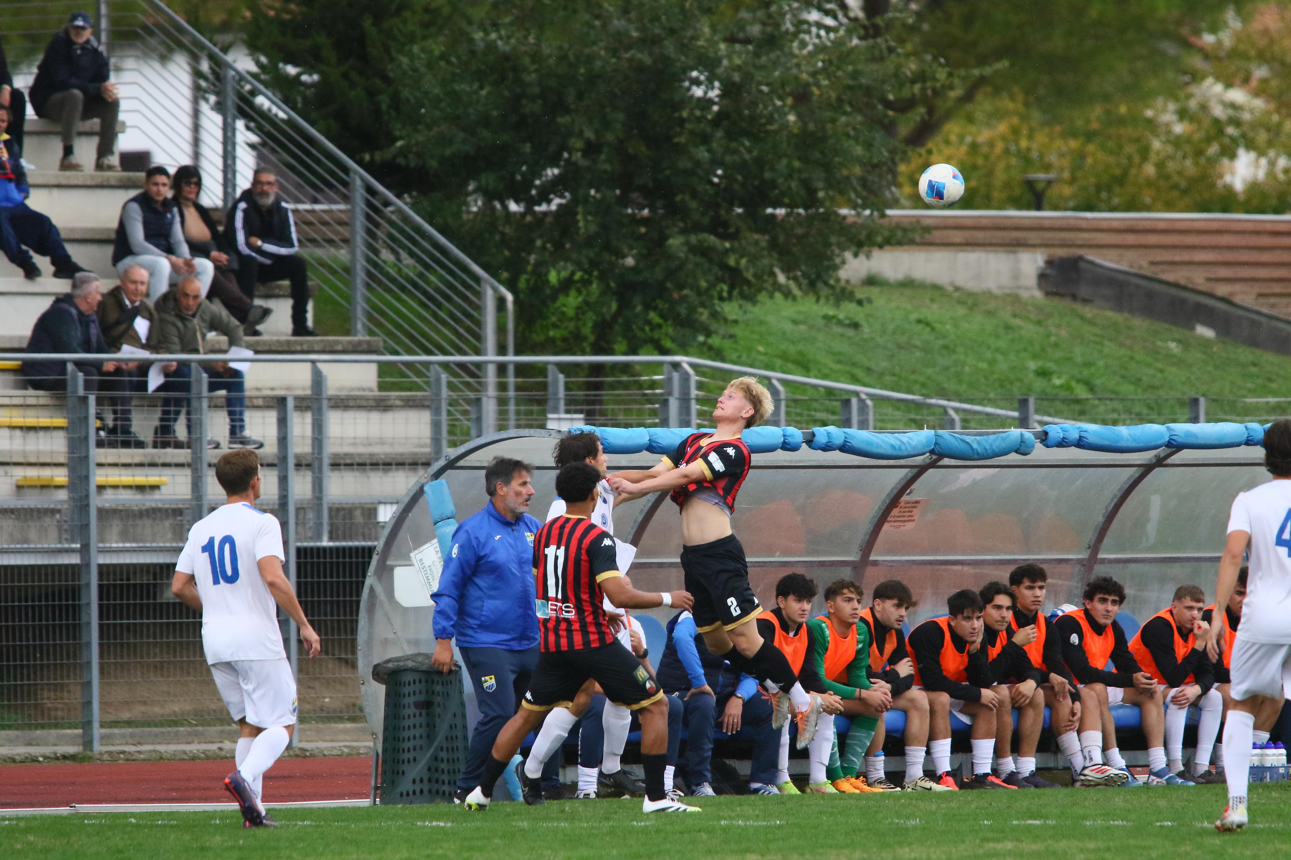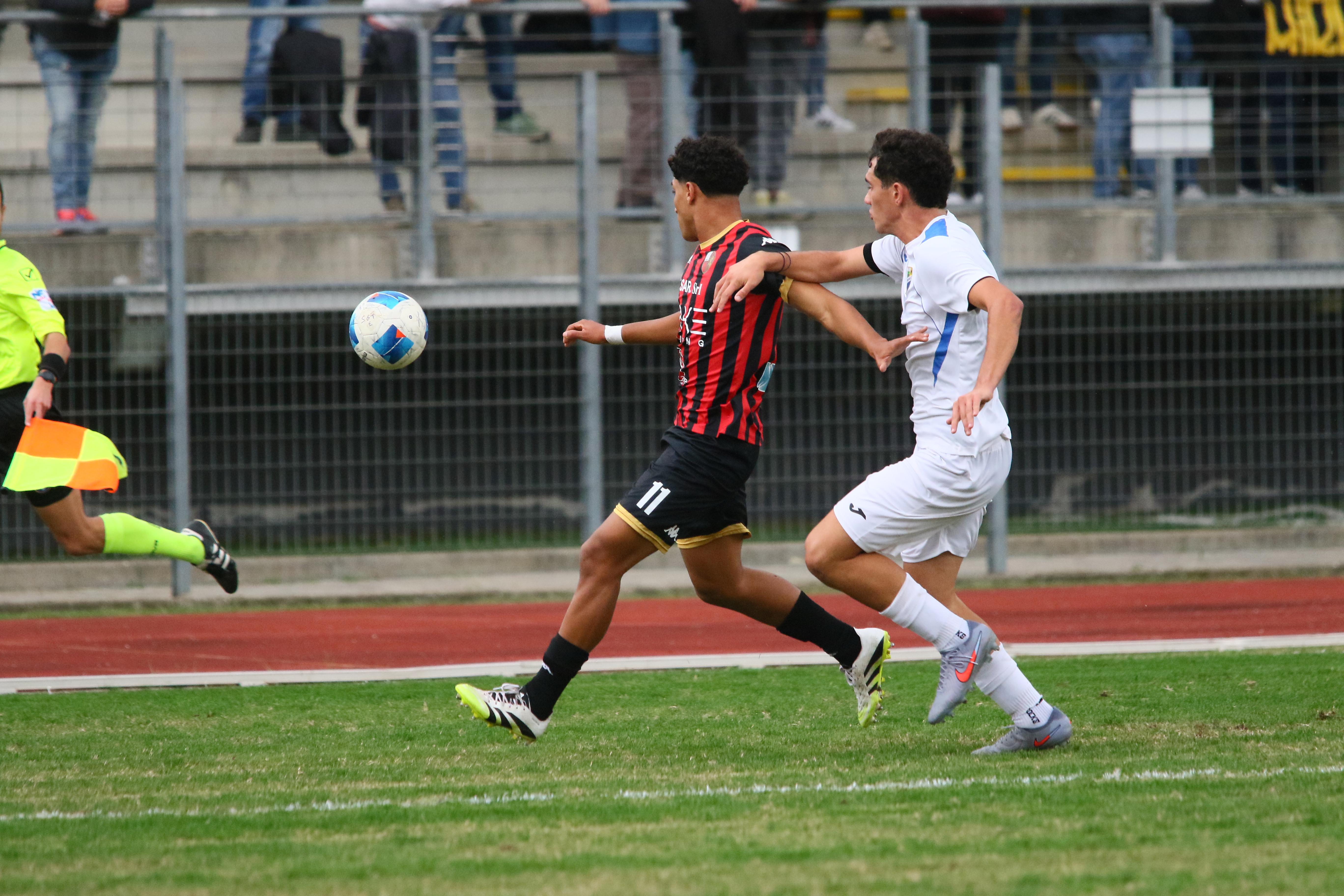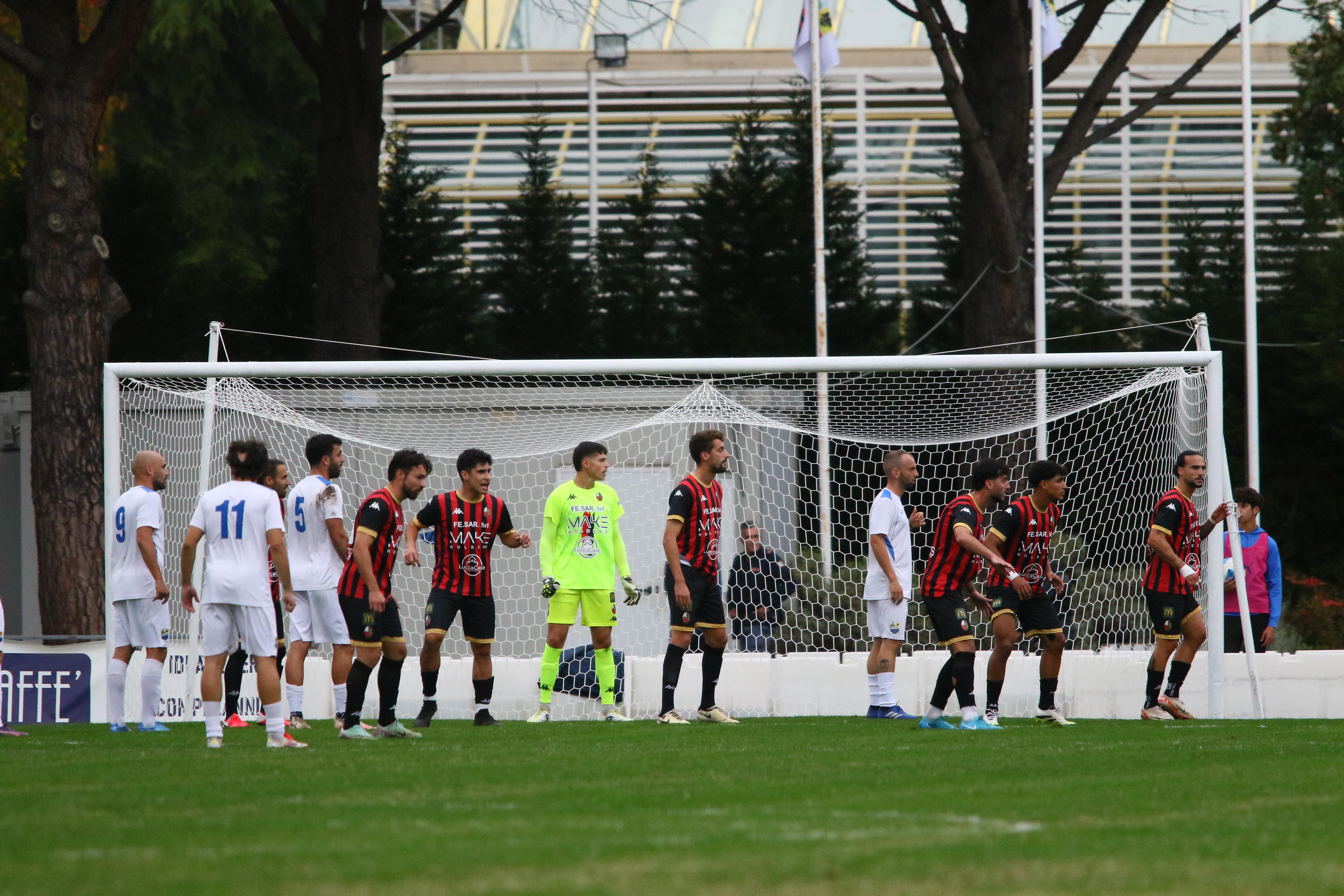 Mister Pirozzi rilancia dal primo Venanzi in difesa, mentre in attacco spazio a Piazze, Riad e Caggianese. L'avvio è senza grandi sussulti, la sensazione è che mister Cordoni abbia imbrigliato bene i rossoneri con i padroni di casa ben raccolti, molto fisici e pronti a scattare di rimessa.