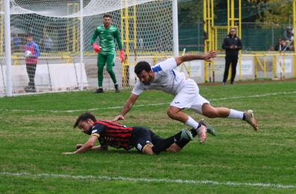 La ripresa, con il vento che cresce di intensità, si apre con una punizione di Santeramo, ma la palla sfila sopra la traversa. Le difficoltà sono le solite: il pallone non scorre, il gioco non decolla, le occasioni latitano. Ma al 14' Piazze recupera un pallone perso, Picchi chiama agli straordinari Giacobbe che è bravissimo a ripetersi su Riad, ma Bartolotta nei pressi insacca sulla ribattuta.
