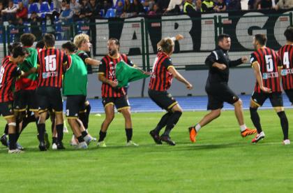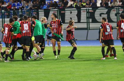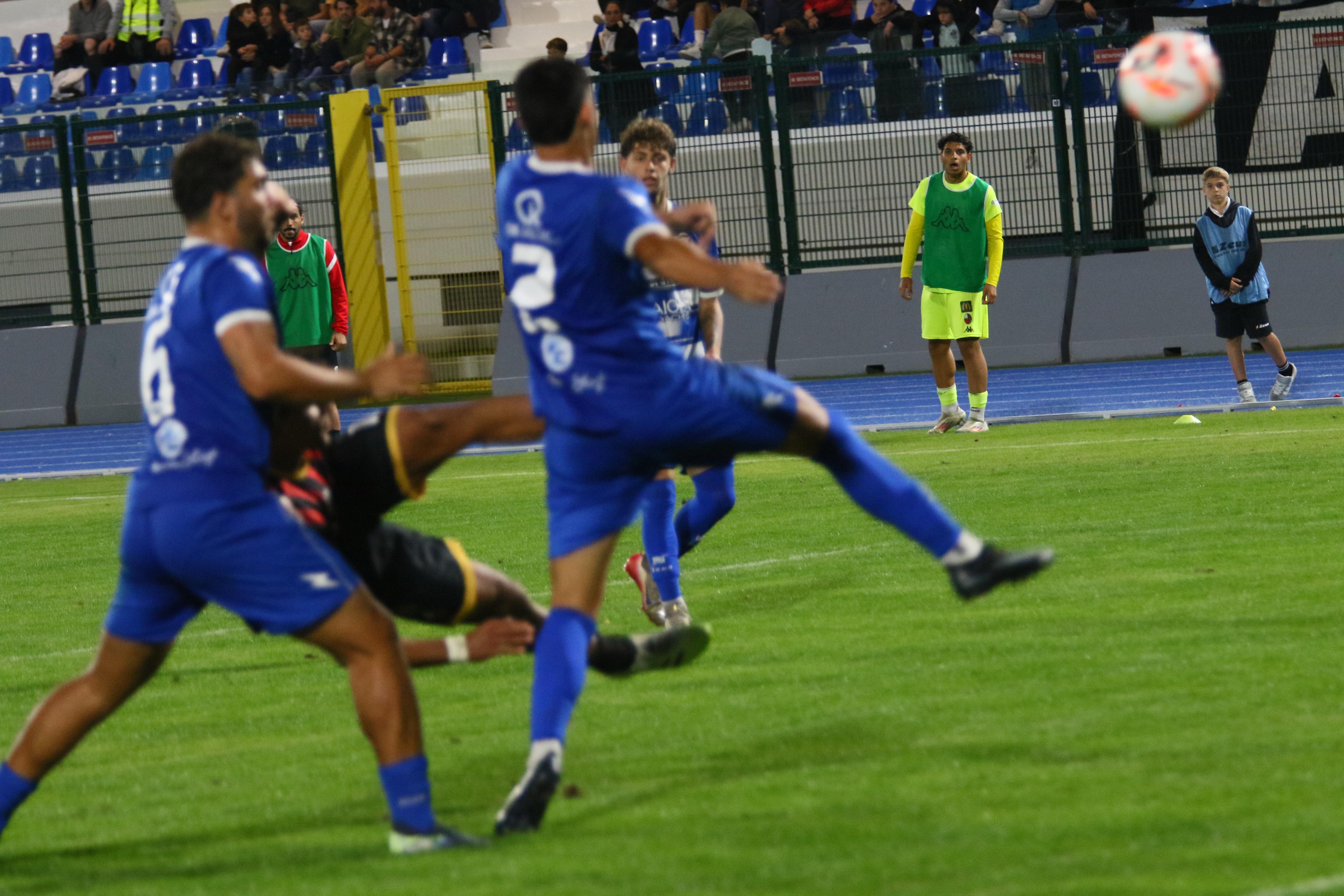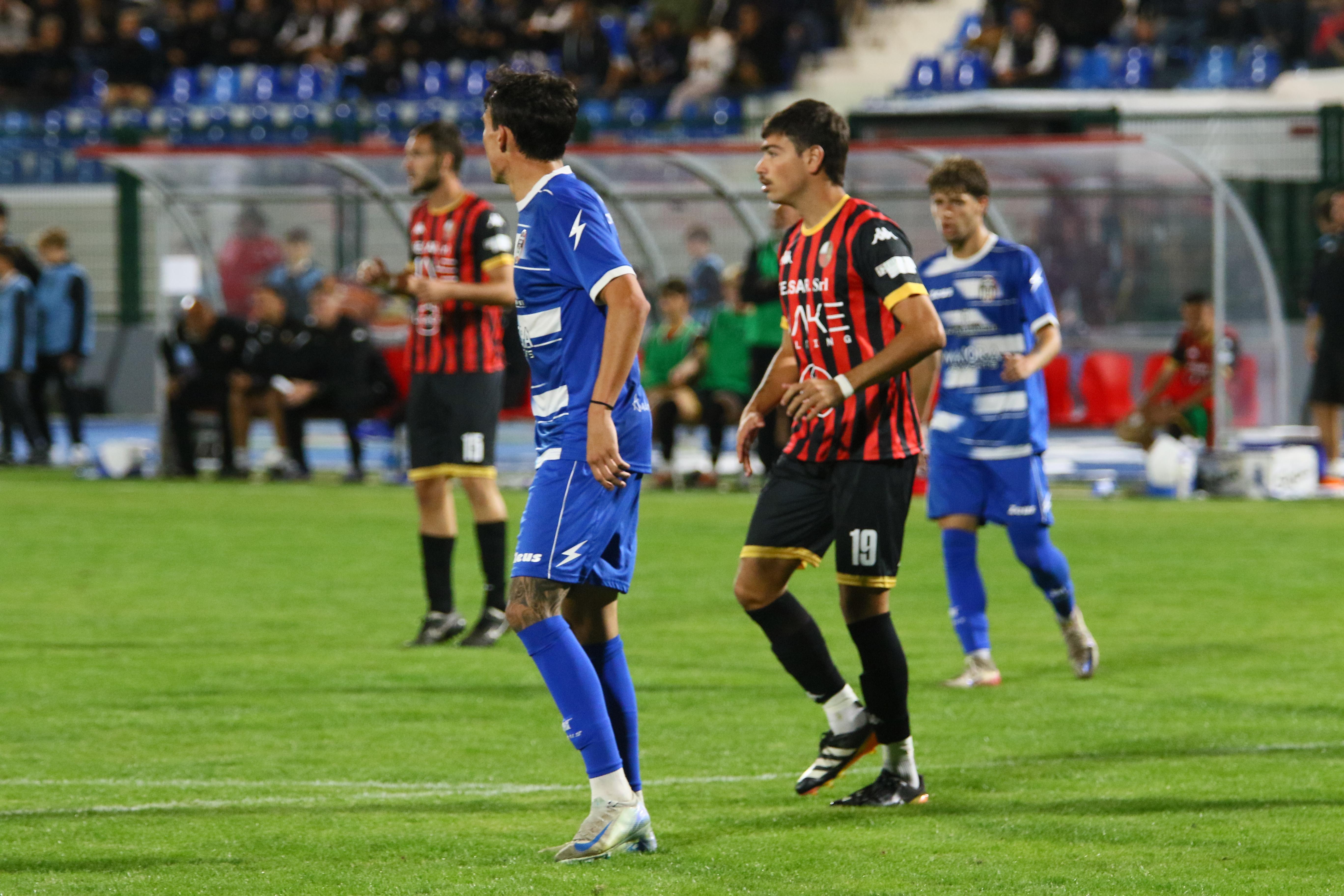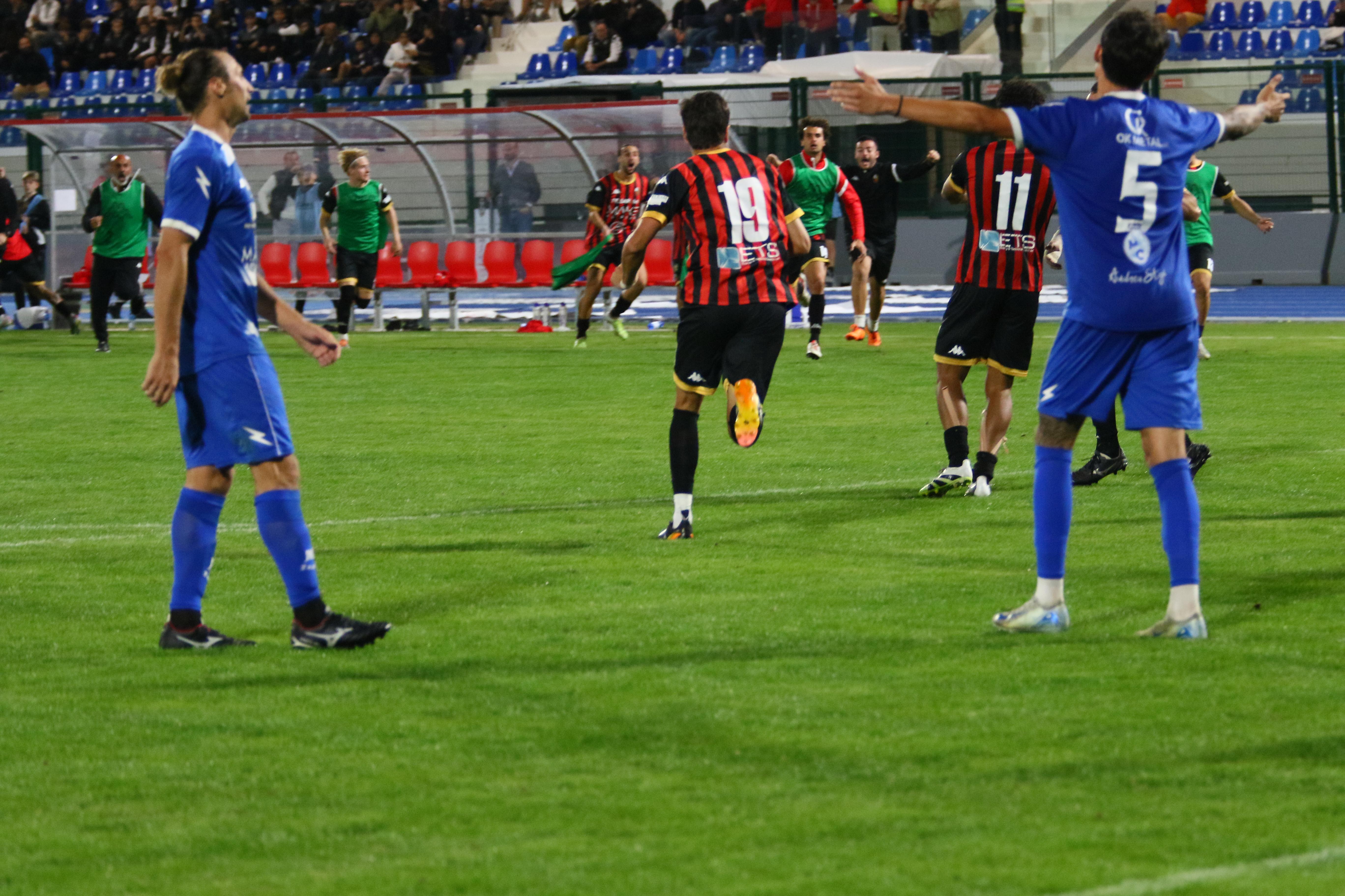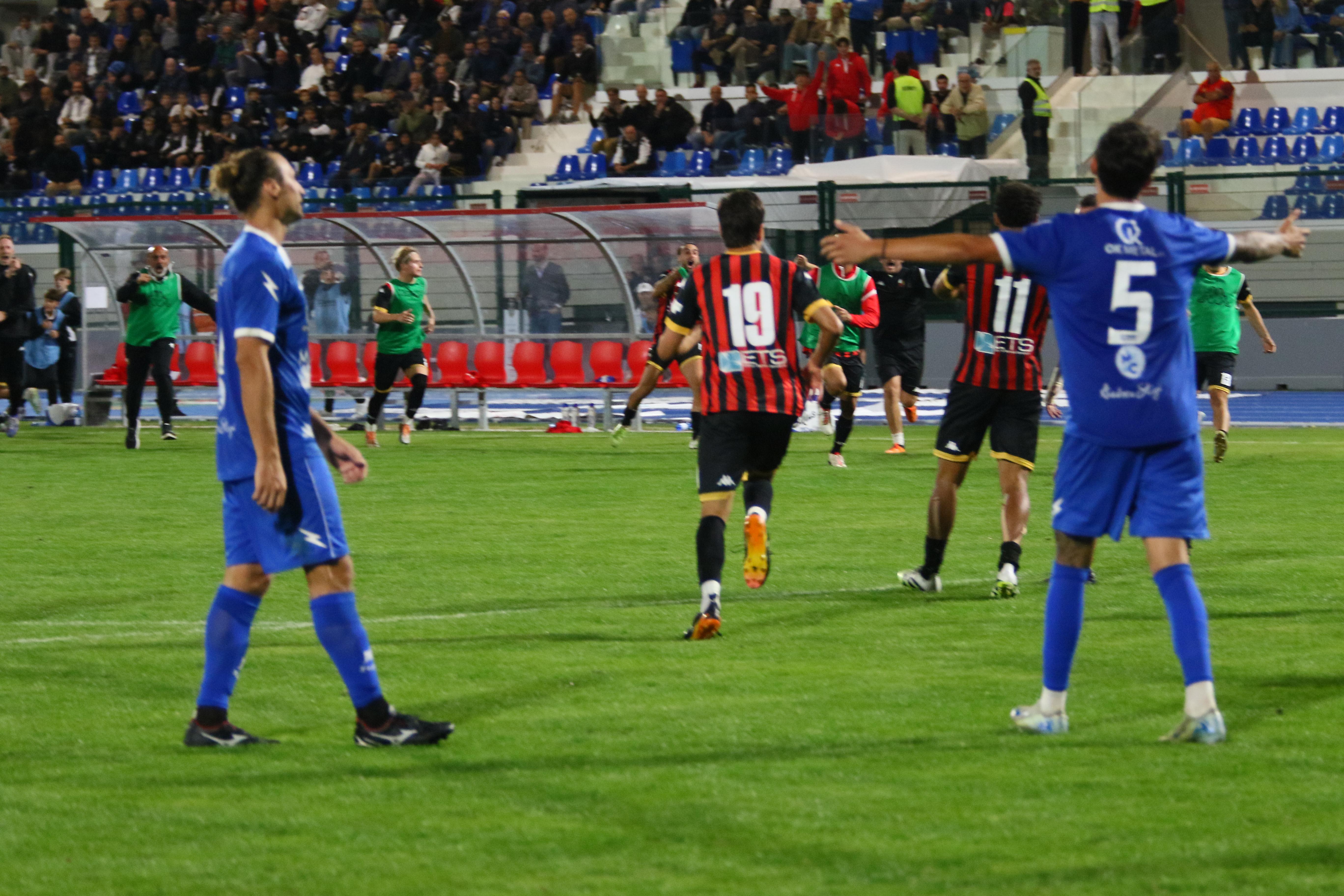 Un derby, più sentito nella città di mare che nel capoluogo, ma il cui fascino e storia si perdono nella notte dei tempi che mancava da oltre 13 anni. Tanta gente allo stadio ma solo di fede bianconera visto che la gara era vietata (incredibilmente non è ancora agibile il settore ospiti) ai tifosi rossoneri.Mister Pirozzi lancia Piazza in avanti affiancato da Caggianese e Riad, confermando Bartolotta a centrocampo dove trova spazio Palma.