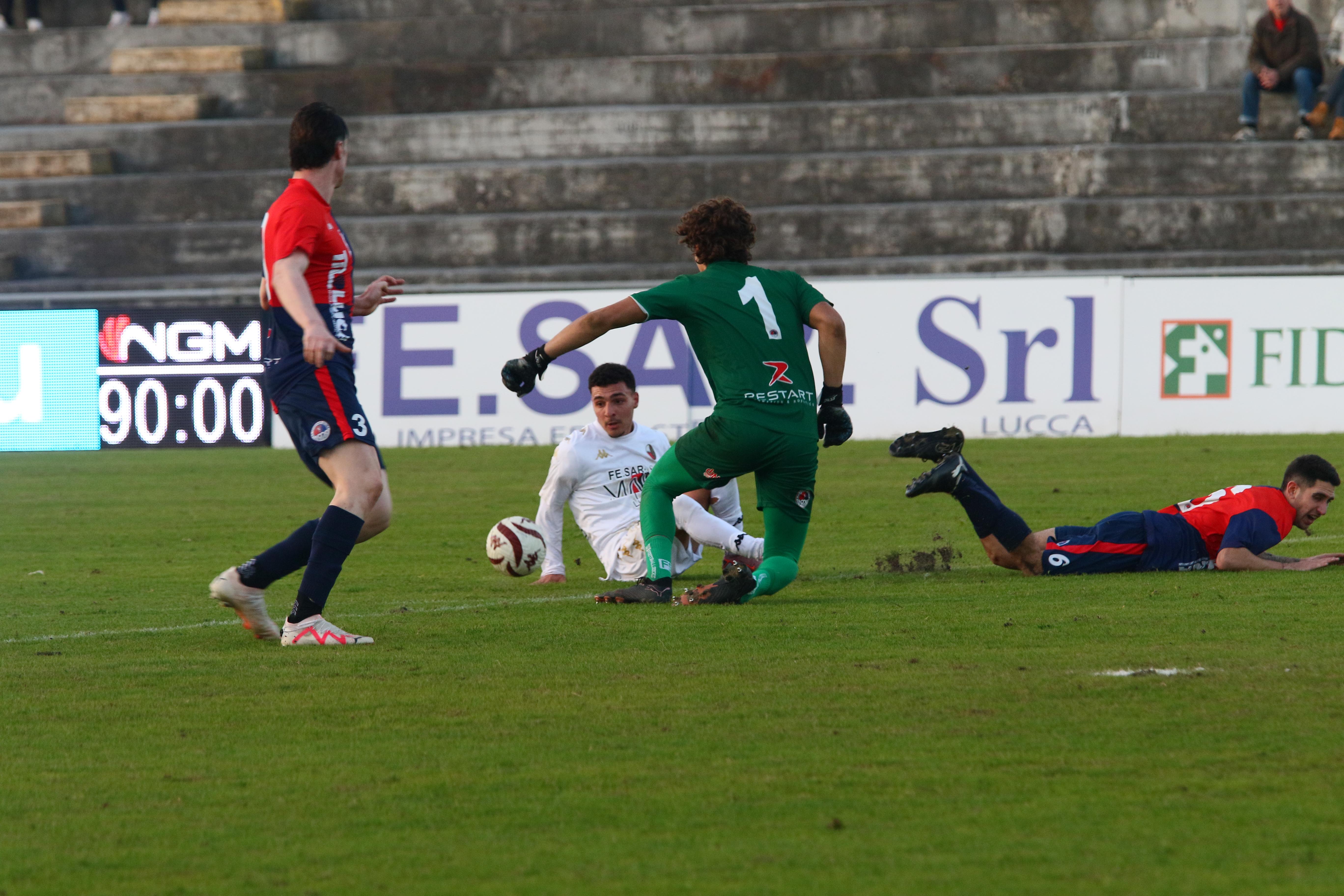 La Lucchese si aggiudica lo scontro diretto con il Viareggio grazie a una rete realizzata da Fedato nella ripresa. Dopo un primo tempo equilibrato con occasioni da entrambe le parti, i rossoneri salgono in cattedra, sbloccano il risultato e vanno più volte vicini al raddoppio. Ospiti vicini al pari nel recupero.