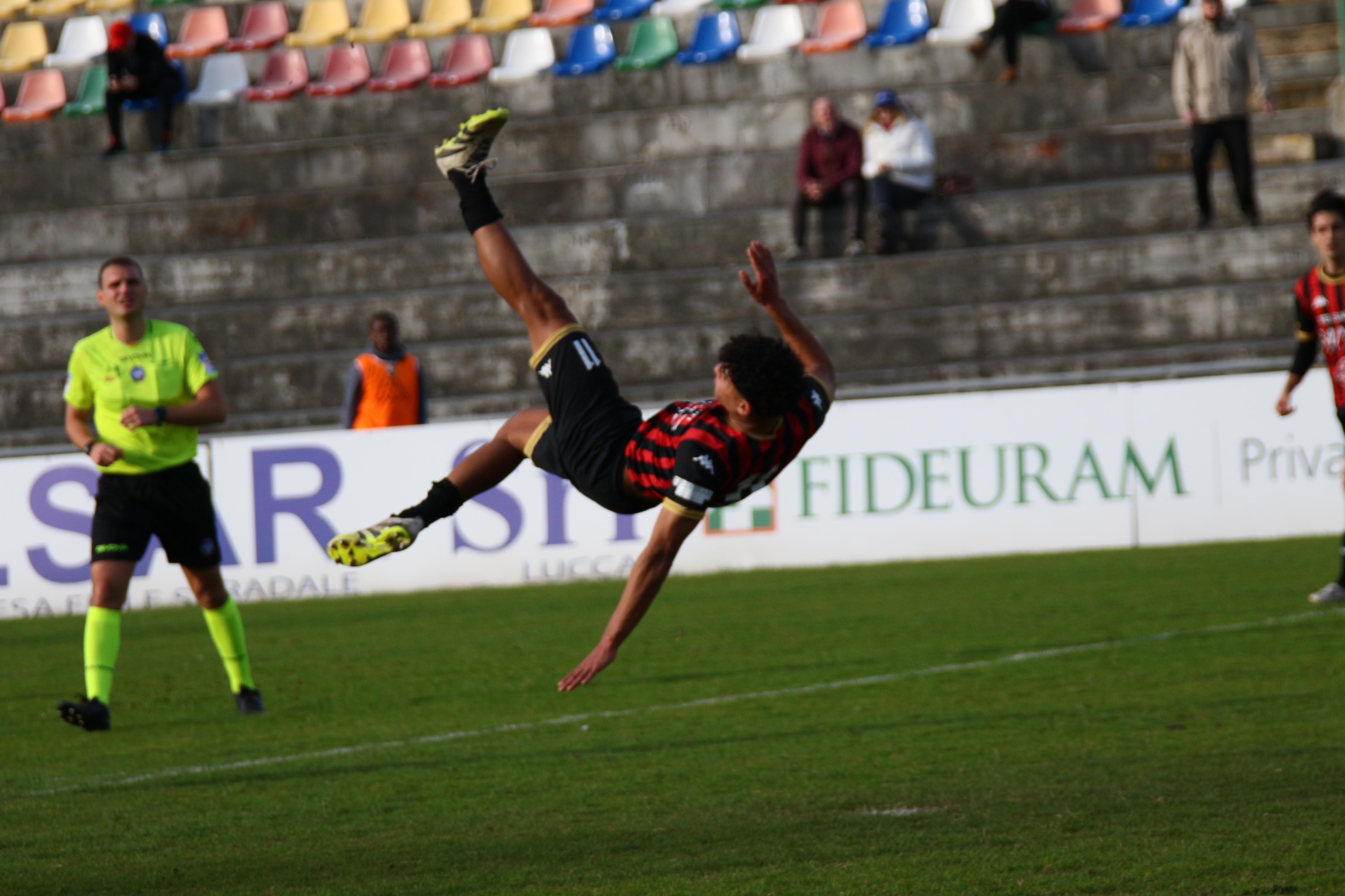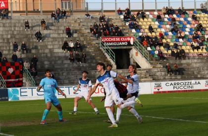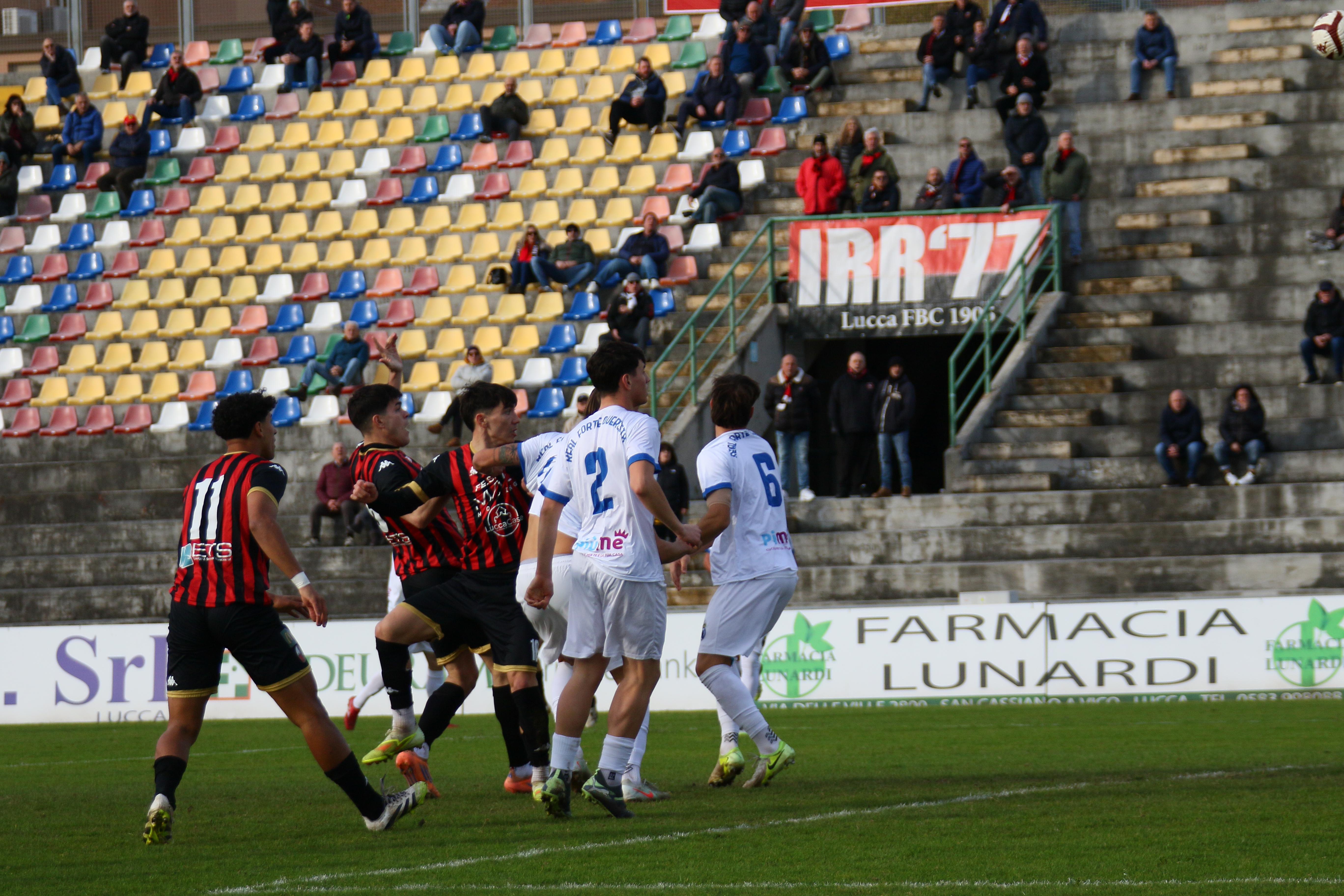 E a un minuto dalla fine Piazze centra una traversa con un gran tiro: Pastine è battuto ma la palla rimbalza fuori dalla porta. E c'è ancora da patire per qualche mezzo svarione. Ma nei tre minuti di recupero il risultato non cambia: la Lucchese vince e rimane prima, con Zenith e Viareggio che continuano la loro corsa.