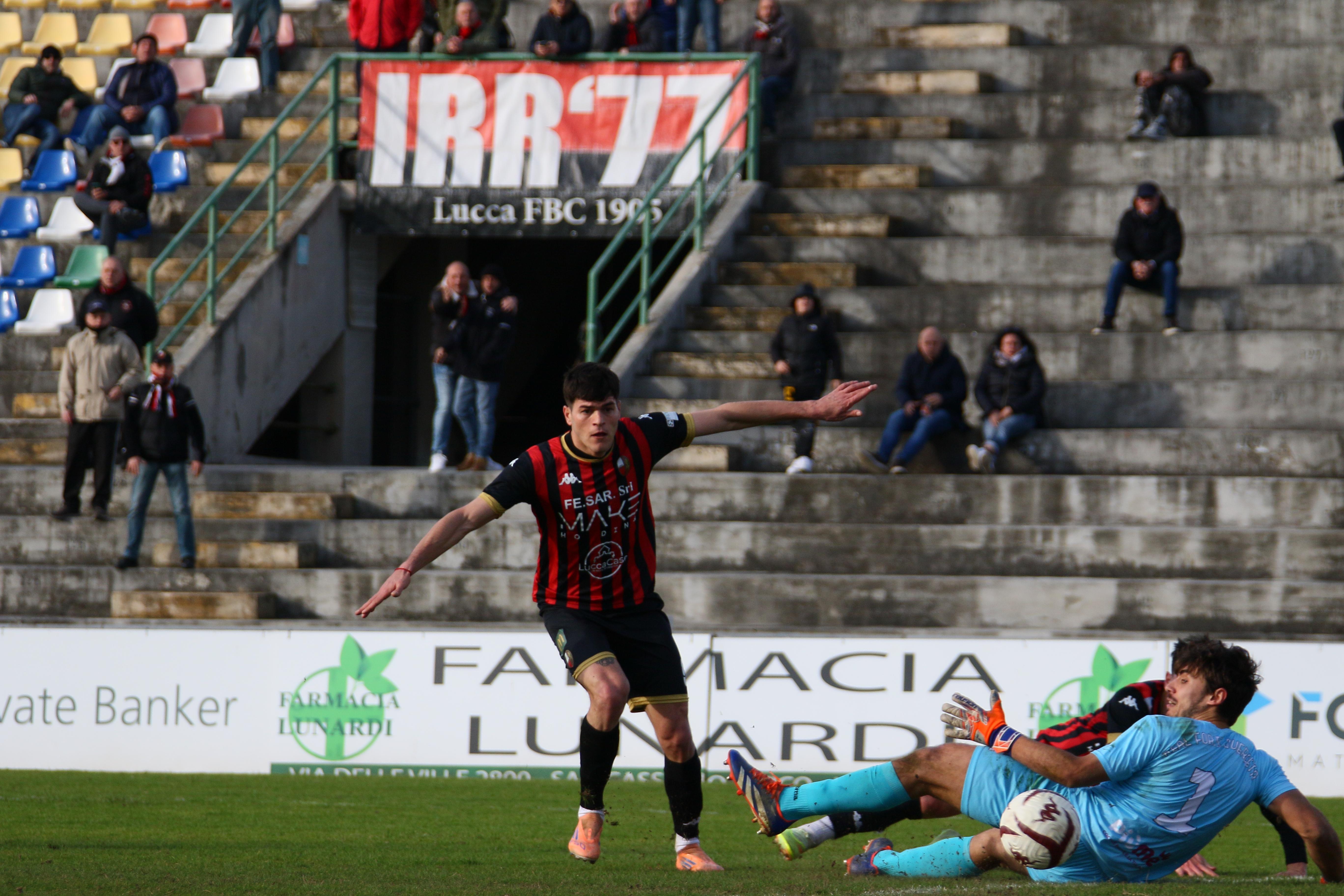 La Lucchese si aggiudica lo scontro diretto con il Viareggio grazie a una rete realizzata da Fedato nella ripresa. Dopo un primo tempo equilibrato con occasioni da entrambe le parti, i rossoneri salgono in cattedra, sbloccano il risultato e vanno più volte vicini al raddoppio. Ospiti vicini al pari nel recupero.