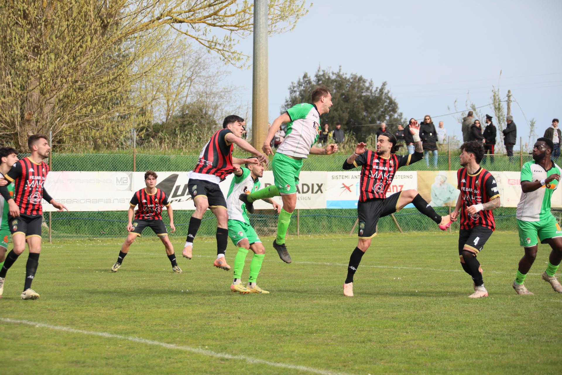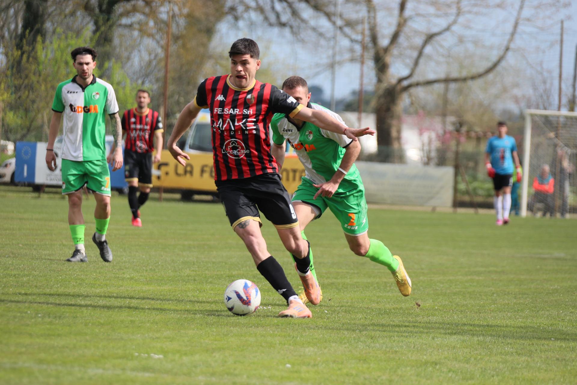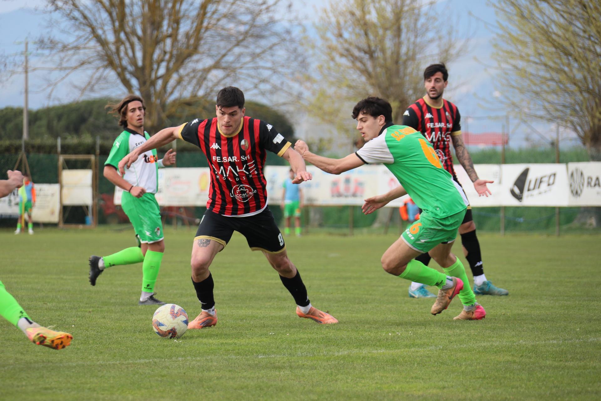 Di fronte a oltre 2000 spettatori, la Lucchese batte nei secondi finali di gara la Massese e porta a otto punti il vantaggio sulle seconde a sei giornate dalla fine. Decide Sansaro, entrato da poco, con un colpo di testa che può valere tantissimo. Commento, tabellino e foto