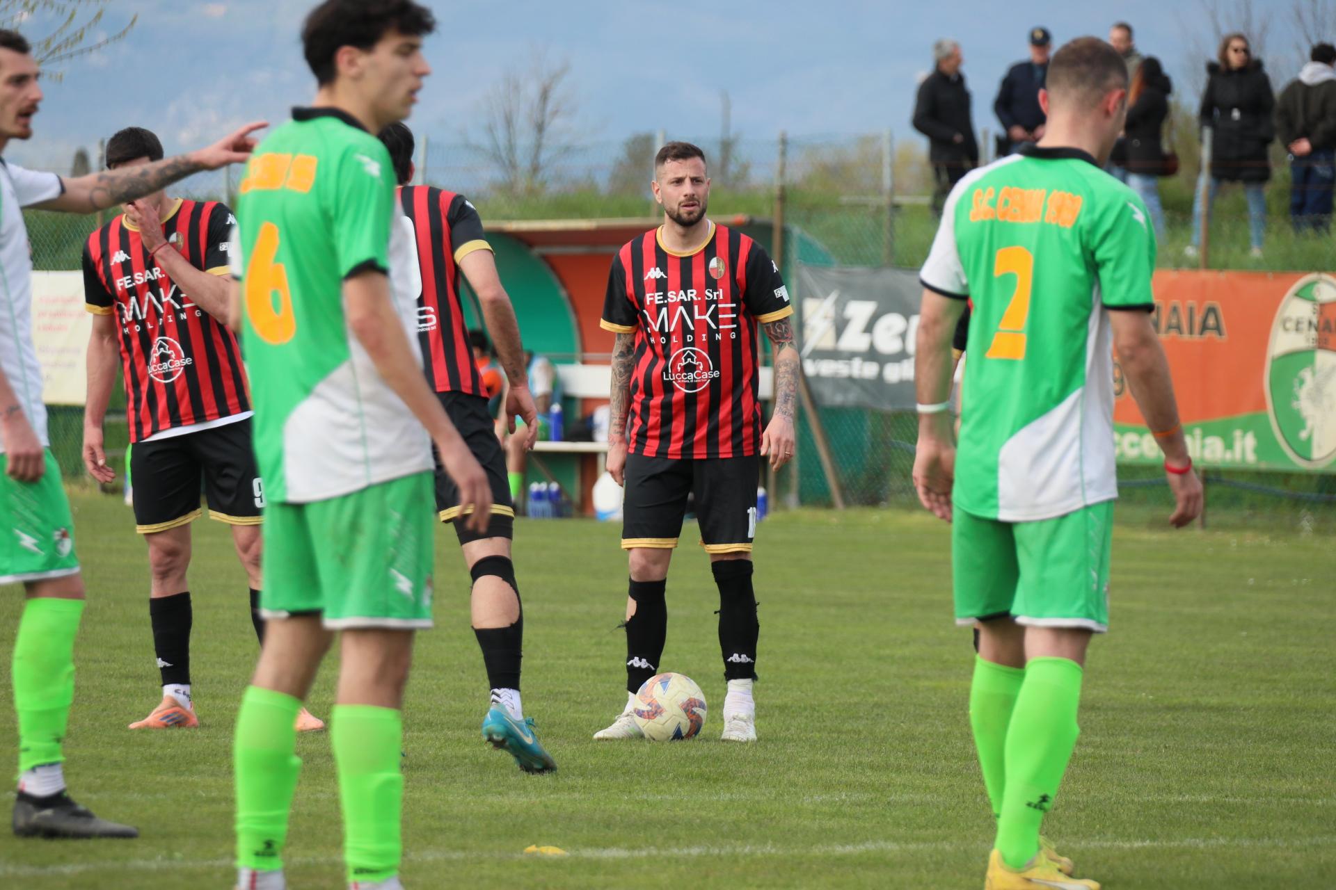Tutto rinviato. La Lucchese non riesce a sfruttare il pari casalingo della Zenith Prato e fa solo pari contro il Cenaia sul piccolo campo di Crespina. Alla fine è un 1-1 con rimpianti, visto che nel secondo tempo si è giocato a una porta, ma il gol, prima di tutto per una certa frenesia dei rossoneri, non arriva e le distanze restano invariate: otto punti ora a tre giornate dal termine. Davvero a un passo dal salto di categoria che non era certo così scontato dopo l'ennesima ripartenza dall'inferno di un fallimento.