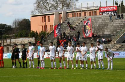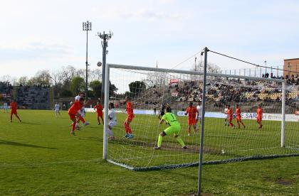 L'avvio è alla camomilla, per il primo sussulto si deve attendere il 12' quando Bartolotta conclude alto una bella azione in velocità dei rossoneri, anche oggi in maglia bianca. E' al 19' che si genera la prima vera occasione: Russo, appostato sul secondo palo, colpisce a botta sicura e Lotti salva quasi sulla linea. Ma è una fiammata, per rivedere un vera e propria occasione si deve attendere il recupero quando Salvadori, a centroarea, tira in bocca Milan. Un primo tempo con prevalenza dei padroni di casa, in grado di sviluppare anche qualche buona trama, ma davvero avaro di emozioni.