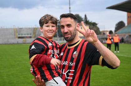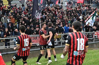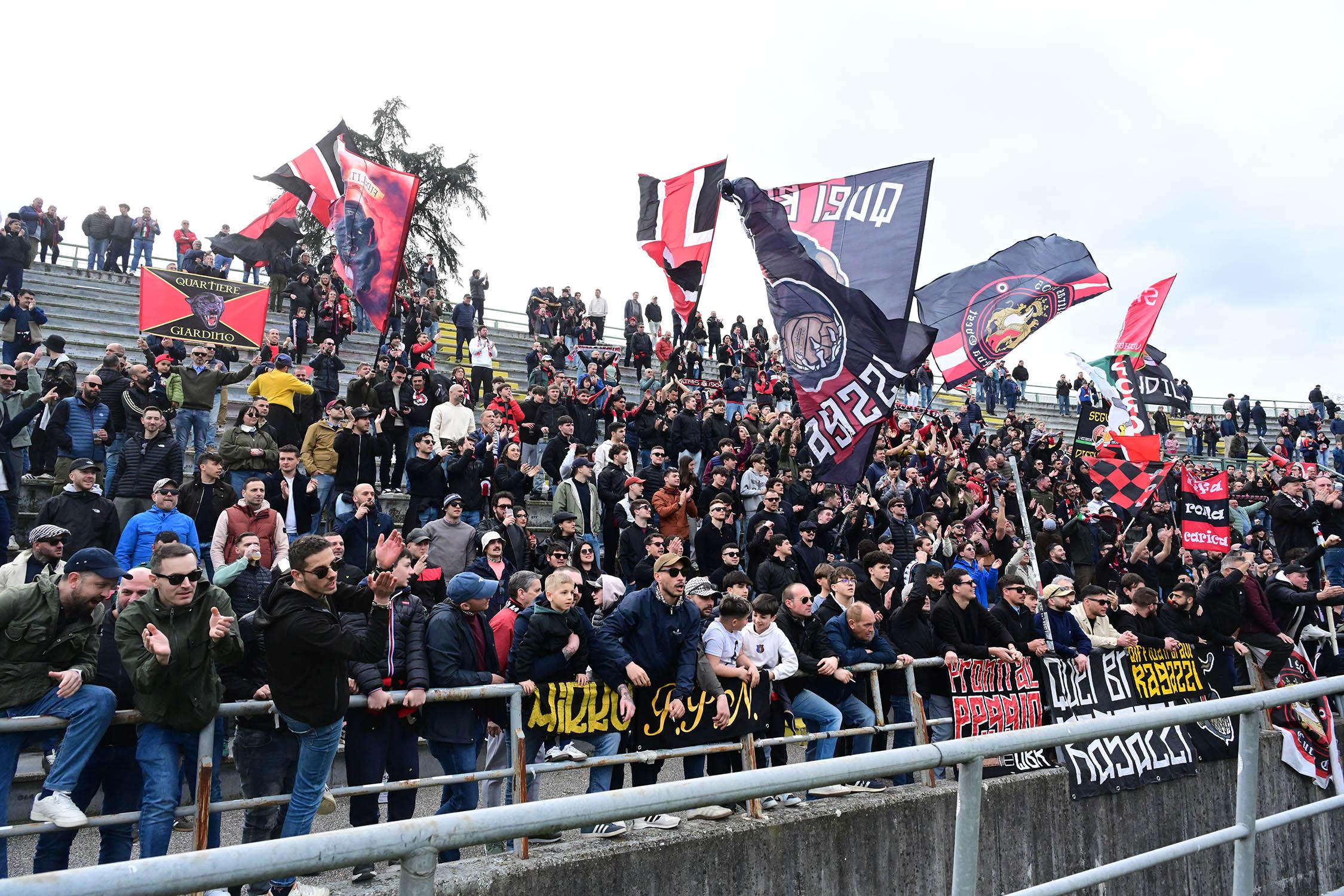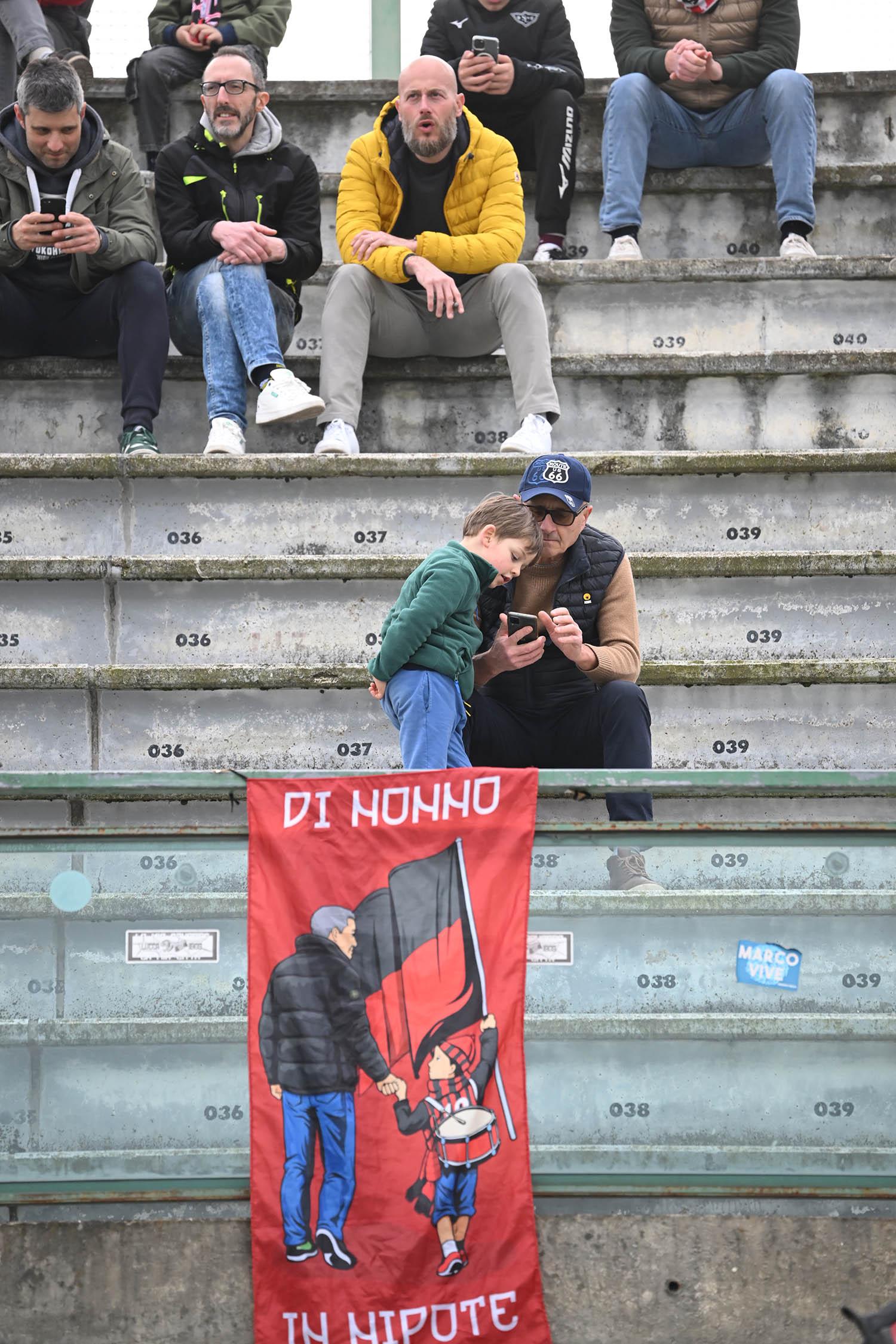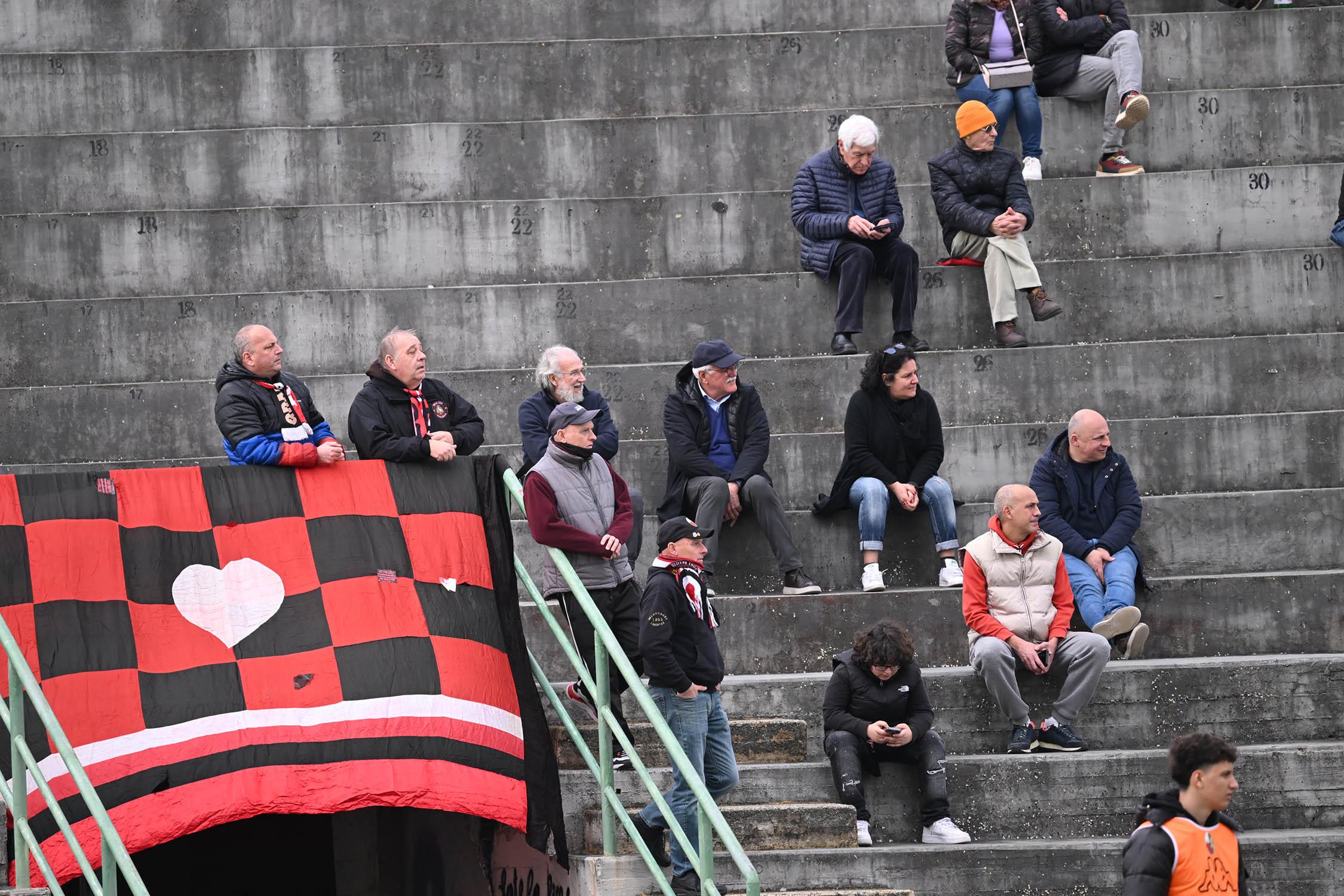 Stadio Porta Elisa più pieno del solito con buona presenza di tifosi ospiti, accolti da quelli di casa con una coreografia rossonera e bianconera in omaggio allo storico gemellaggio, Mister Pirozzi ritrova Riad sul fronte offensivo, un'assenza che si è avvertita eccome, mentre in difesa scommette su Lorenzini, preferito a Tosi.