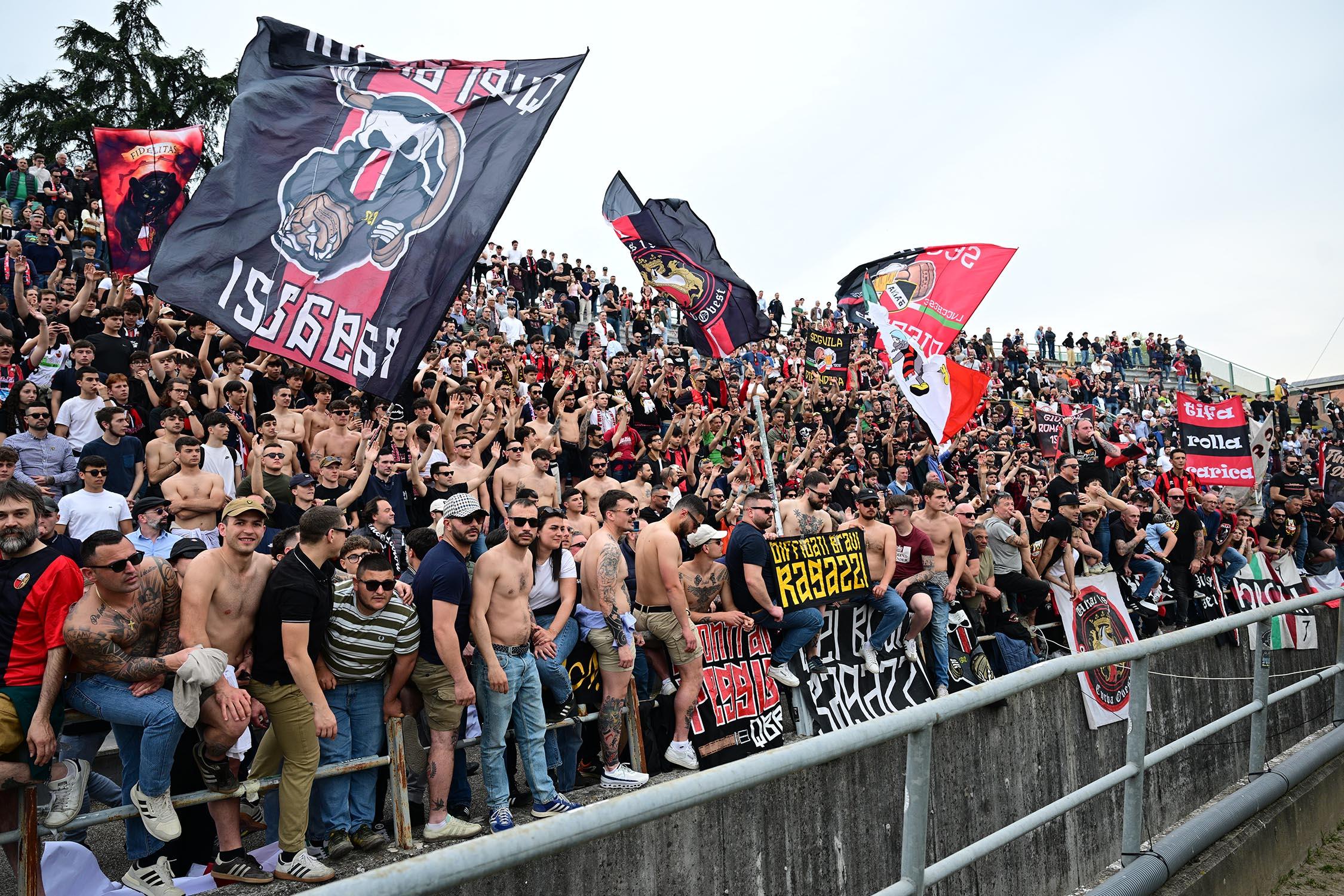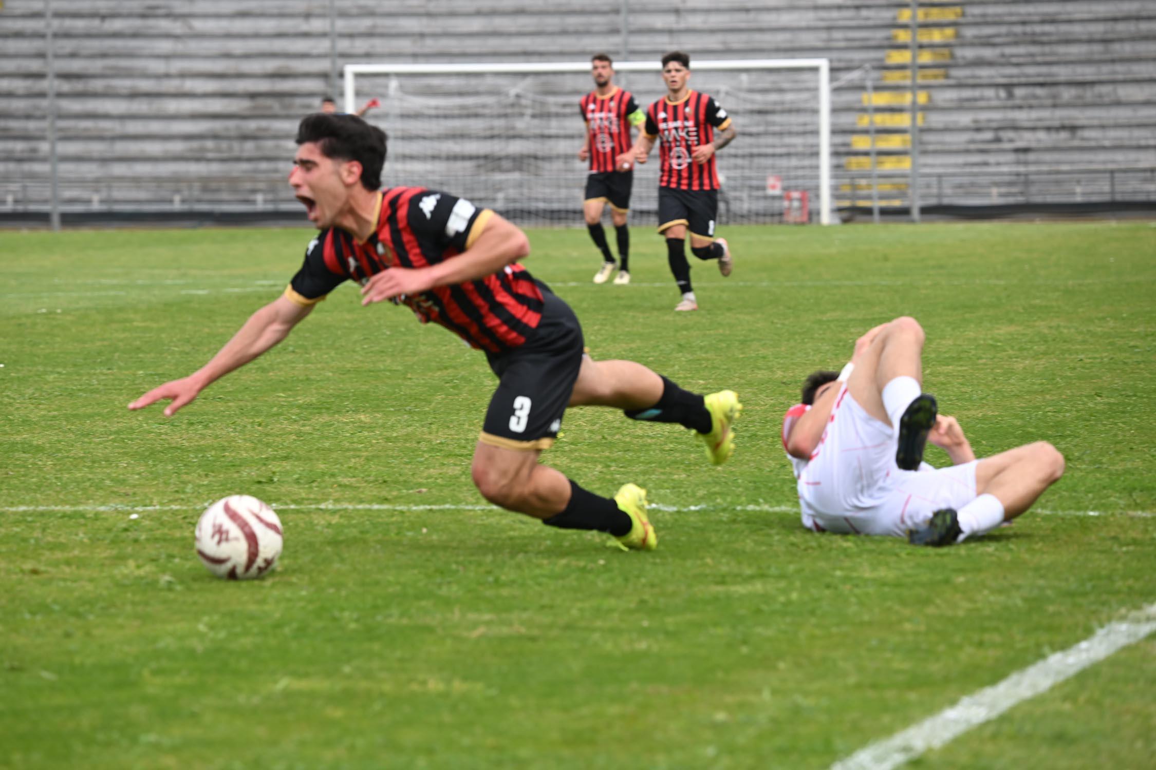 Mister Pirozzi dà fiducia a coloro che ha maggiormente impiegato, a partire dai due esterni di difesa Xeka e Lorenzini, a centrocampo Del Rosso è preferito a Russo, mentre in attacco con Riad ancora non al meglio la maglia da titolare resta sulle spalle di Piazze. In un catino carico di entusiasmo e di 3500 persone, numeri impressionanti per il contesto, i rossoneri partono bene e vanno in gol con Piazze al 2': per il guardalinee è in fuorigioco. Dubbio. Ma i rossoneri insistono e mettono subito alle corde gli ospiti: al 3' Piazze conclude fuori di poco, al 6' Del Rosso impegna Rizzato, la pressione è continua. Al 12' ci prova Picchi da fuori, palla che va sopra la traversa. E' l'anticipo del vantaggio: Lorenzini viene steso in area: calcio di rigore e cartellino per Regoli. Dal dischetto trasforma Fedato, con freddezza che corre verso una Curva Ovest che ruggisce. Siamo al 13'. La reazione degli ospiti è affidata a un tiro di Remedi, con Milan che respinge.