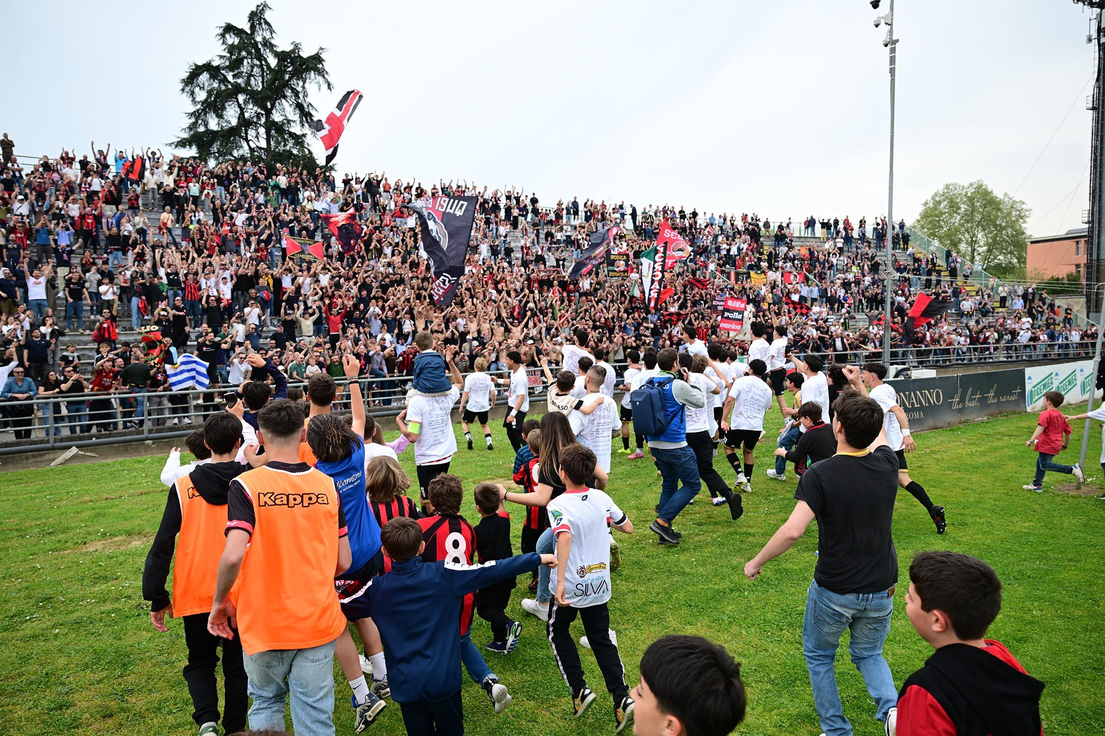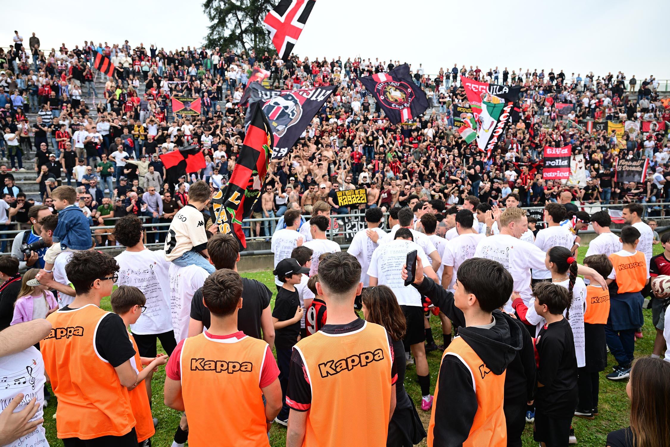 La ripresa inizia con i soliti 22 in campo, sugli spalti più forte di tutti è l'attesa della fine, del triplice fischio. In campo i rossoneri lasciano qualche metro in più agli ospiti. E Remedi costringe alla paratona Milan subito al 4'; sul contropiede innescatosi Camilli conclude fuori. I minuti passano, il risultato rimane in bilico, manca il colpo del ko. Regoli si autoinfligge un cartellino giallo (da ammonito) e saluta la compagnia: siamo all'11. La strada sembra ancor più in discesa, ma gli ospiti, complice un arretramento dei rossoneri che vanno ora a ritmi leggermente ridotti, non mollano. In panchina si scaldano un po' tutti. Al 19' Camilli parte ancora una volta in progressione ma spara sul portiere in uscita. Il sigillo lo mette invece Lorenzini, uno che in silenzio ha costituito uno dei perni della squadra: l'azione la imposta Fedato, cross sul secondo palo, Piazze, un ragazzo che fa della generosità la sua immagine, appoggia di testa (e non tira) a Lorenzini che da due passi fa centro. Per il Porta Elisa è il momento tanto atteso. E' la cristallizzazione della vittoria. Il resto è solo accademia e il giusto ingresso di Russo, Ragghianti, Palo e Tosi. Si può fare festa e iniziare a pensare al futuro. Rinati ancora una volta dalle cenere, come recita una striscione esposto in curva a fine gara. La categoria conta relativamente, l'emozione c'è tutta.