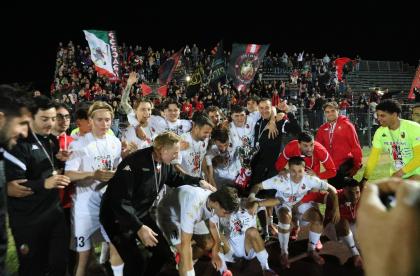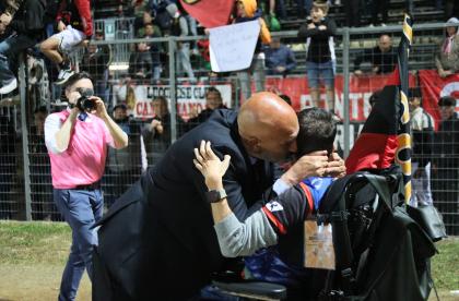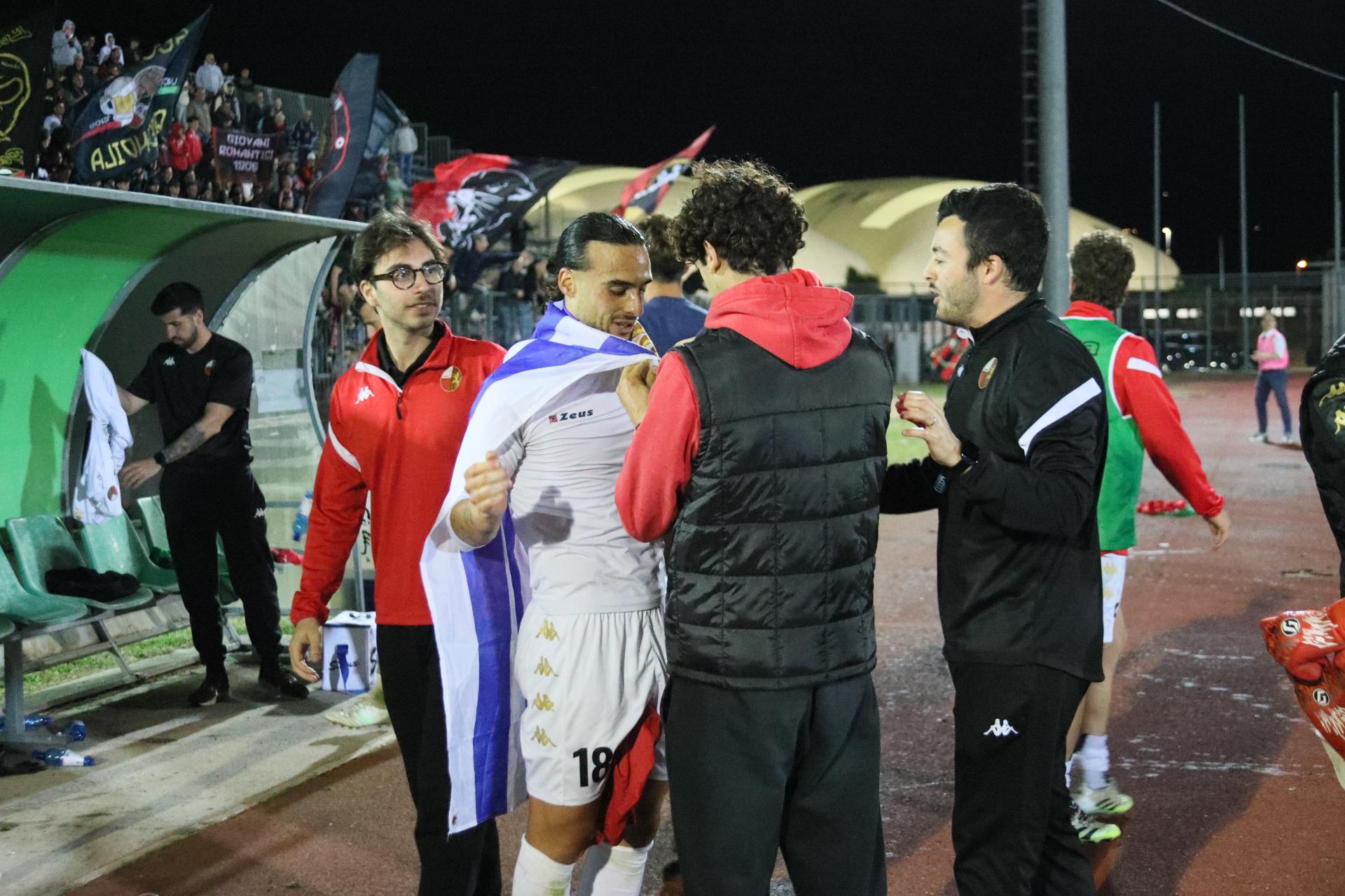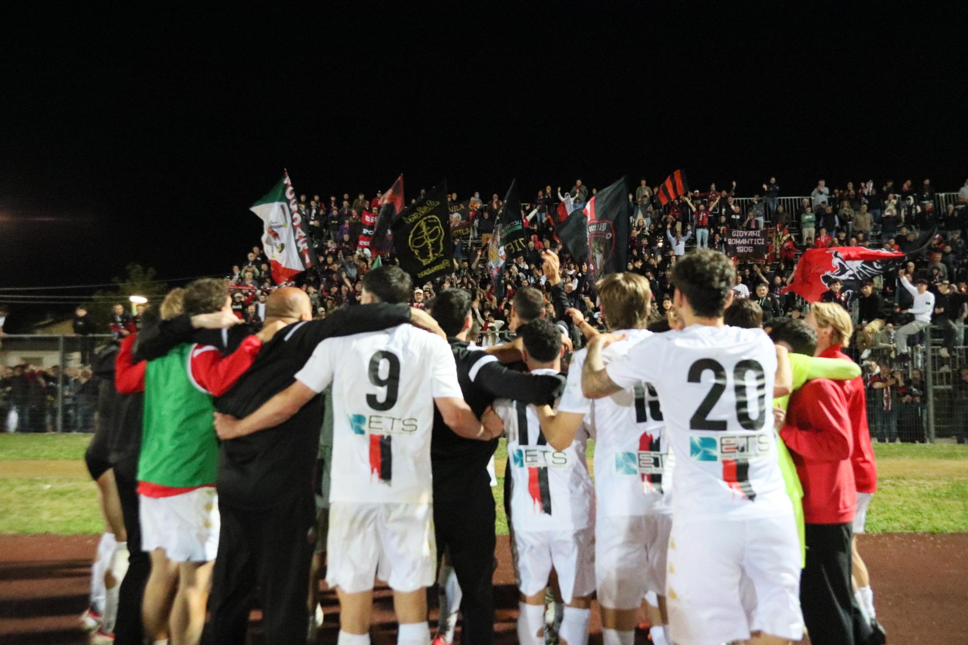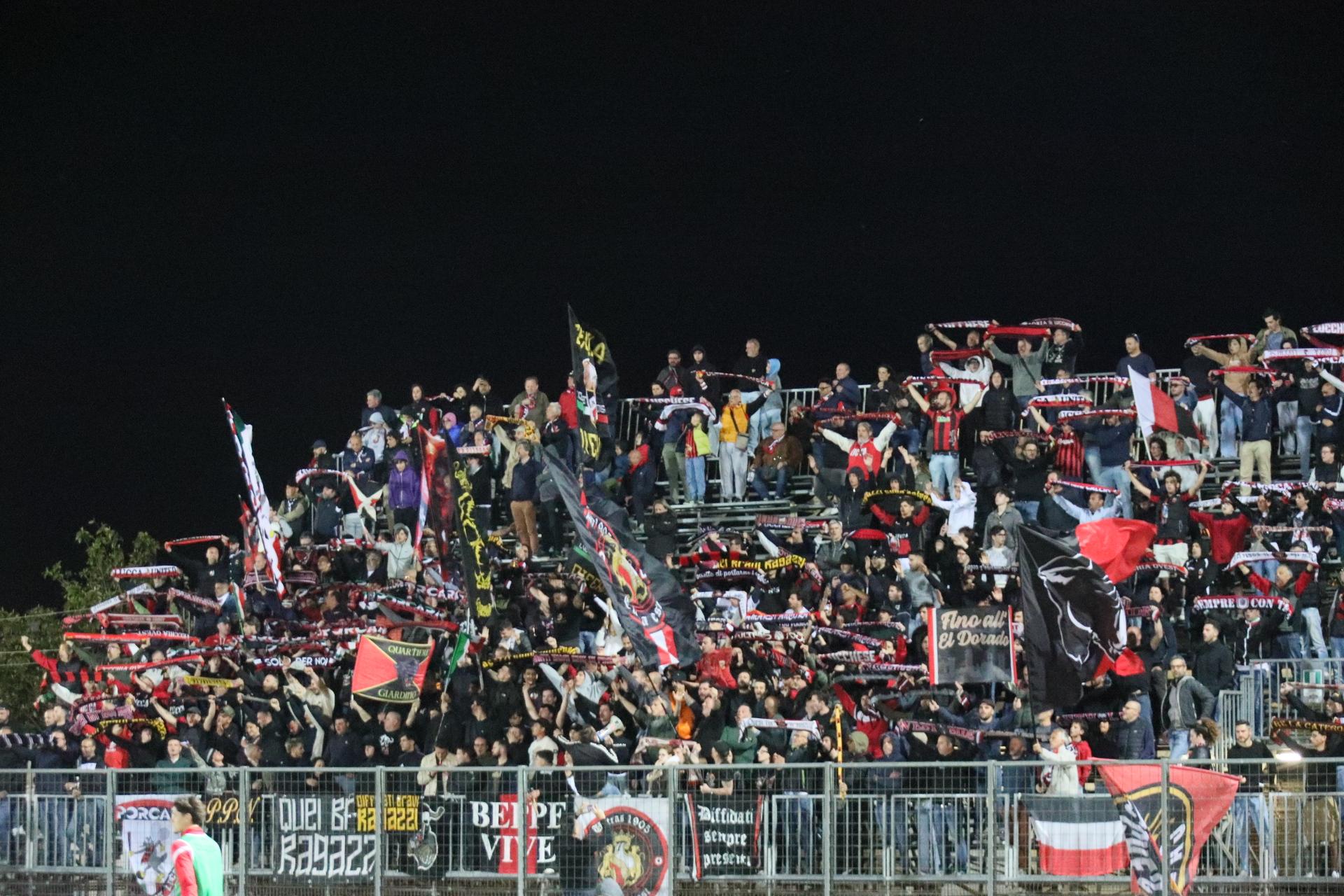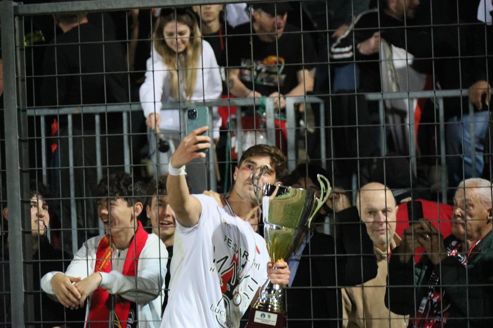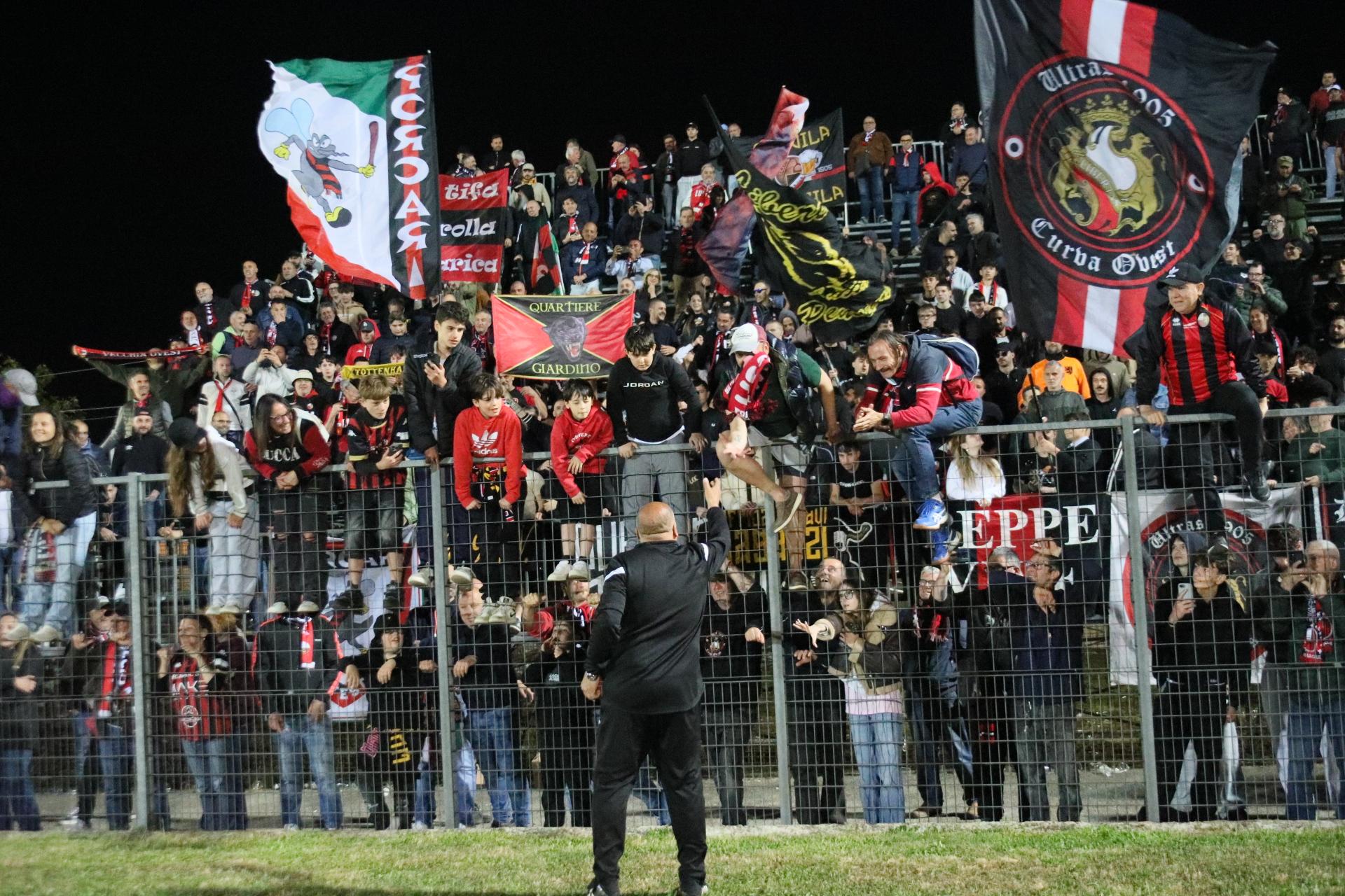 Le sostituzioni scuotono i rossoneri che creano occasioni con Lorenzini e Bartolotta, ma la prima conclusione va fuori di poco, la seconda è bravo Dainelli ad opporsi. Ma non può nulla al 27' quando Santeramo su punizione dal limite leva le ragnatele dall'angolo della porta. Esplode il settore dei tifosi rossoneri. E dieci minuti dopo Fedato gli fa piombare un altro pallone invitantissimo, ma il capitano conclude fuori. La Lucchese è ormai tornata a comandare con gli avversari che si ranicchiano in area. Gli ultimi minuti sono in controllo con la Rondinella che non riesce ad andare oltre qualche traversone. Può bastare: la Lucchese vince con pieno merito, e corona nel migliore dei modi una stagione da incorniciare. Bravi tutti.
