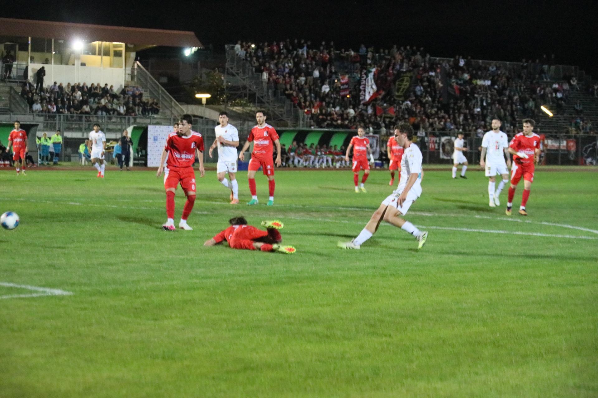 La botta, in casa Rondinella, si fa sentire: al 32' Riad prova il tris dal limite ma il tiro è ribattuto. La prima occasione per le rondinelle arriva al 35' con Polo che a centroarea non riesce a coordinarsi. Il gol che riapre la partita arriva al 41' con Saccardi bravo a incrociare in area con la difesa rossonera scoperta sul settore sinistro. E i giochi si riaprono improvvisamente. L'intervallo è l'occasione per riordinare le idee.
