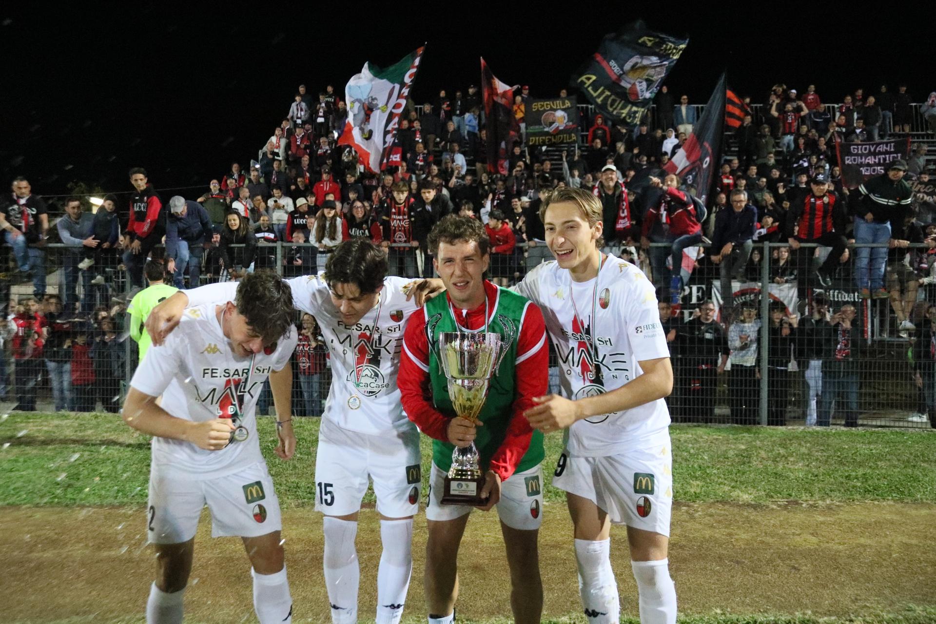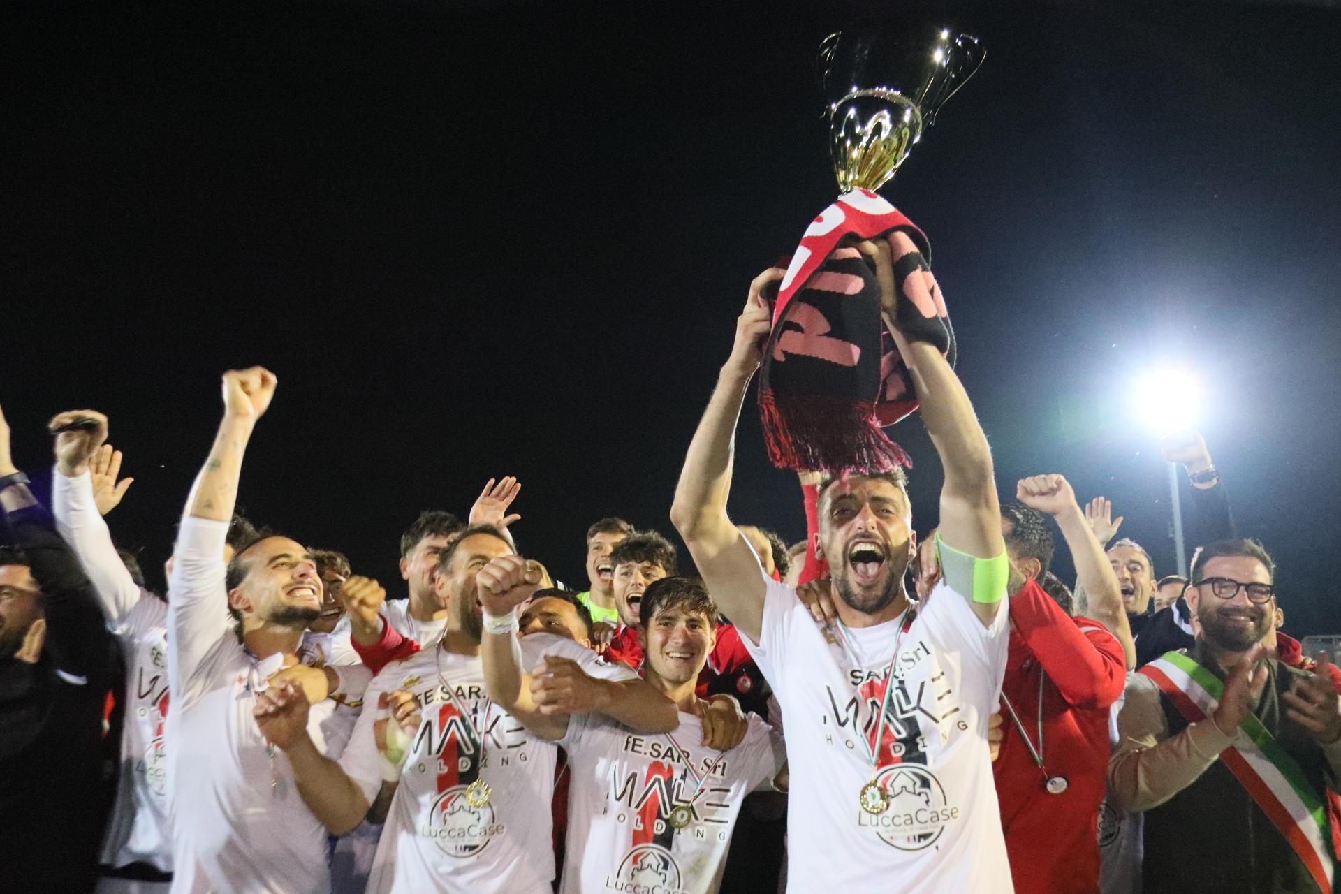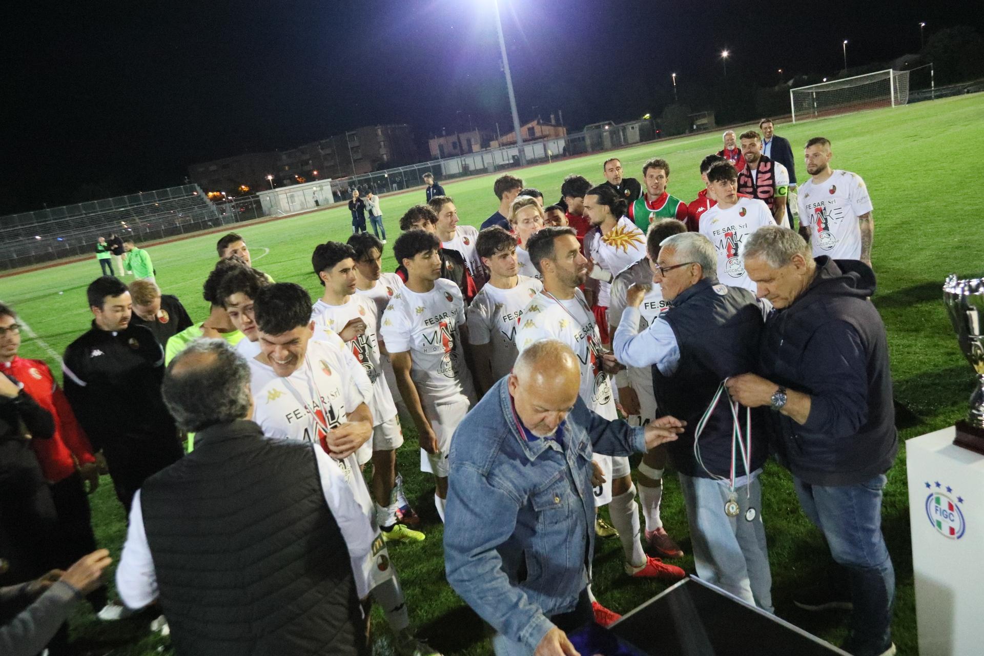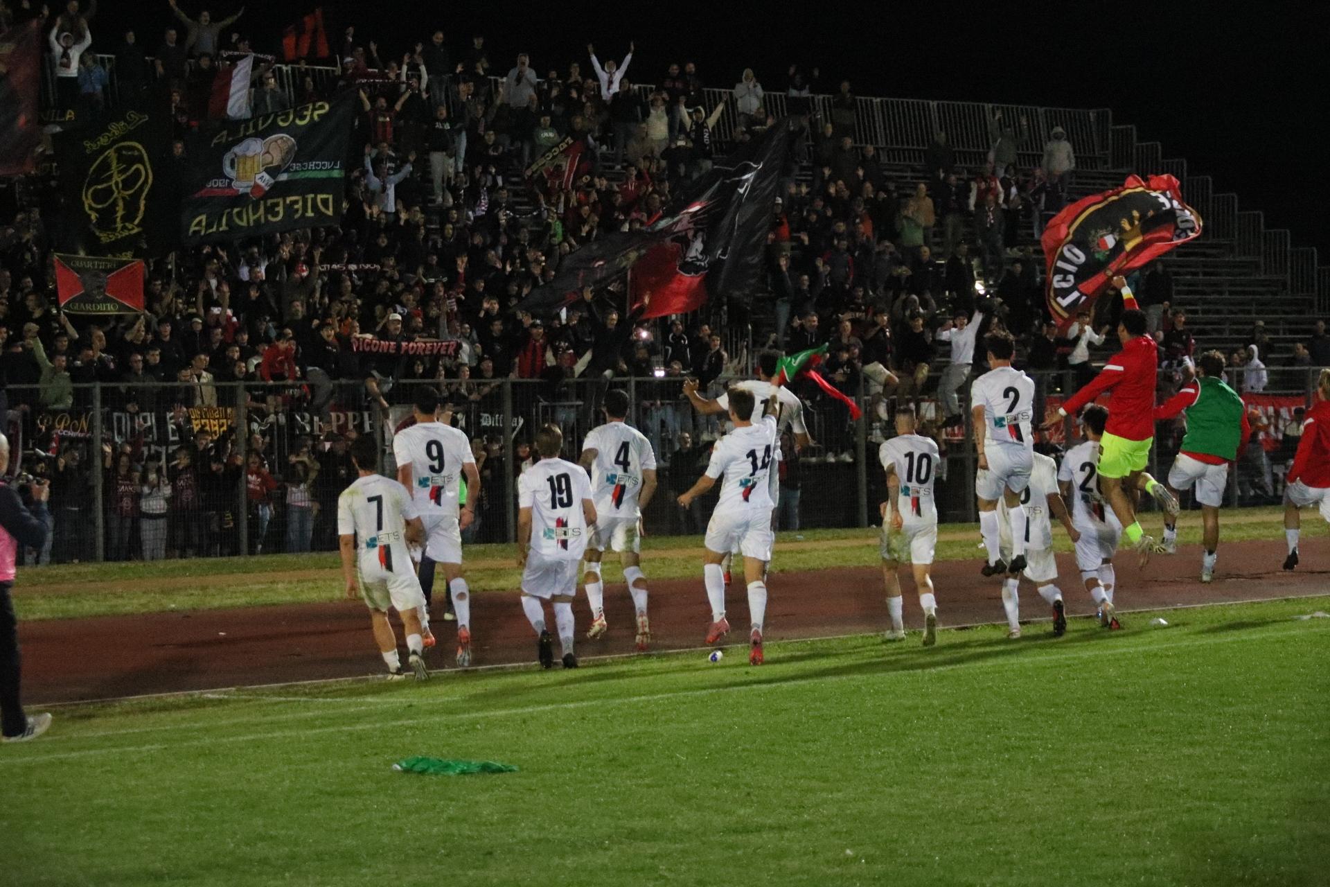 La Lucchese vince 2-0 contro il Perignano e centra la promozione in Serie D con due giornate di anticipo. Sblocca nel primo tempo Fedato su rigore, nella ripresa, Lorenzini mette il risultato al sicuro. Porta Elisa con 3500 spettatori: commento, tabellino e foto