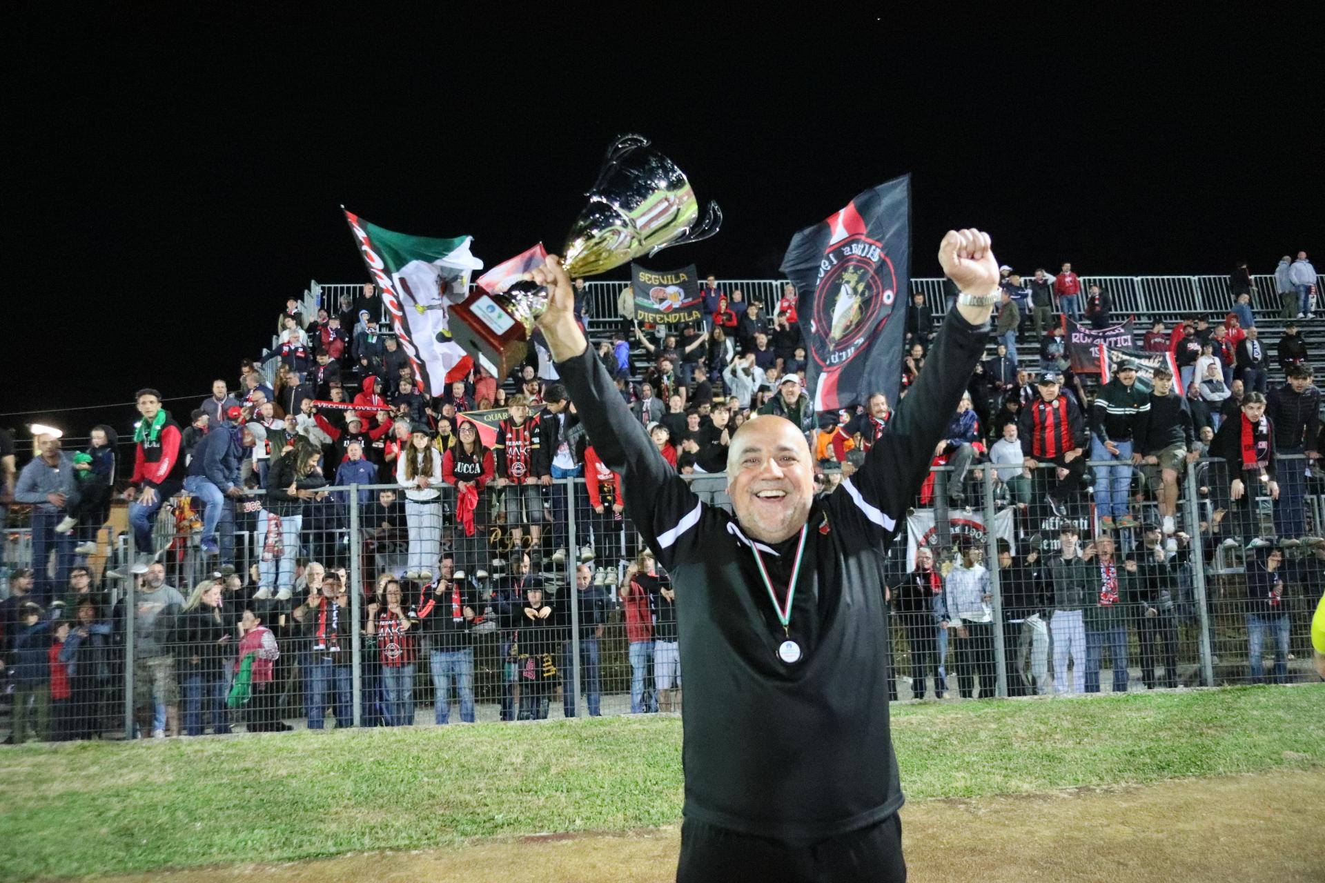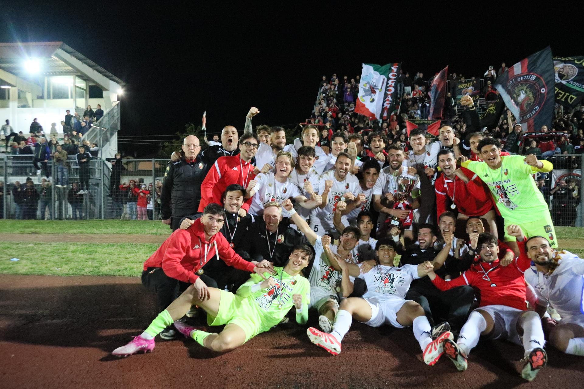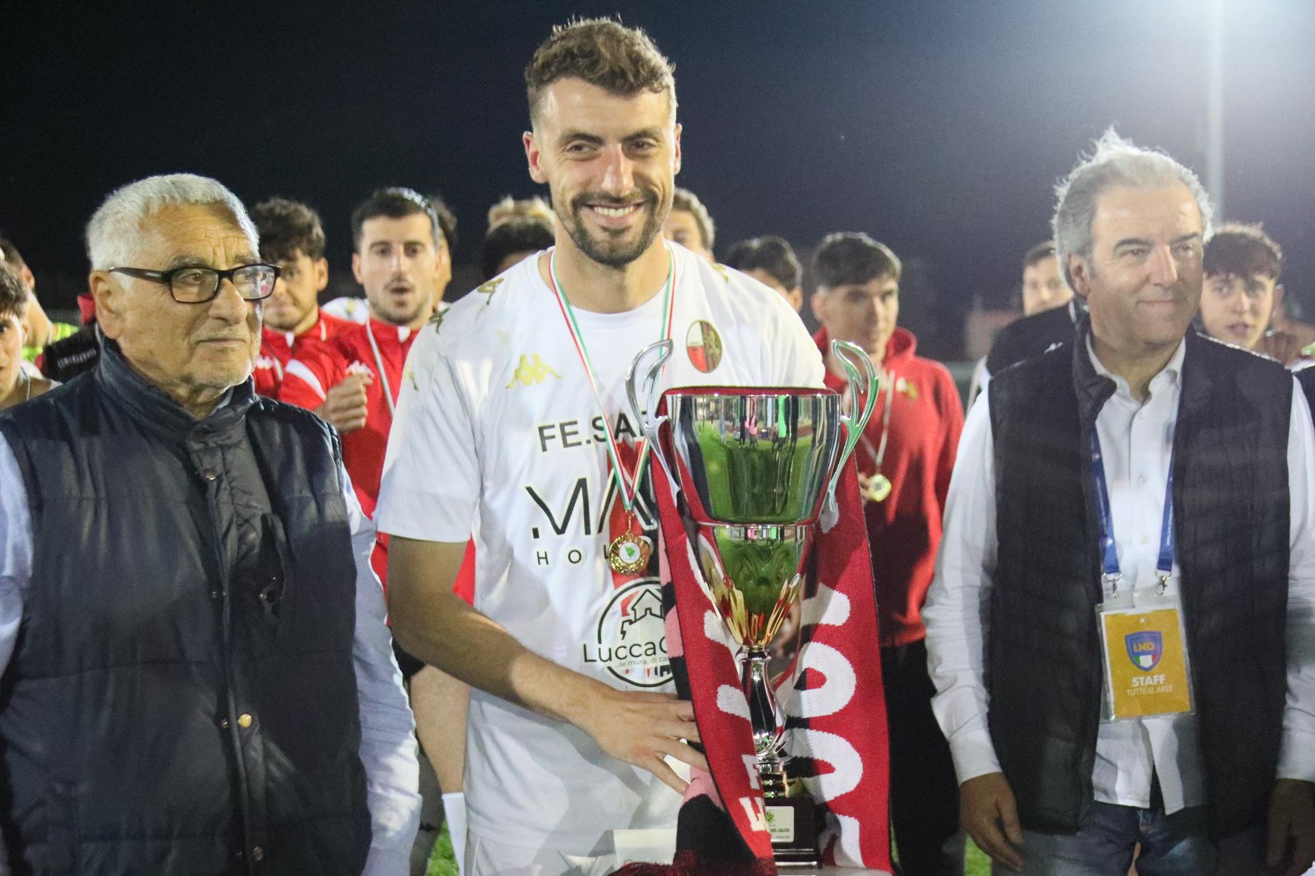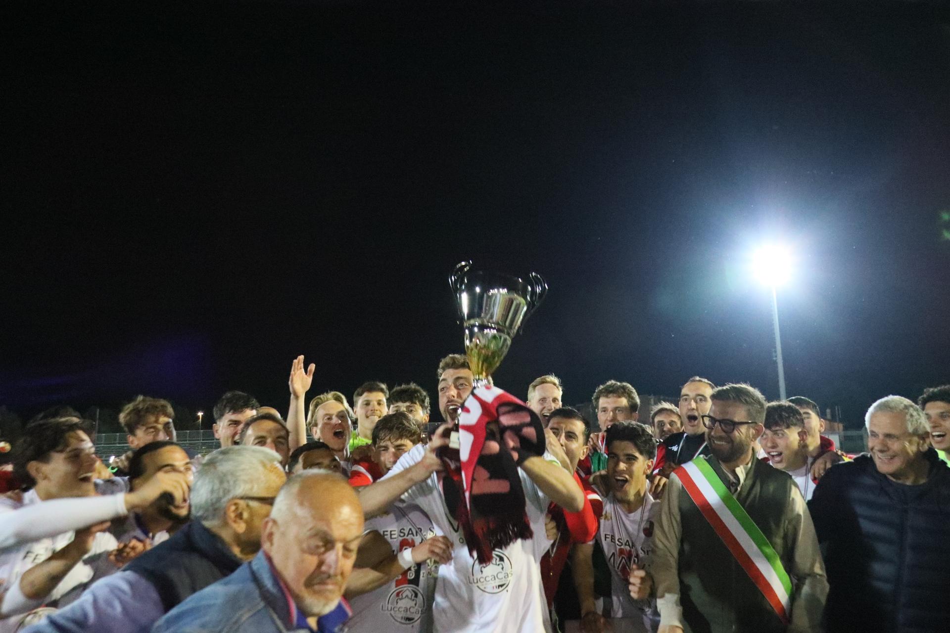 La Lucchese vince 2-0 contro il Perignano e centra la promozione in Serie D con due giornate di anticipo. Sblocca nel primo tempo Fedato su rigore, nella ripresa, Lorenzini mette il risultato al sicuro. Porta Elisa con 3500 spettatori: commento, tabellino e foto