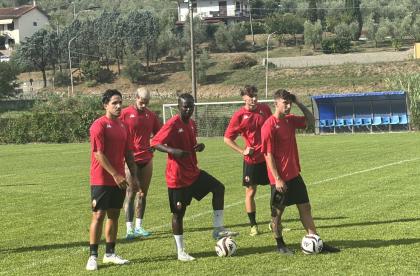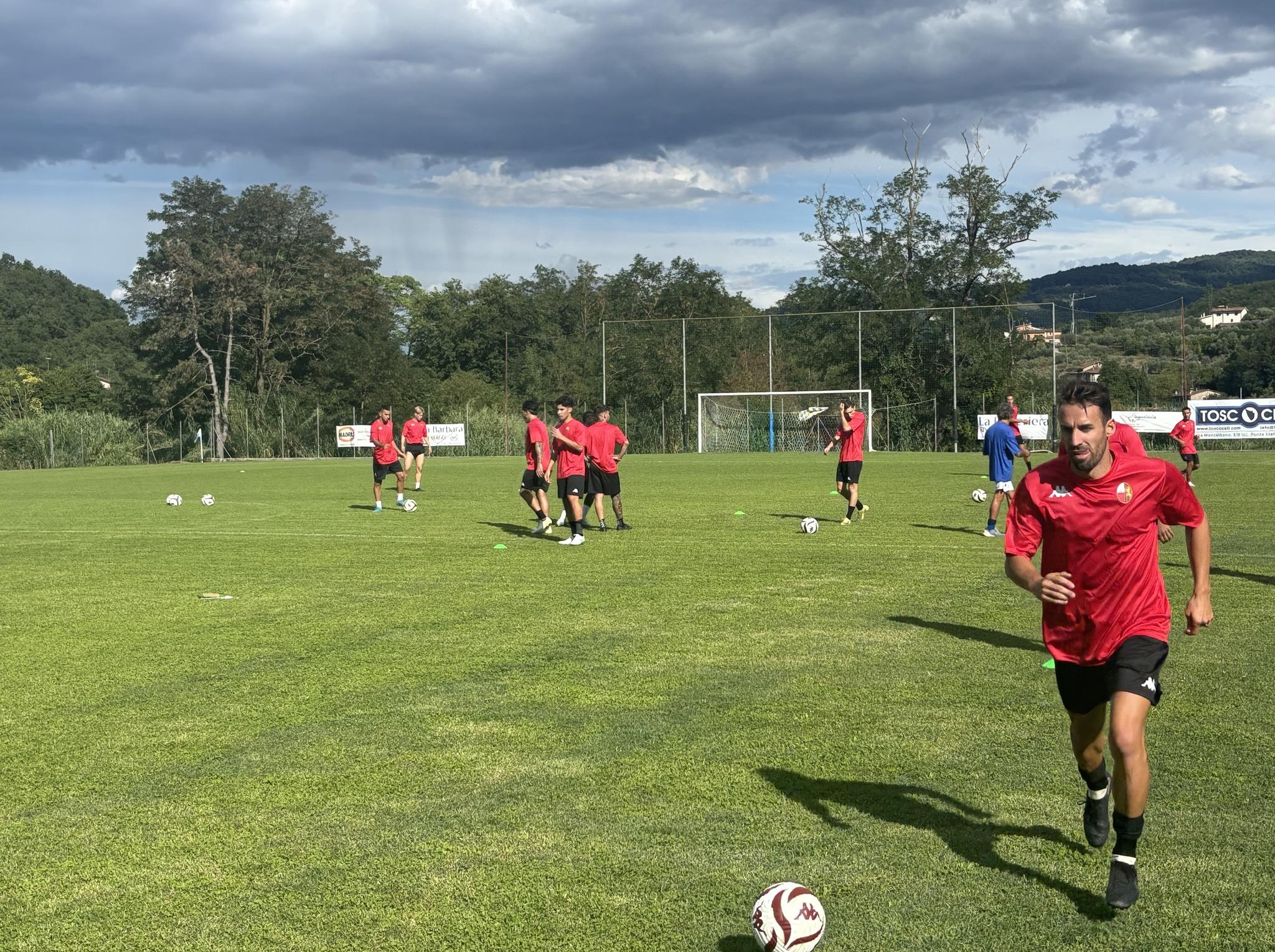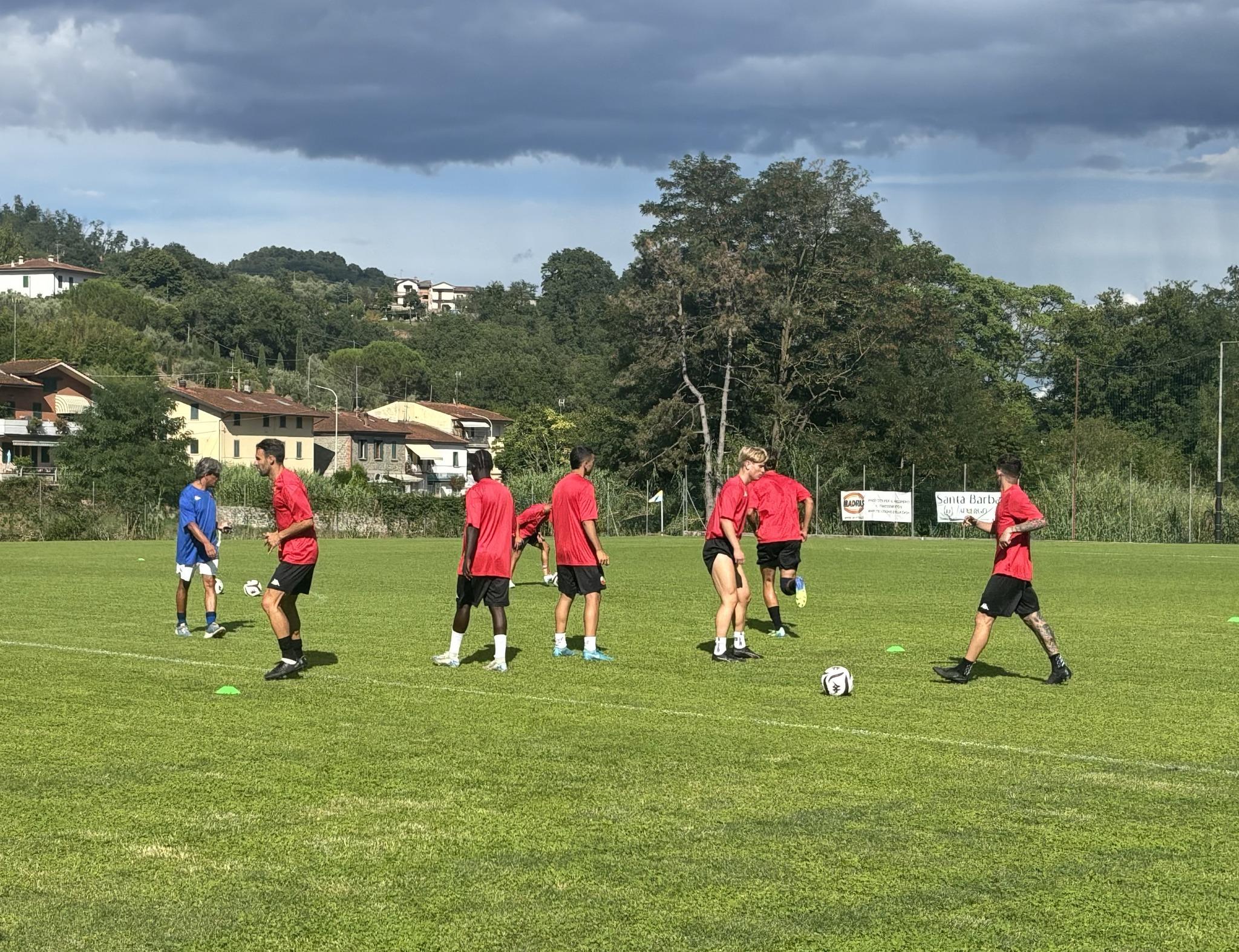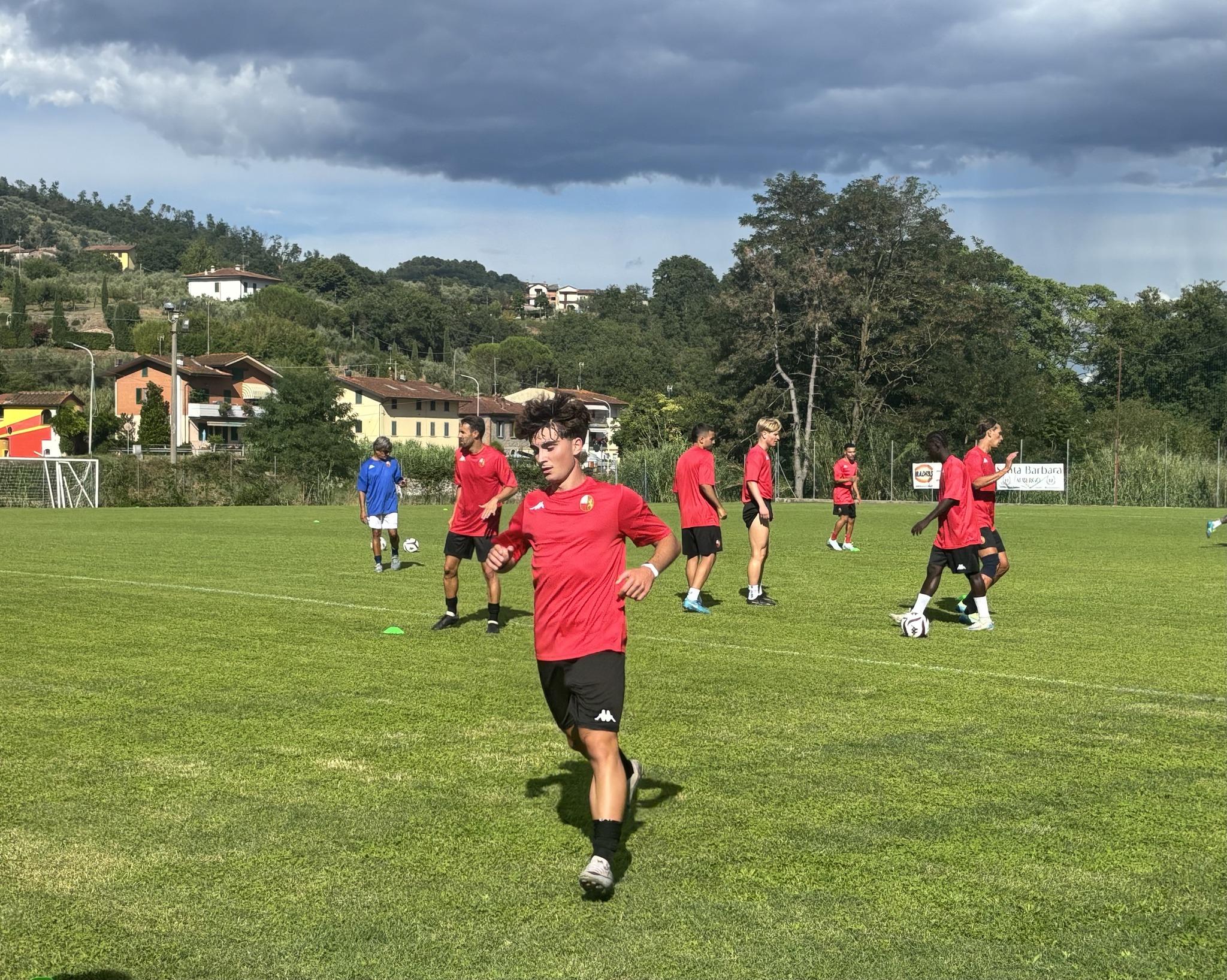 Nel primo giorno di lavoro, dopo una introduzione del tecnico Pirozzi è proseguita con una serie di test atletici sul campo anche se il pallone ha fatto comunque capolino. Da domani si inizia il ciclo di allenamenti che si interromperà solo il 14 agosto quando in rossoneri avranno due giorni di riposo prima di tornare sino al 24 del mese nell'hotel di Montecatini Alto. Nel frattempo, già due le amichevoli fissate con il Legnano e con la Primavera della Carrarese il 9 e 13 agosto. Da segnalare la conferma dello sponsor tecnico: sarà il prestigioso marchio Kappa anche nel prossimo campionato. Le divise da allenamento sono in rosso con pantaloncini neri, mentre per lo staff, completo blu.