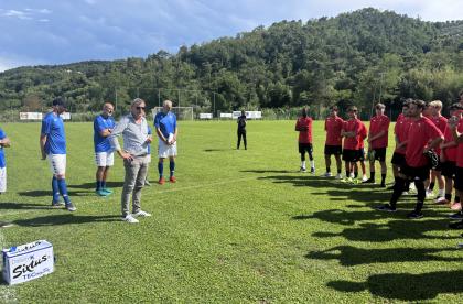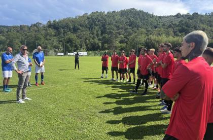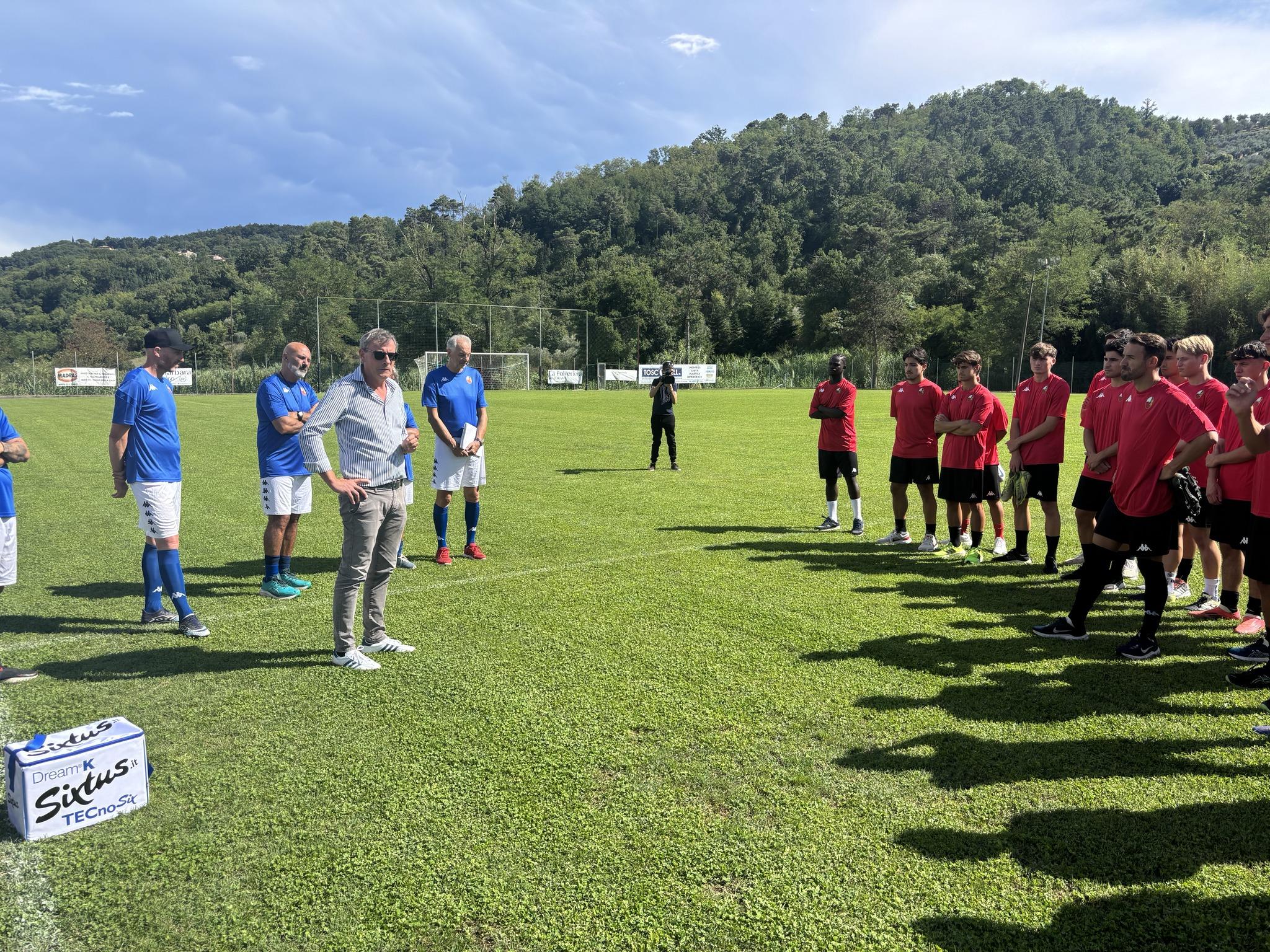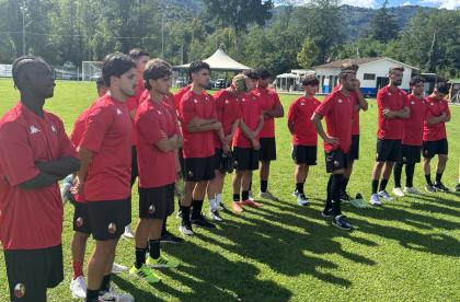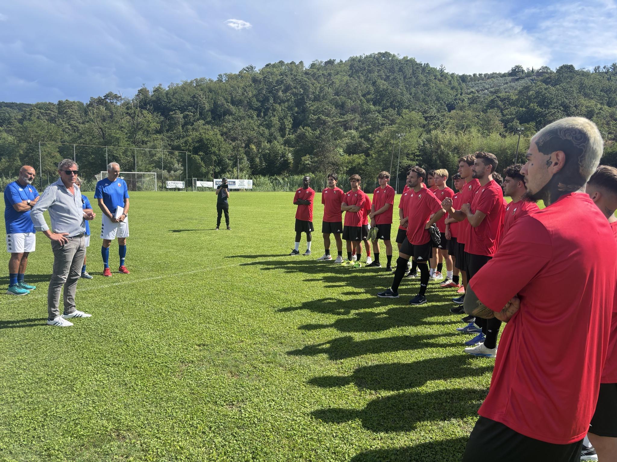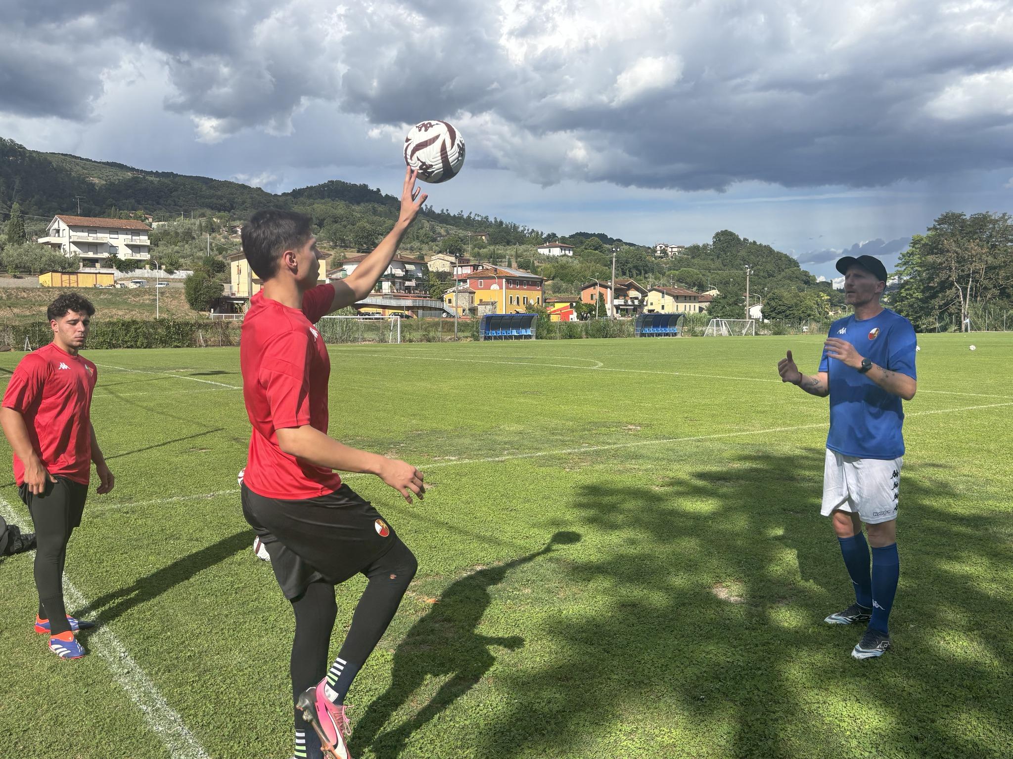 Nel primo giorno di lavoro, dopo una introduzione del tecnico Pirozzi è proseguita con una serie di test atletici sul campo anche se il pallone ha fatto comunque capolino. Da domani si inizia il ciclo di allenamenti che si interromperà solo il 14 agosto quando in rossoneri avranno due giorni di riposo prima di tornare sino al 24 del mese nell'hotel di Montecatini Alto. Nel frattempo, già due le amichevoli fissate con il Legnano e con la Primavera della Carrarese il 9 e 13 agosto. Da segnalare la conferma dello sponsor tecnico: sarà il prestigioso marchio Kappa anche nel prossimo campionato. Le divise da allenamento sono in rosso con pantaloncini neri, mentre per lo staff, completo blu.