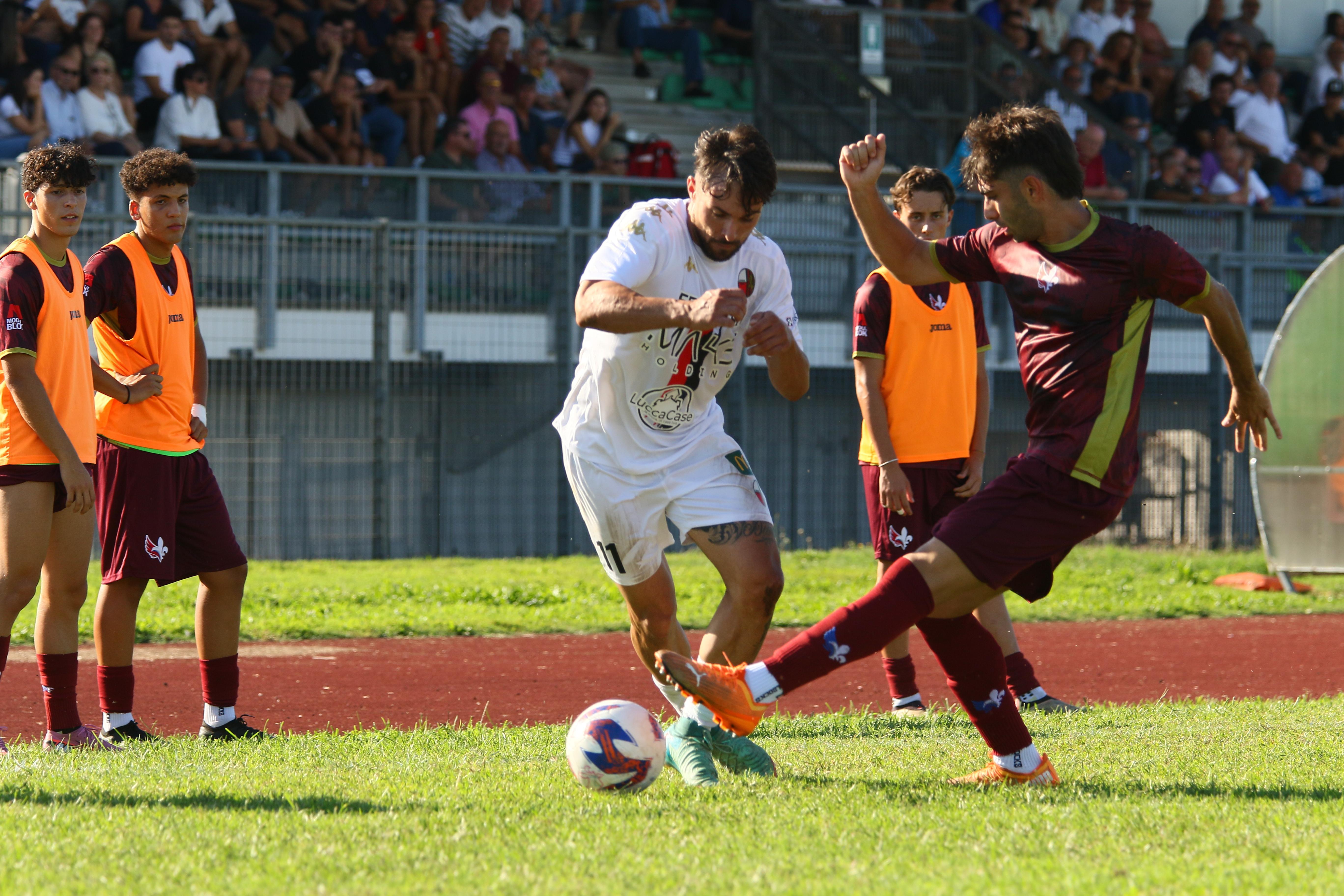 Rossoneri impegnati in Garfagnana e alla caccia di punti per conservare il primato in classifica: occasione per Nardi in avvio, poi Riad conclude fuori. Nella ripresa occasioni per Riad e Zenuni. Poi eurogol di Riad. Traversa di Bartolomei