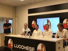 SI presenta il nuovo patron rossonero che conferma di aver già chiuso l'accordo per lo storico marchio con Lucca United: "Abbiamo respirato che c'è tanta voglia e sappiamo da dove si riparte. Veniamo qui con un progetto che vuole essere serio, concreto, sostenibile e ambizioso. L'amministrazione ci ha da subito supportato e la ringraziamo"