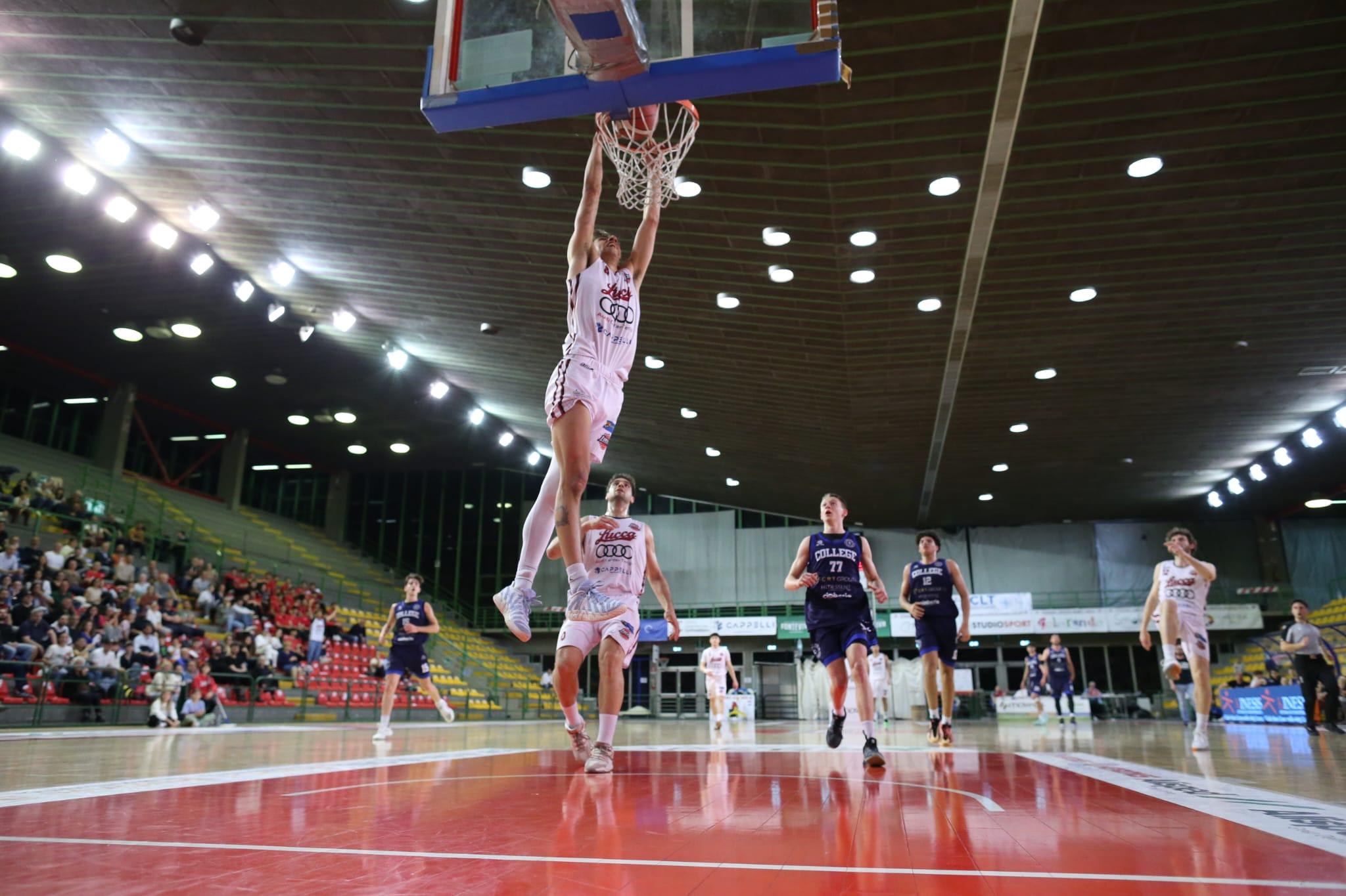 Un match che con il passare dei minuti inizia ad essere spigoloso con le due squadre che si fronteggiano in continui ribaltamenti e un College sempre più aggressivo, senza però riuscire ad accorciare più di tanto, 88/78 e tre minuti e trenta secondi con il College che letteralmente ha consumato il parquet della lunetta con 44 viaggi che gli valgono il meno sei a poco più di due minuti dal termine. In un finale da thriller il BCL stringe le maglie della difesa per frenare l'irruenza degli ospiti, sfruttando con Dubois il bonus avversario per un due su due dalla lunetta con 90/82 e 40 secondi sul tabellone. Minuti che consentono a Del Debbio e Drocker di realizzare altri quattro punti e chiudere sul 94/85 mettendo il 16° sigillo consecutivo. Da segnalare la presenza dei giocatori della Lucchese sulle tribune a cui è stato reso omaggio dalla società biancorossa e dal pubblico per la recente promozione durante l'intervallo.