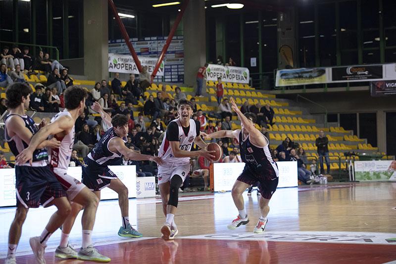 I biancorossi, pur largamente rimaneggiati, riescono a vincere in casa della Virtus Siena per 88 a 84 e mantengono il primato al termine della stagione regolare: ora, da primi della classe, dovranno affrontare i play off per giocarsi la promozione